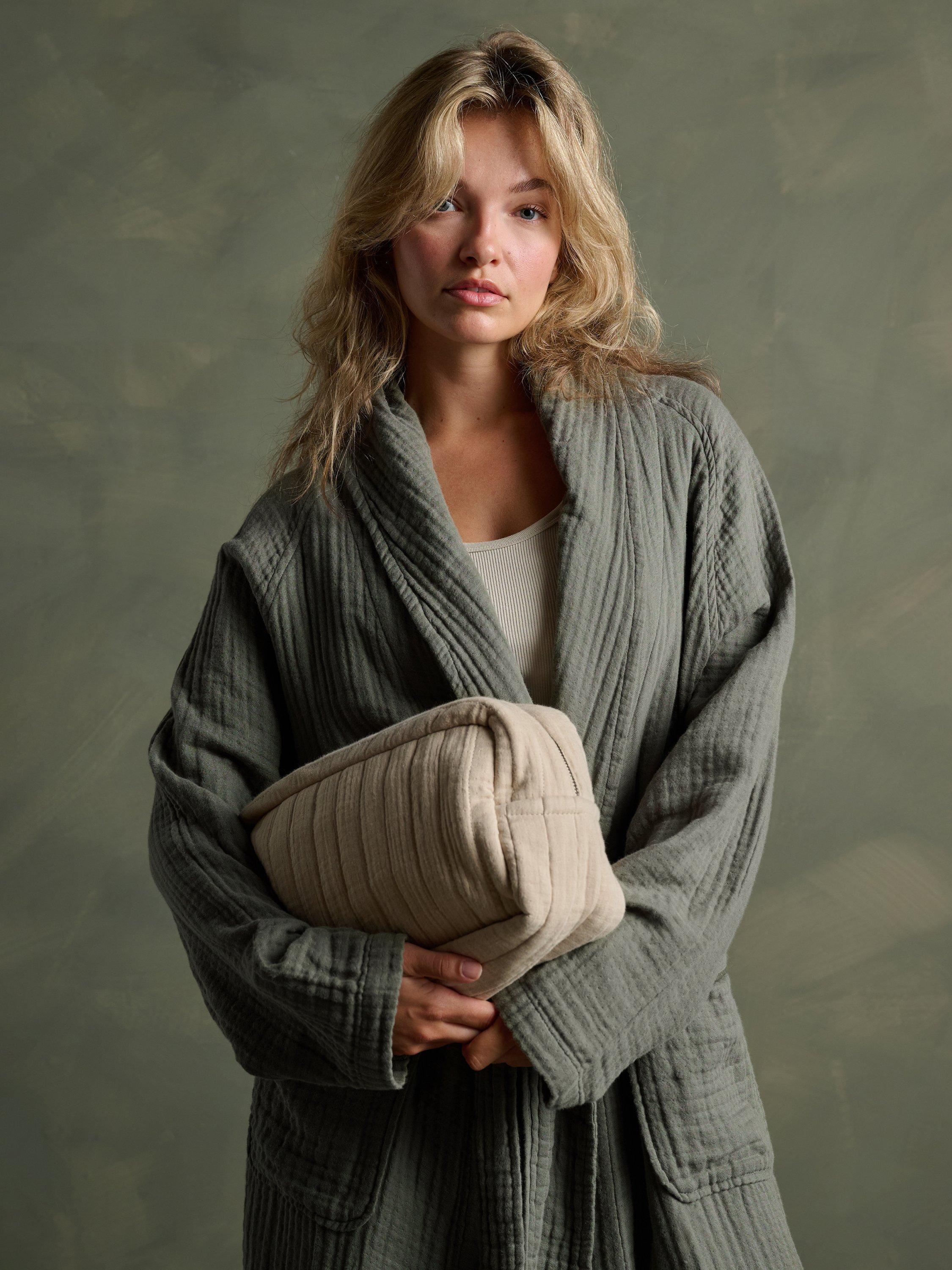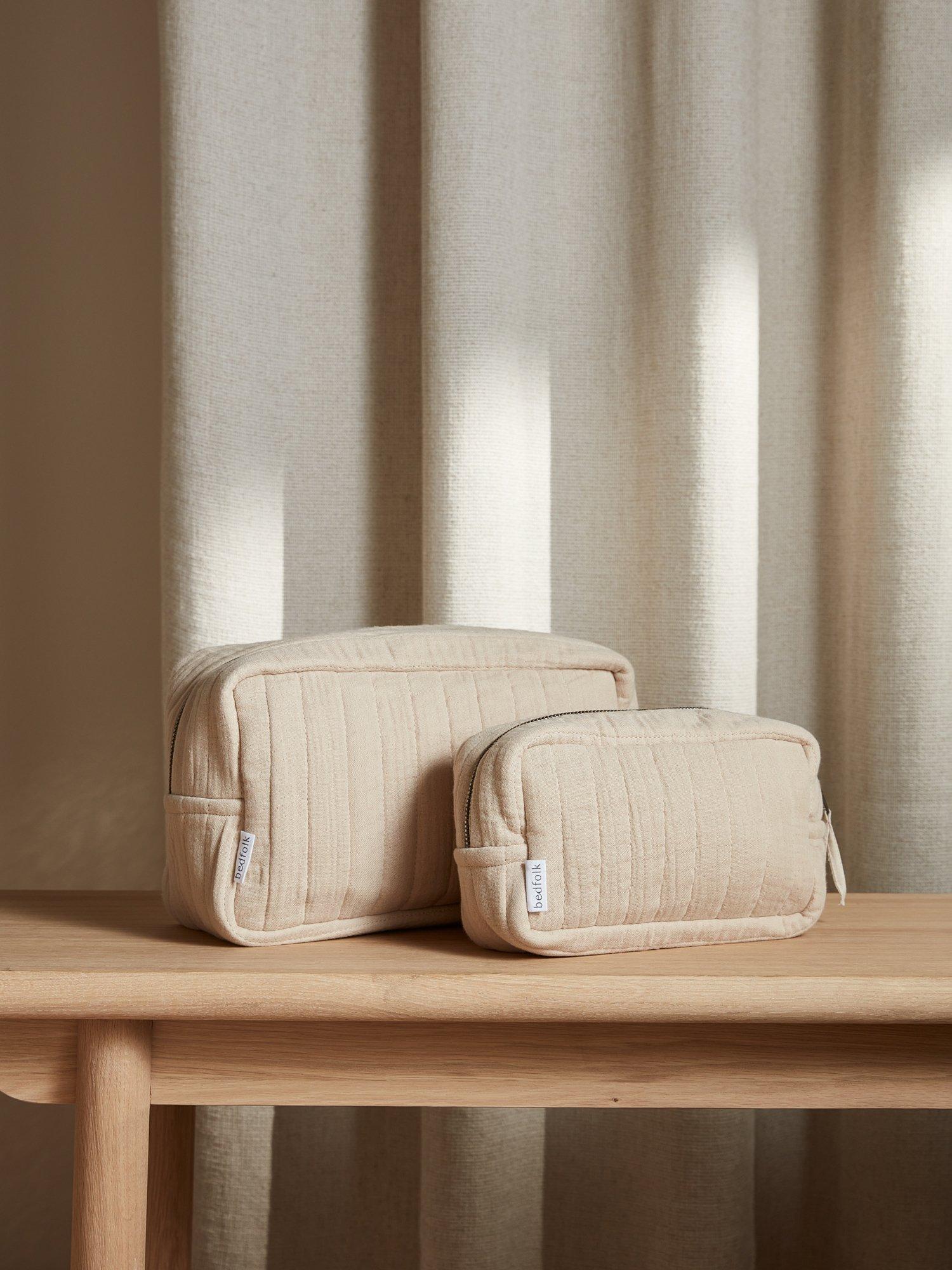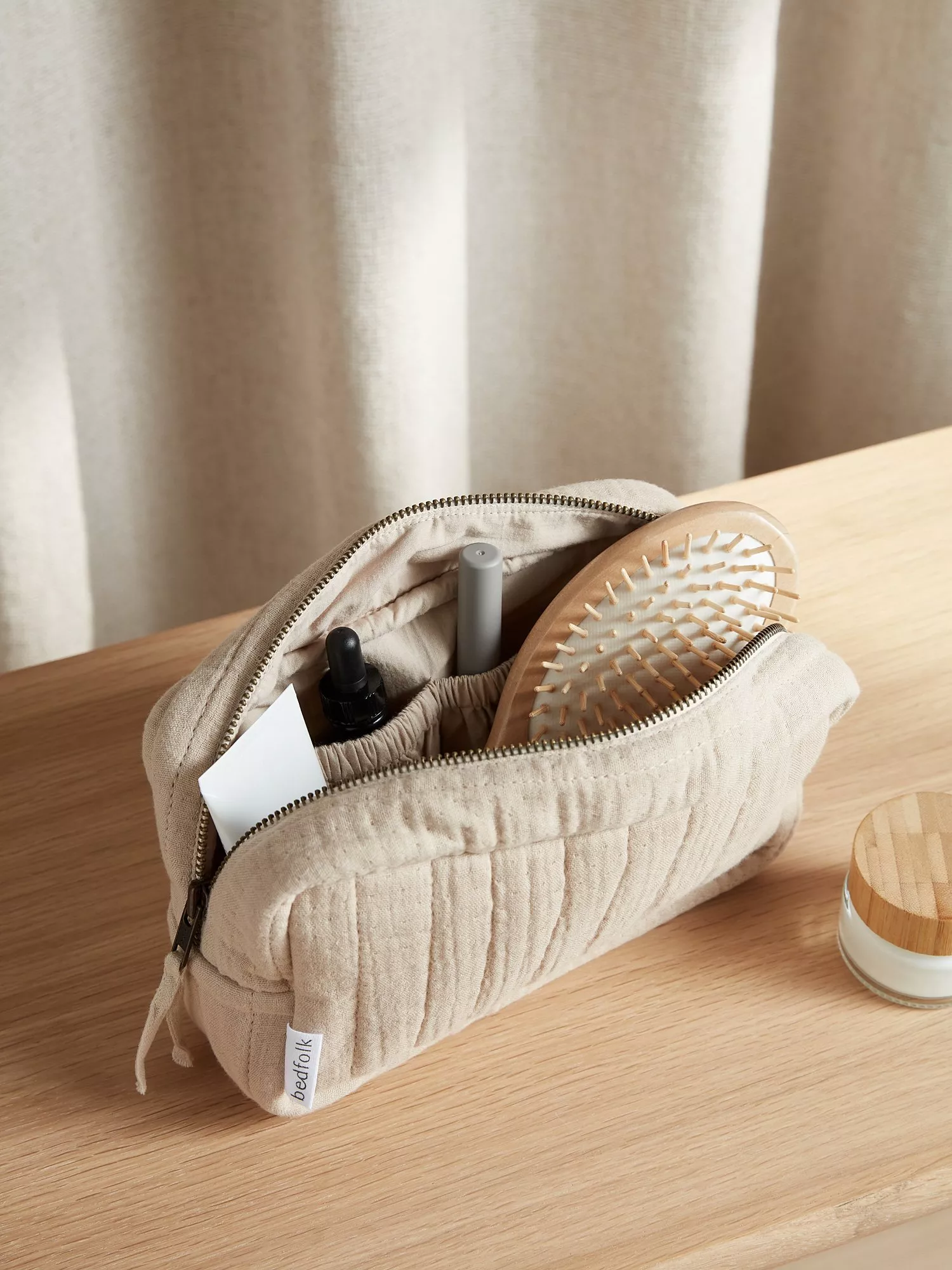 A must-have for travelling, The Dream cotton Make-Up Bag is softly quilted and fully lined, with useful interior pockets on both sides. It's the perfect size for keeping your make-up organised whilst on the go, whilst also offering a stylish way to store products on your bathroom shelf.