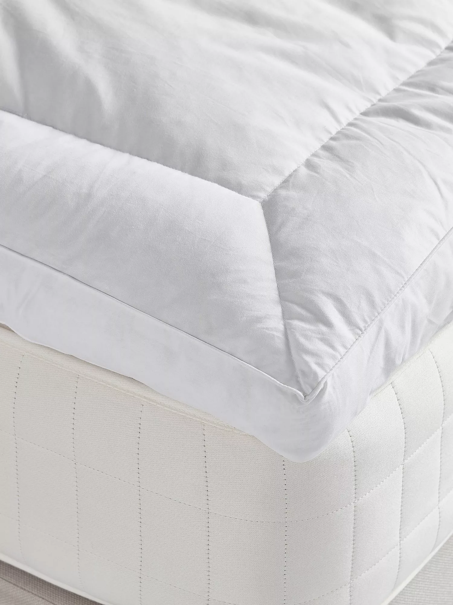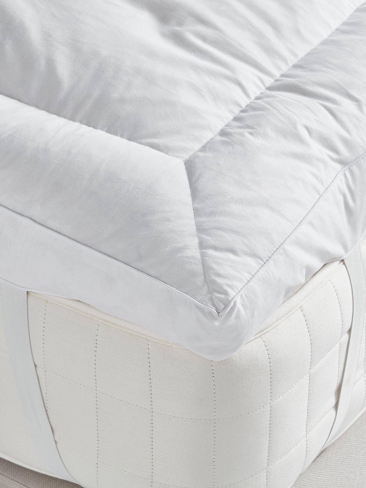 An indulgent mattress topper, for ultimate comfort. If you want to experience sleeping on a cloud, this premium, UK made topper is the one for you. Filled with European white duck feather and down, it tops your mattress with a layer of extreme comfort, giving your bed that sinking-into-a-cloud feel. On arrival, it's recommended to allow your mattress topper to air/rest for 24-48 hours. This will allow the filling to re-loft and return to its soft and fluffy best before use.