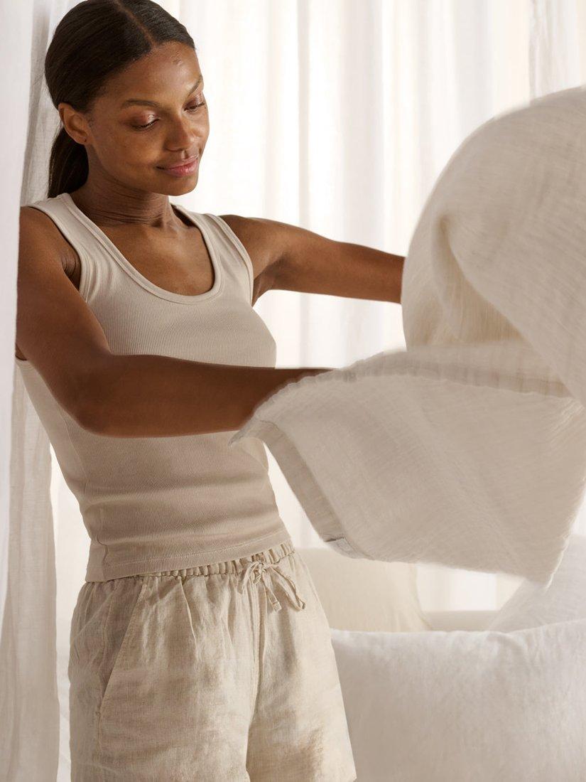 Meet The Linen & Cotton Throw. Generously sized for maximum comfort, it's crinkle-textured and mellow - both in colour and nature. Drape it over your bed, bundle it on the sofa and still have room for a partner - or simply hide underneath it if you fancy a nap without being bothered.