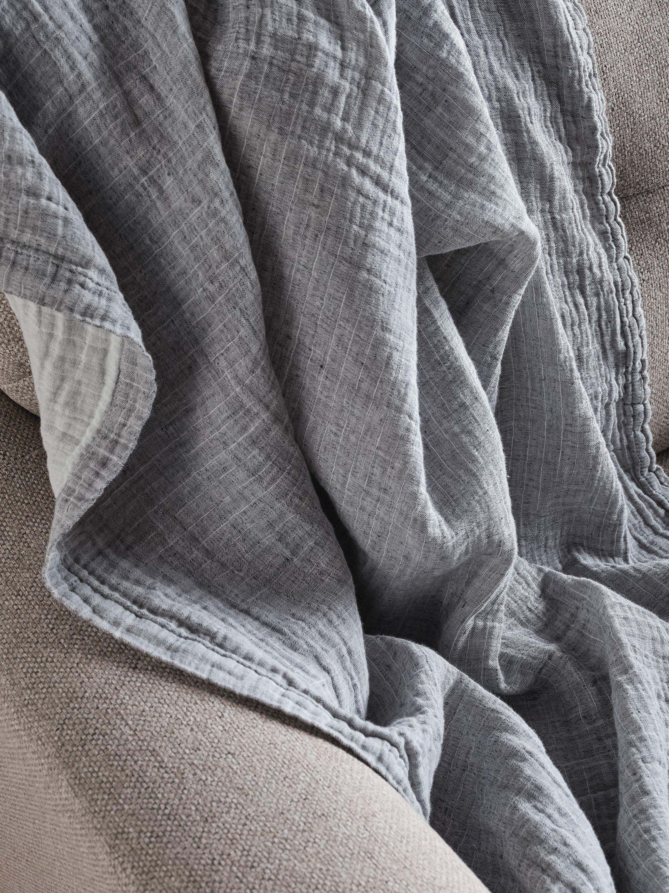 Meet The Linen & Cotton Throw. Generously sized for maximum comfort, it's crinkle-textured and mellow - both in colour and nature. Drape it over your bed, bundle it on the sofa and still have room for a partner - or simply hide underneath it if you fancy a nap without being bothered.