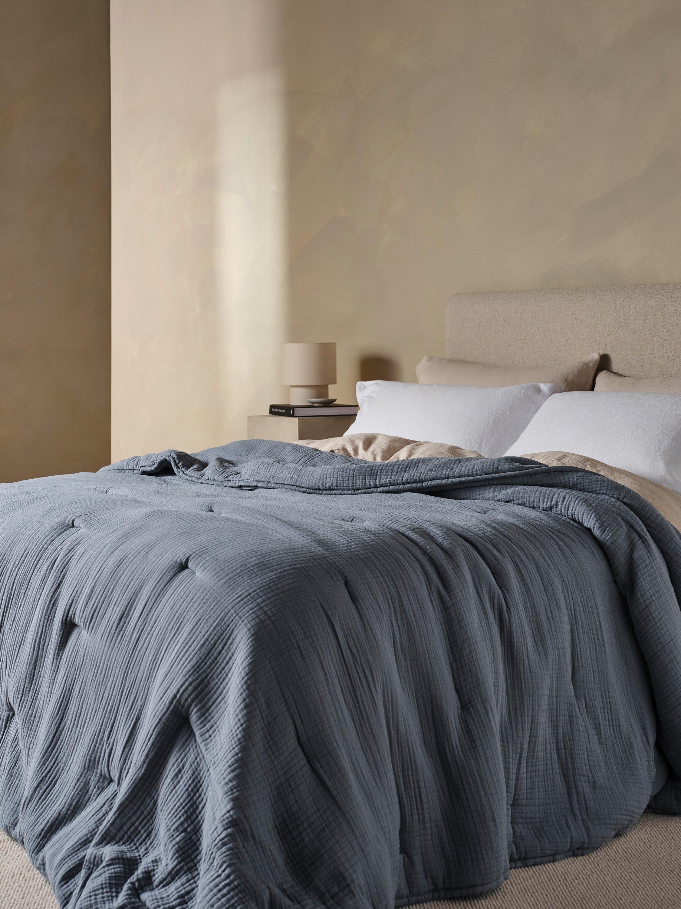 Made from the softest Dream Cotton, with luxurious organic cotton gauze, this quilt is the ultimate cosy layer for your bed and features a modern scattered stitch, and plush, pillow-like wadding inside to keep you warm on cold winter nights.