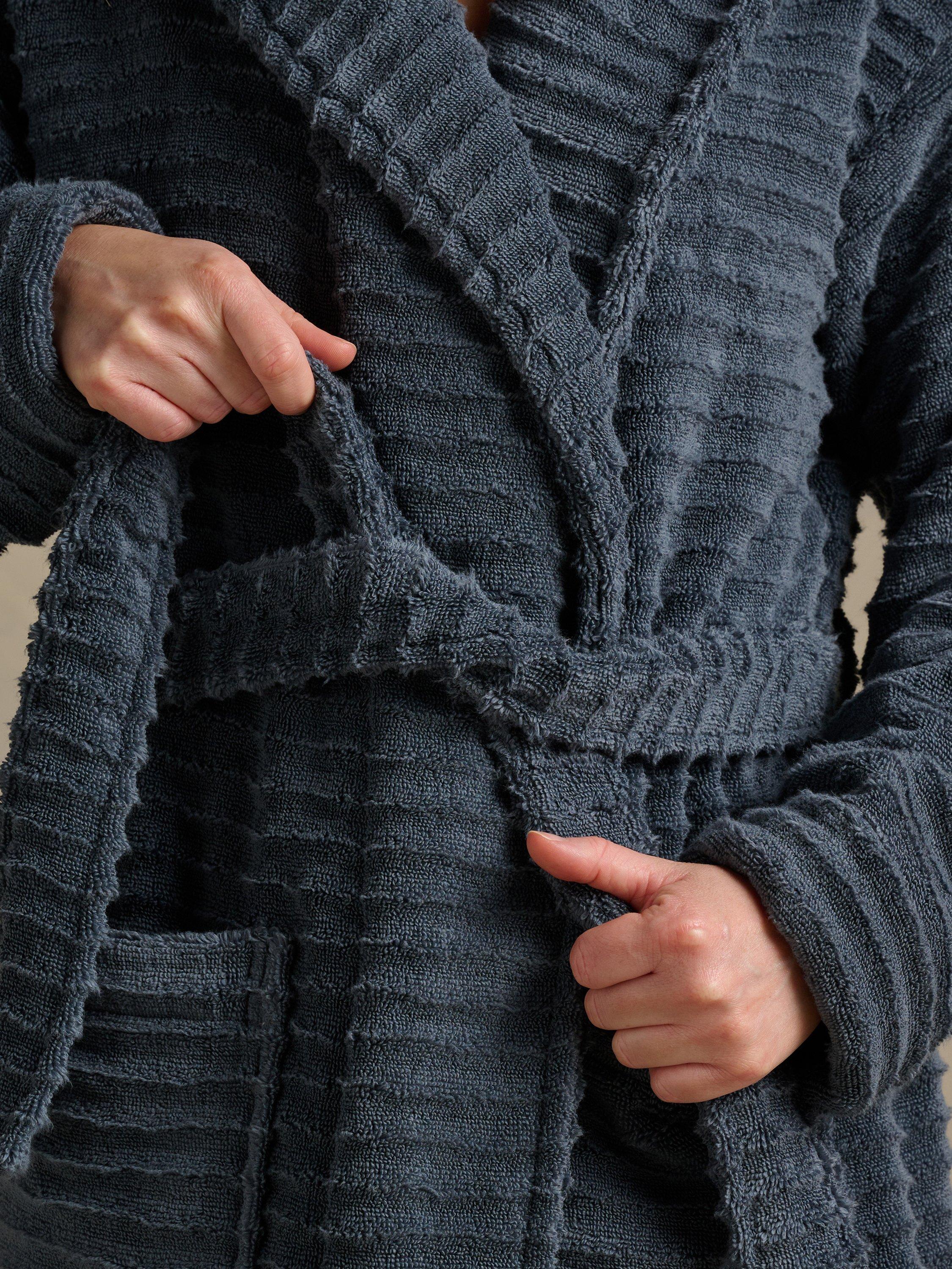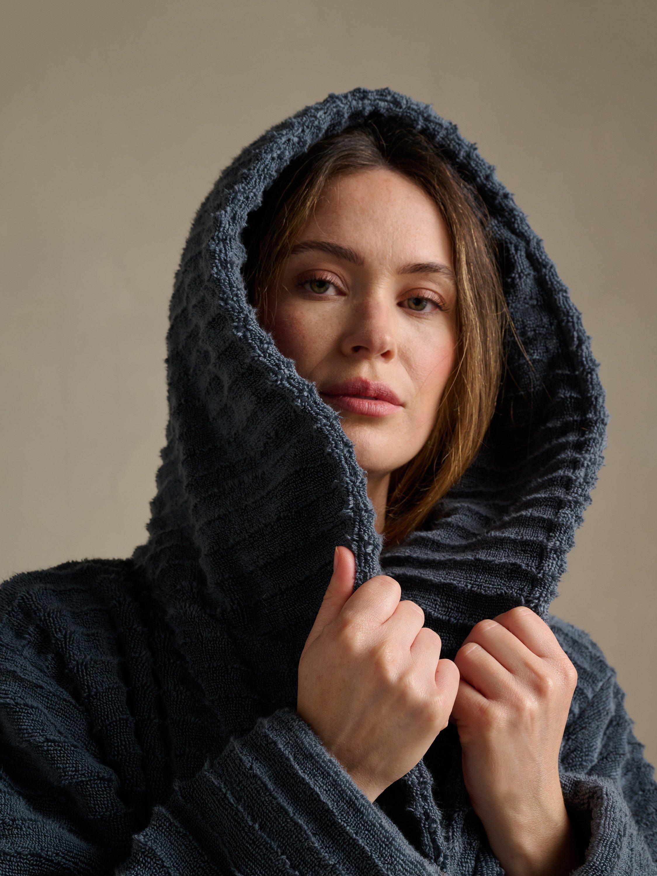 Made from ultra-soft 100% long-staple Turkish cotton with a soft and calming ripple design, inspired by the flow of water. This robe is crafted with an extra luxurious weight for pure indulgence and made with the same ultra-soft yarns as the Bedfolk Baby range (so we are talking serious levels of softness). Designed to elevate your bath-to-bed moments and make your home feel like a spa. Featuring deep pockets and a generous hood, simply light a candle, draw a hot bath and feel the stress leave your body.