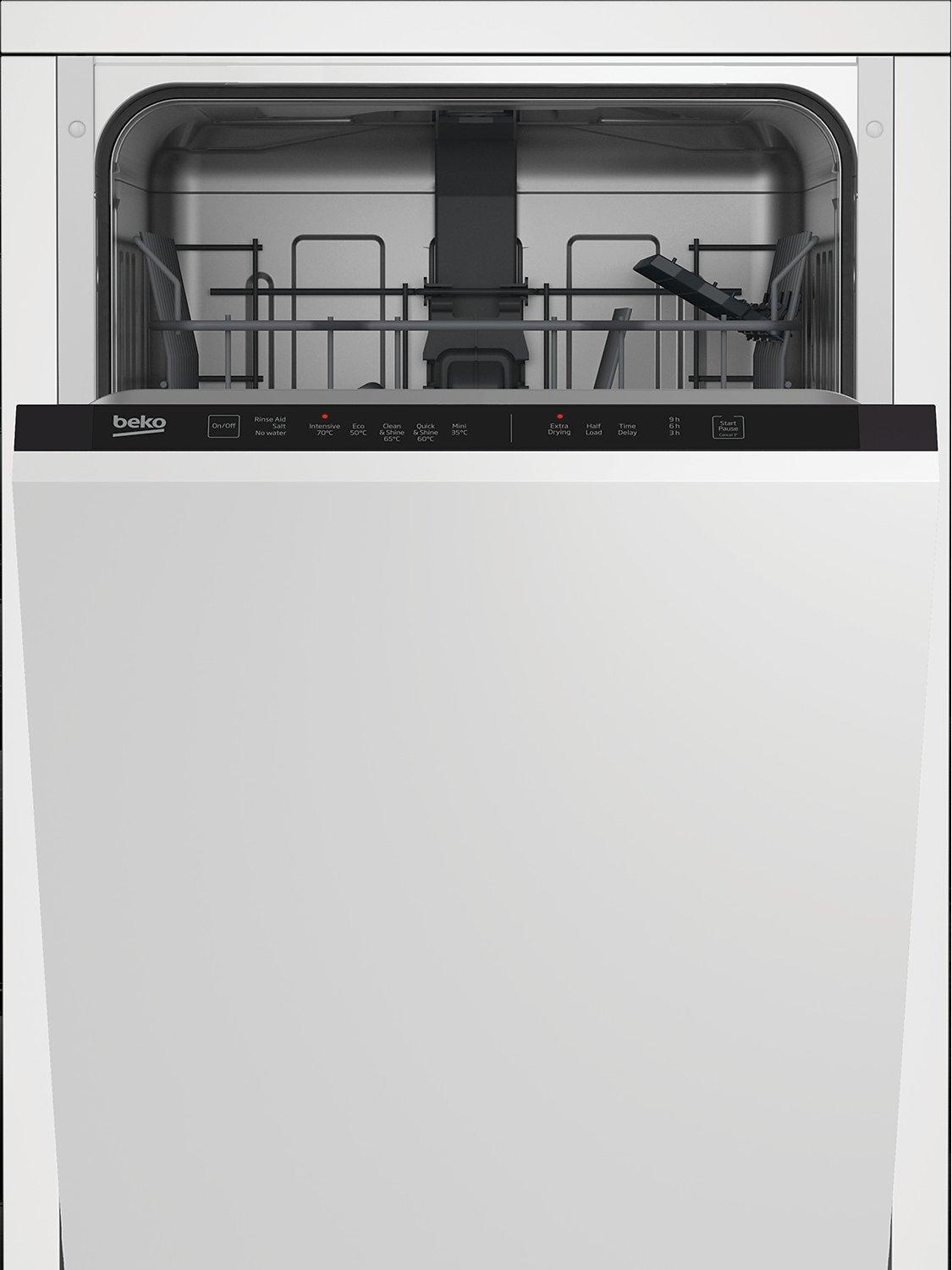 Great for when space is at a premium, this integrated slimline dishwasher features Beko's quick Mini programme which washes a full load in just 30 minutes. Choose from 5 programmes, including the Quick & Shine feature which only takes 58 minutes to wash a full load. For flexible loading, this model features folding plate supports in the bottom basket, leaving you with extra room for larger dishes.