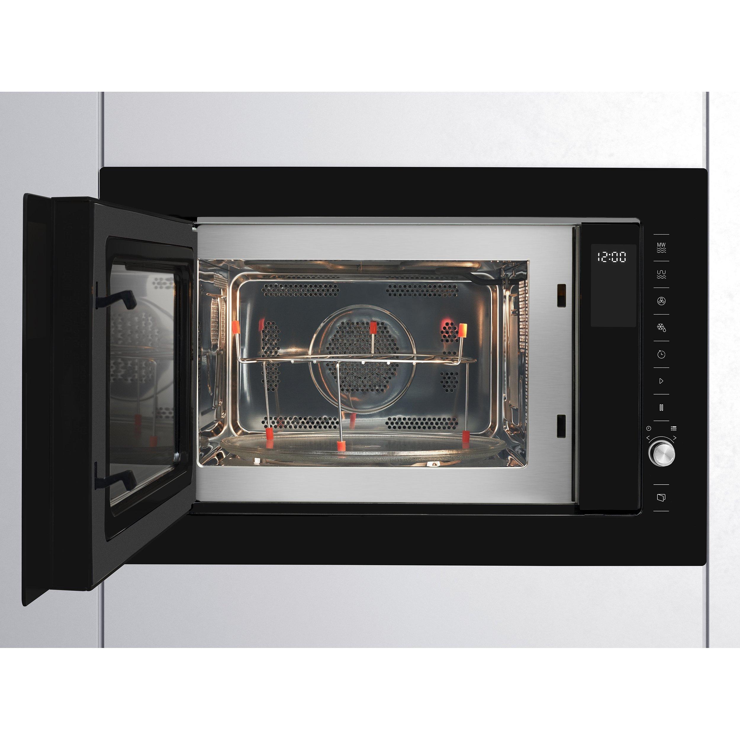 The oven has five microwave power levels and its 1000W grill means you can brown and finish dishes with ease. A stainless steel cavity means easy cleaning and an electronic child lock will give peace of mind in family homes.
