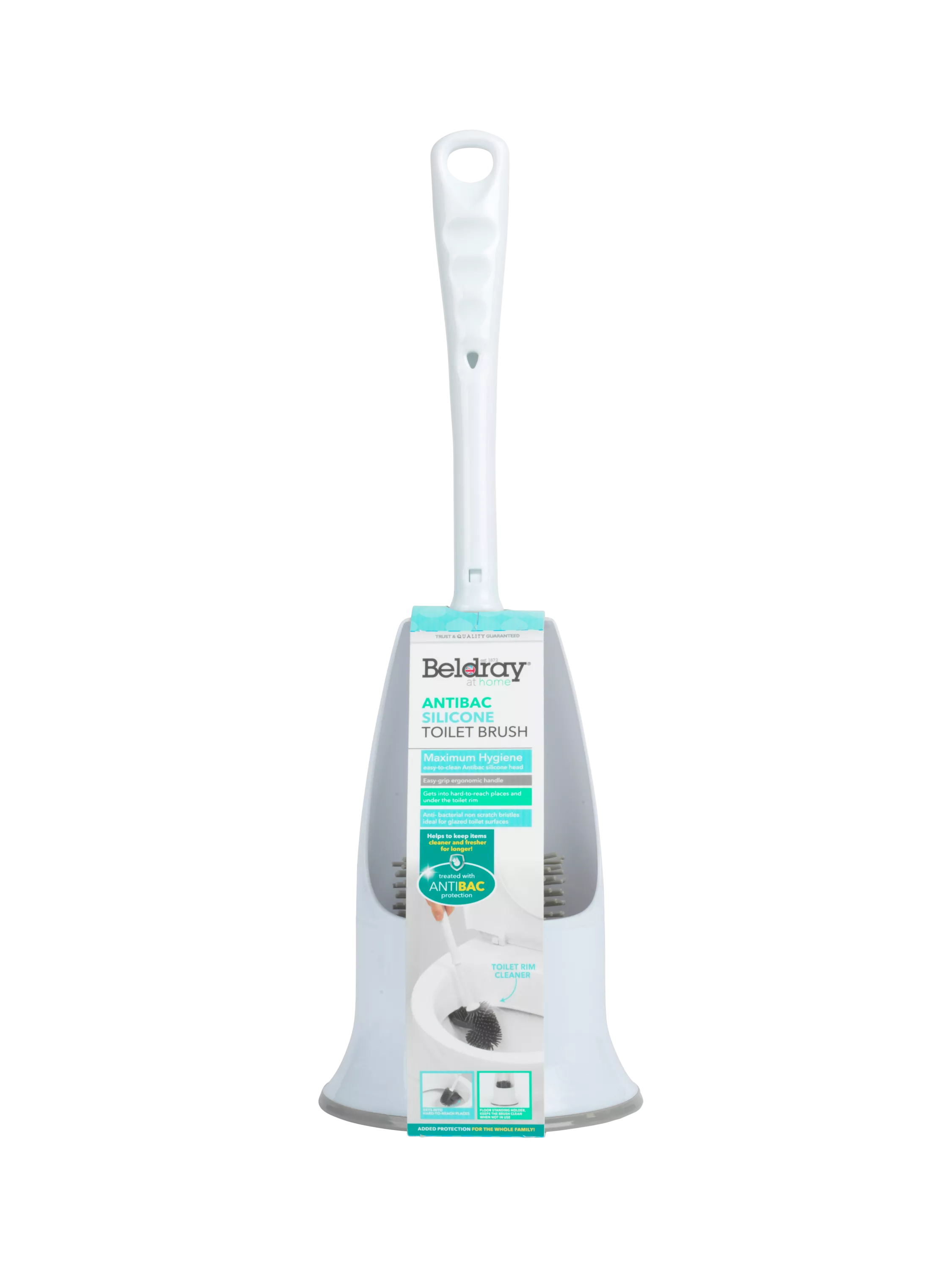 Perfect for reaching those hard-to-clean areas, the brush head boasts a convenient toilet rim cleaner to uphold maximum hygiene. Designed with the user in mind, the antibac bristles featured on the brush are wonderfully non-scratch to prevent damage to your toilet and the easy-grip ergonomic handle allows you to clean in comfort and at ease.
