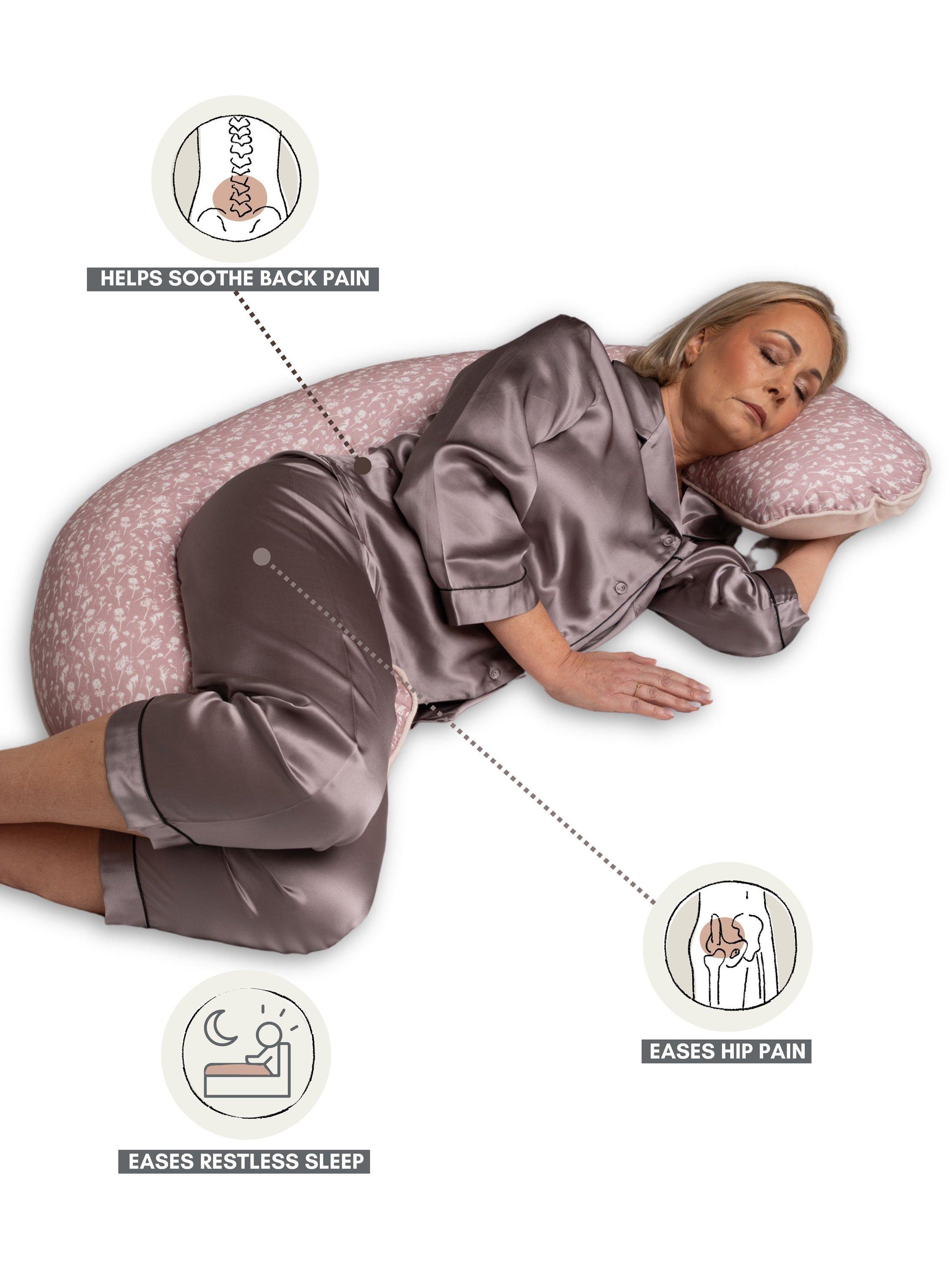 The BellaMoon™ Body Pillow is designed to provide full-body support for all adults, whether you are struggling with sleep, seeking greater comfort, experiencing hot flushes, recovering from an injury, expecting a baby or simply seeking a more restful sleep. This award-winning C-shaped pillow helps align your spine, relieve pressure on your hips and back, and promote side-sleeping, making it the perfect solution for anyone in need of enhanced comfort and relaxation.
