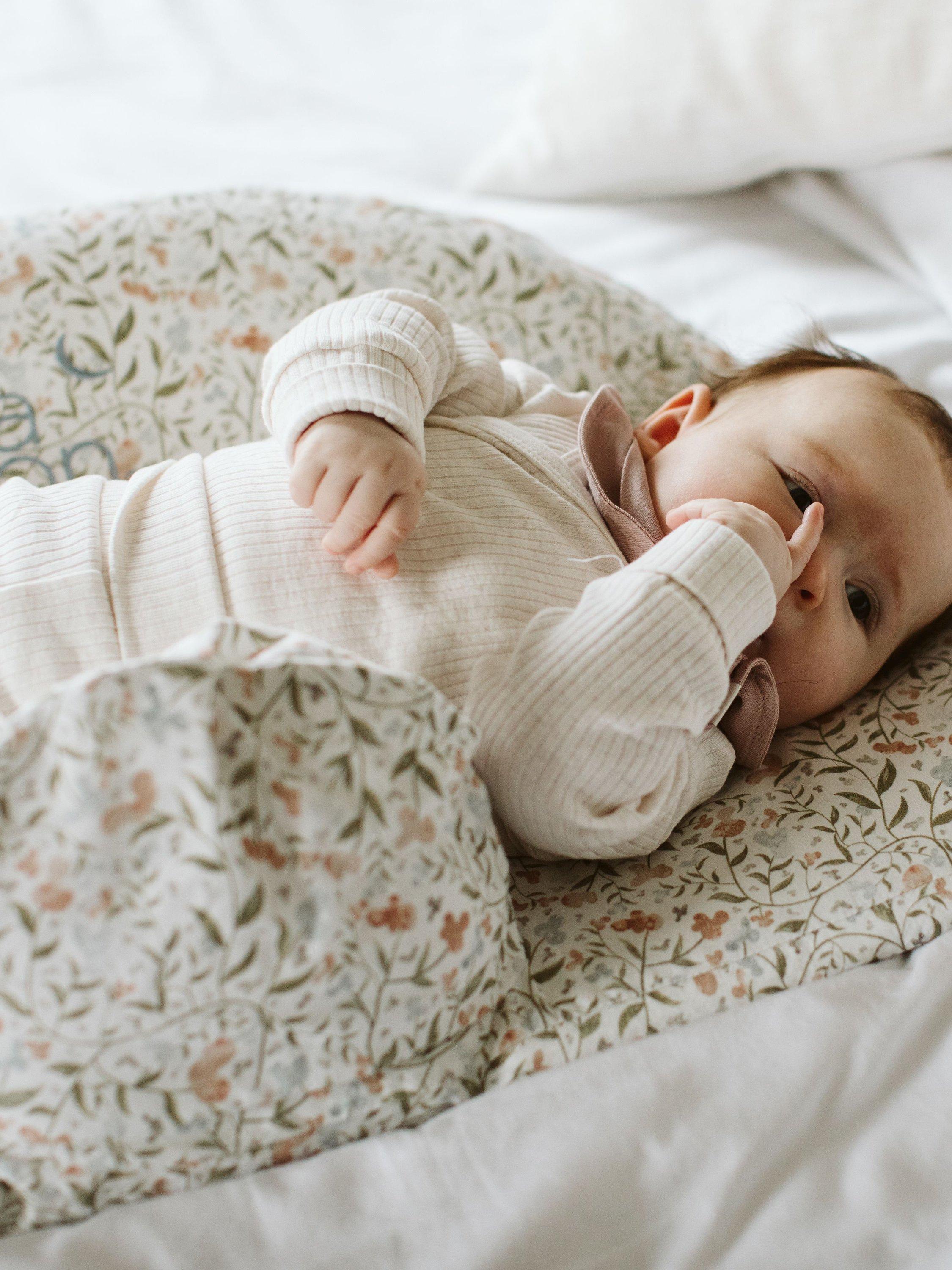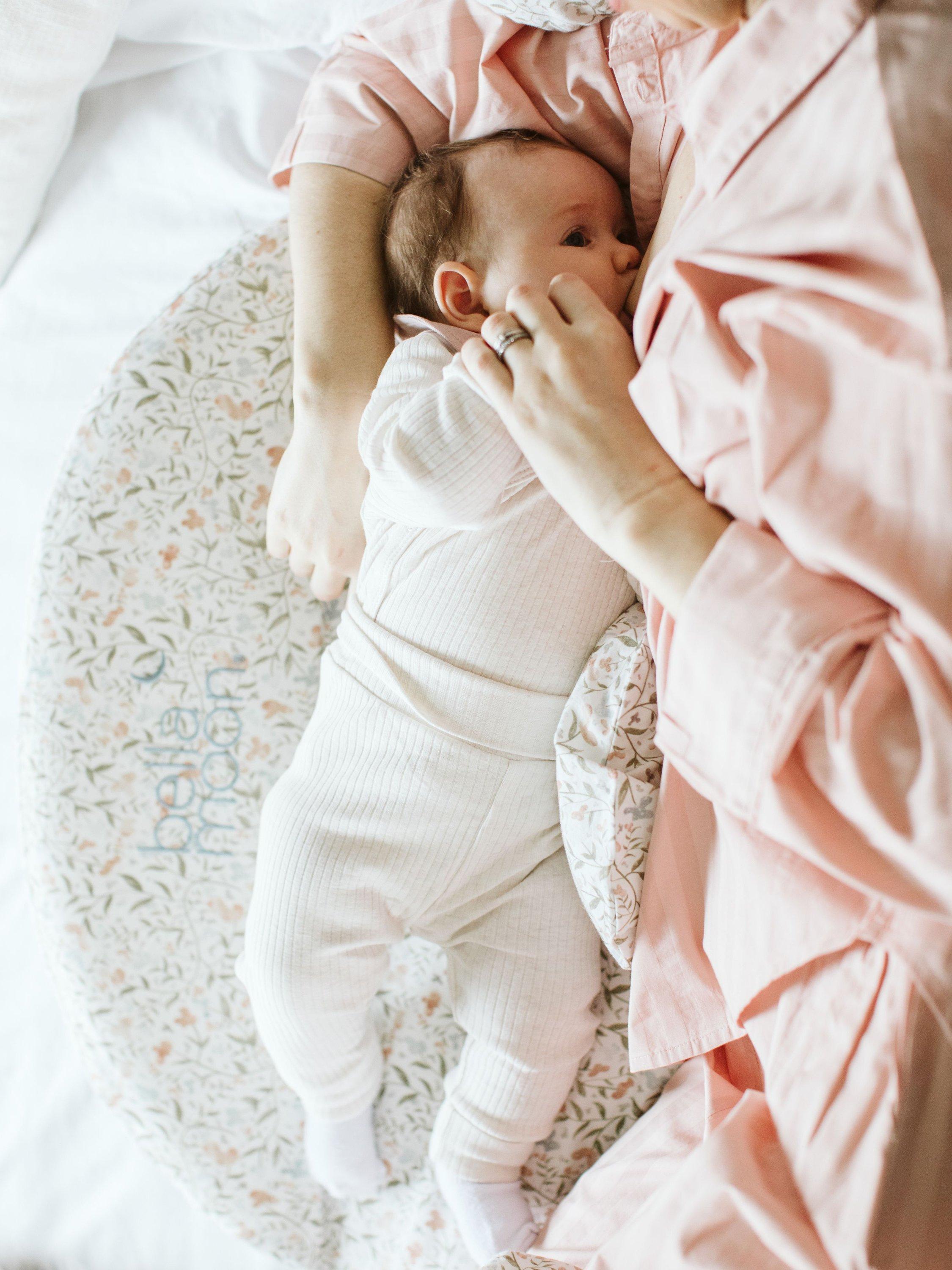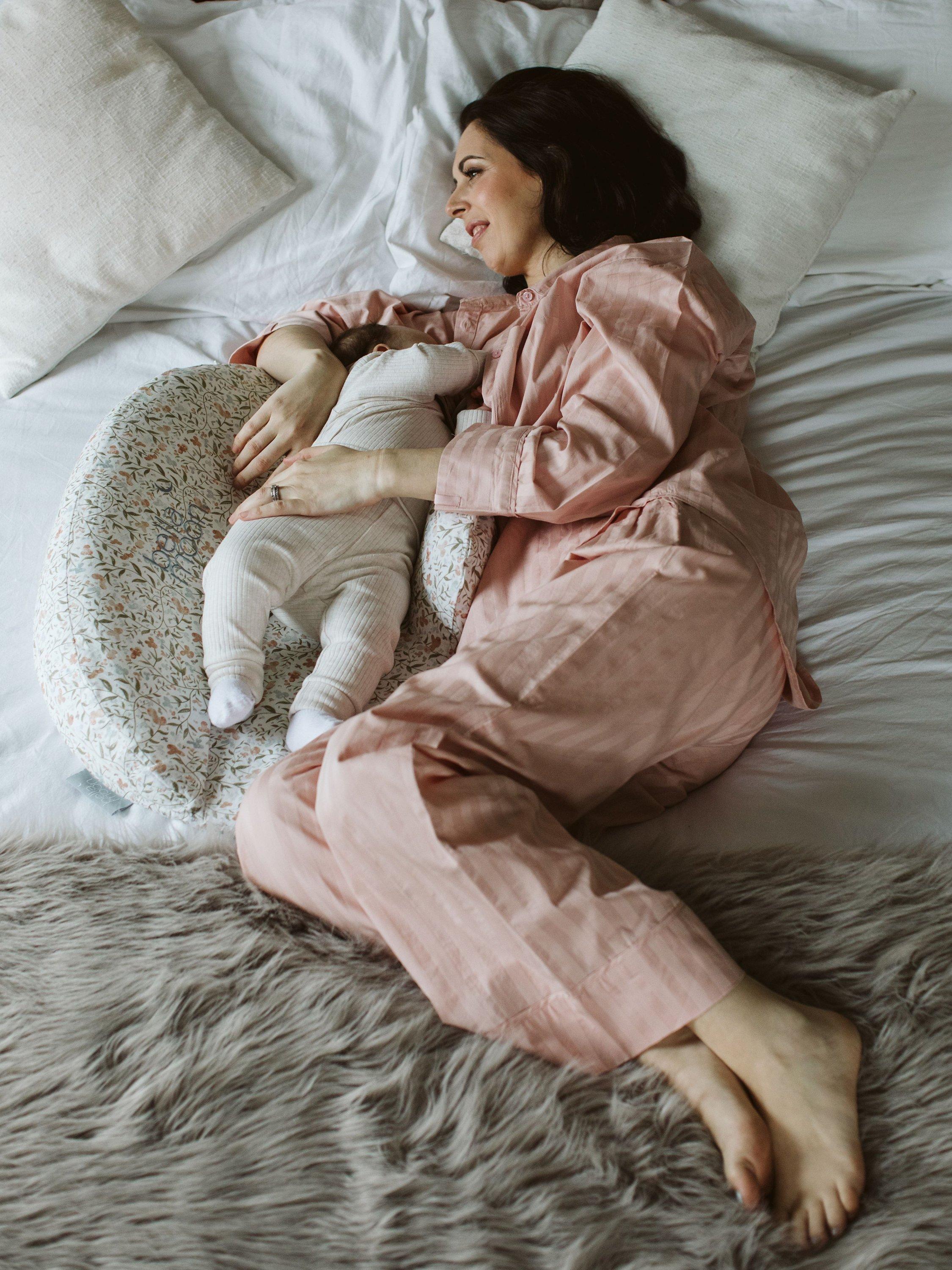 The award-winning BellaMoon® Lie-Down Nursing Nest has been designed to support you and baby as you breastfeed lying down. This world-exclusive lateral nursing support allows you to relax and feed with its unique patented Anti-Roll Fin and Barrier to guards baby's space, and a firm mattress to raise baby up to support a strong latch.