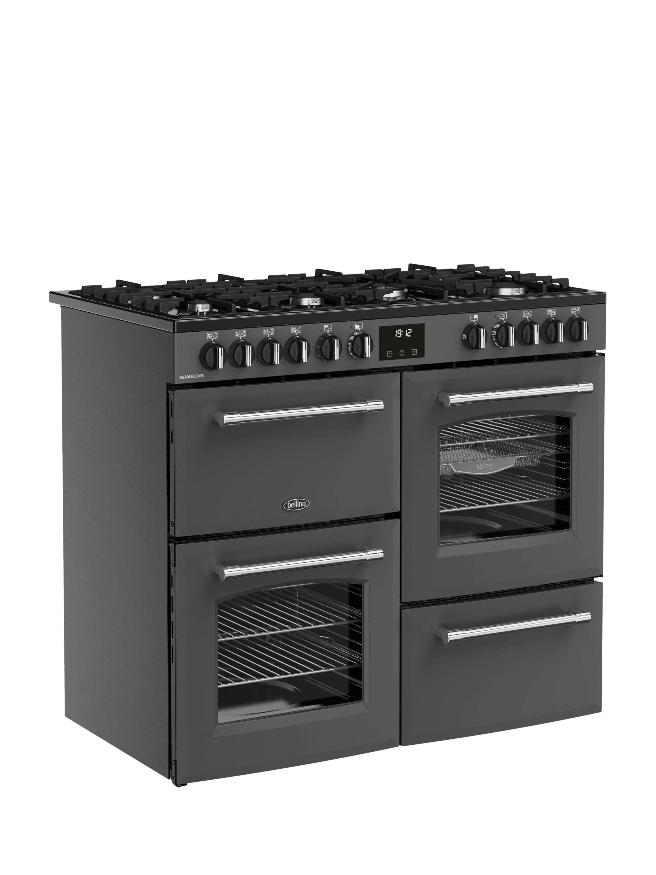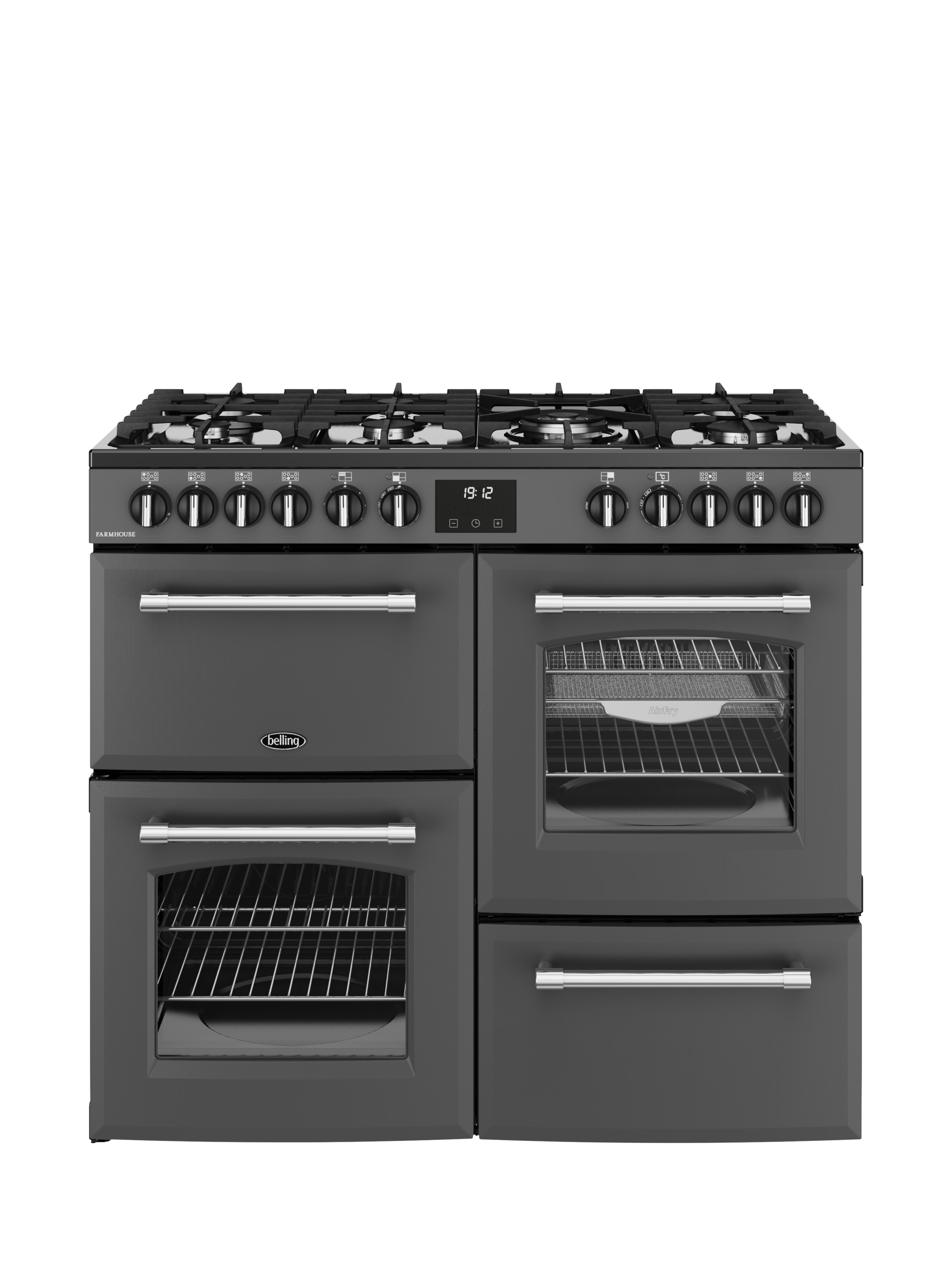 Belling range cookers have been at the heart of UK homes for more than a century, and they’ll be there for you for many years to come. At 100cm wide, this mid-size Farmhouse model will fit right into kitchens of all sizes. Underneath its traditional finish, there’s 157 litres of cooking capacity and a host of features designed to make cooking simple.