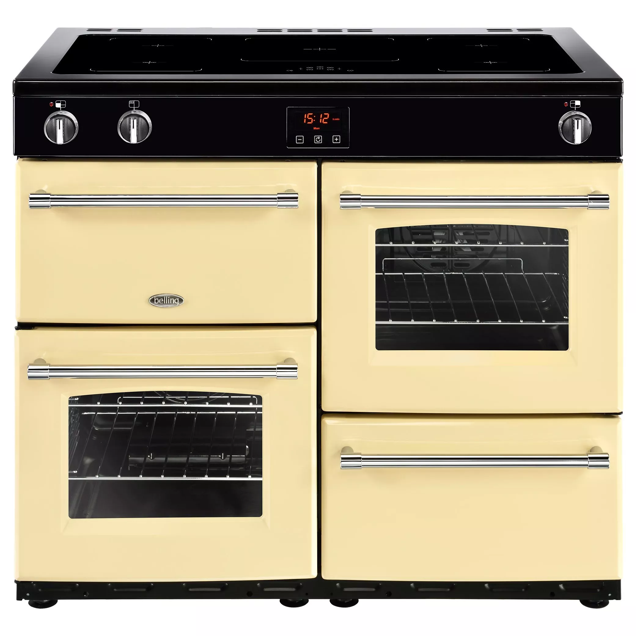 A beautifully classic design, the Farmhouse 100EI Electric Induction Range Cooker from Belling includes advanced technology to make light work of your cooking and produce delicious results. Boasting both brains and beauty, this range cooker is sure to become the cornerstone of any kitchen.