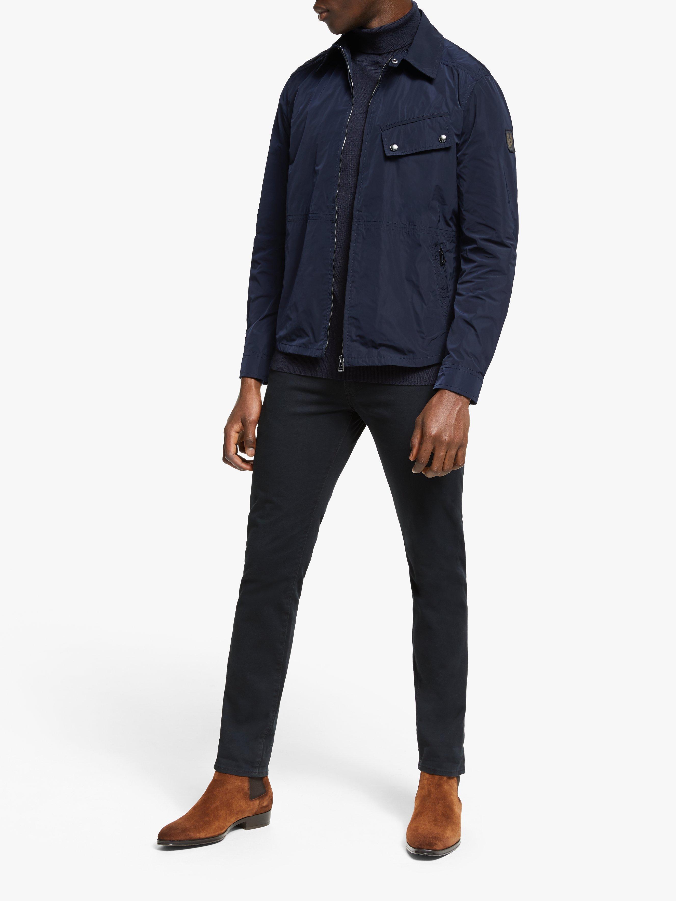Belstaff's Camber Jacket is water-repellent and made from a micro-poly fabric which offers a lightweight feel that is unlined and designed for ease of movement. Features include a slanted front flap pocket, two side pockets and snap-button cuffs.