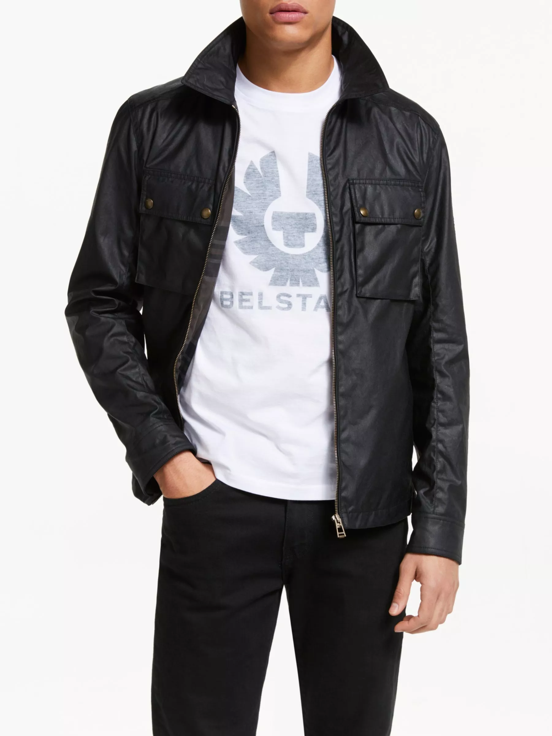 It takes the example of the clean lines of a shirt to offer a cotton twill check lining with brushed velvet linings on the collar, cuffs and hem, adding luxurious touches of comfort. Contemporary storm pockets with snap-button closures on the chest are complimented by two slip pockets below, while additional detailing includes a woven Belstaff patch on the left sleeve.