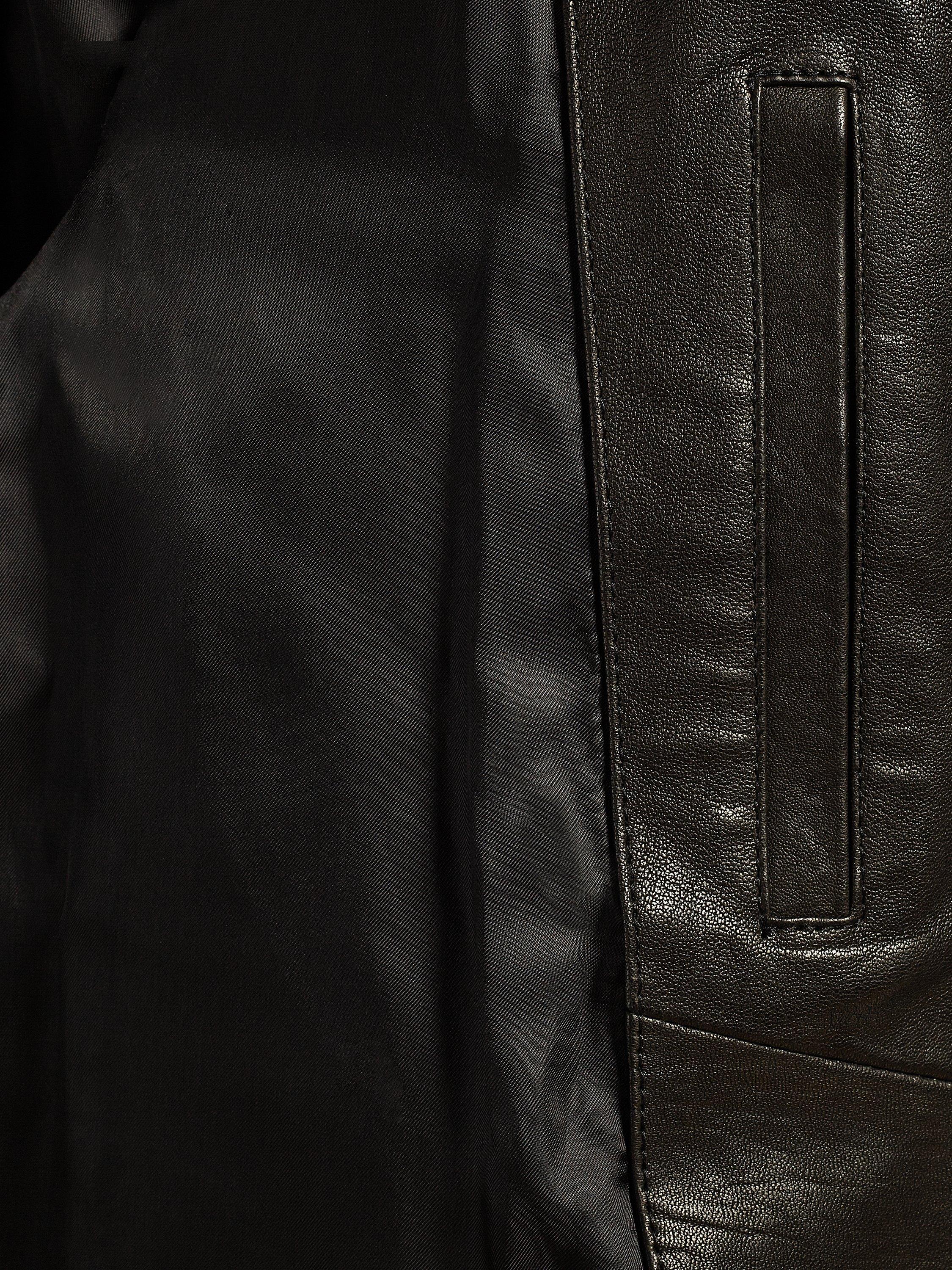 Crafted from a supple leather, this jacket offers a simplistic yet sleek design with a zip-through front, round neckline complete with press-stud fastening and two zipped side pockets. Finished with a branded embellishment on the sleeve to complete a stylish piece.