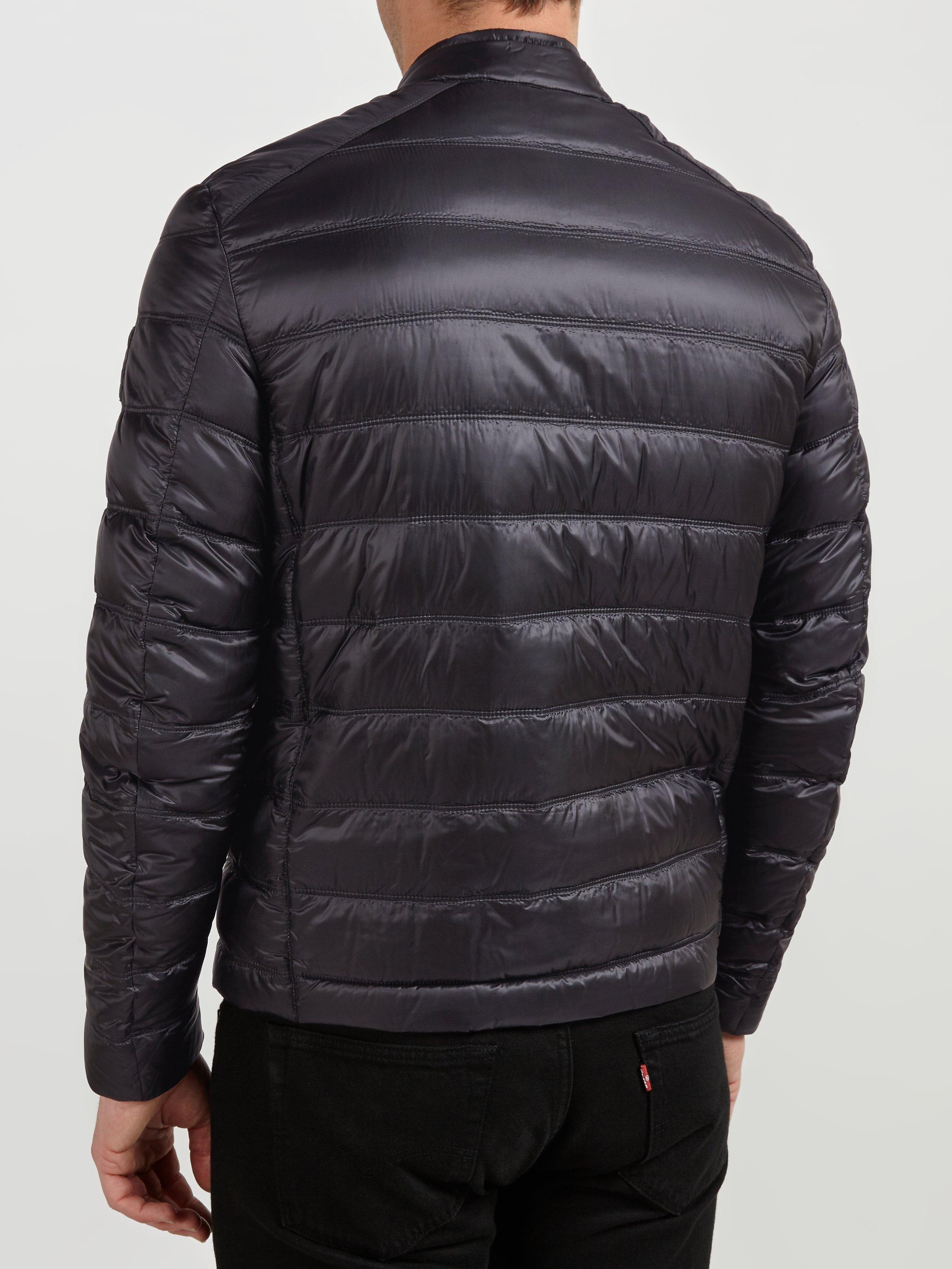 The black down-filled zip jacket features a snap fastening collar and shoulder panelling, and the high density nylon has 790 fill power down, which is 95% down/5% feather.