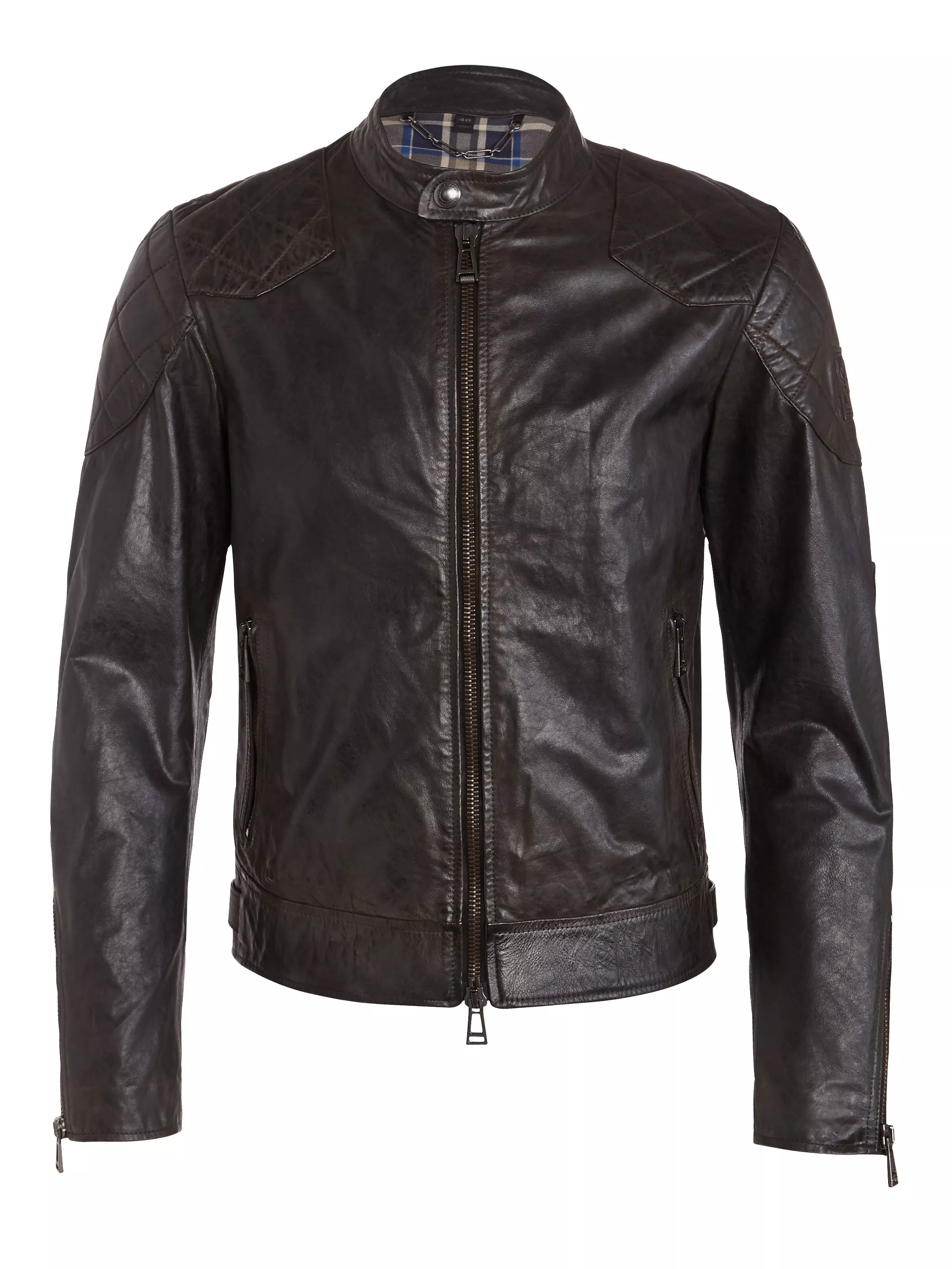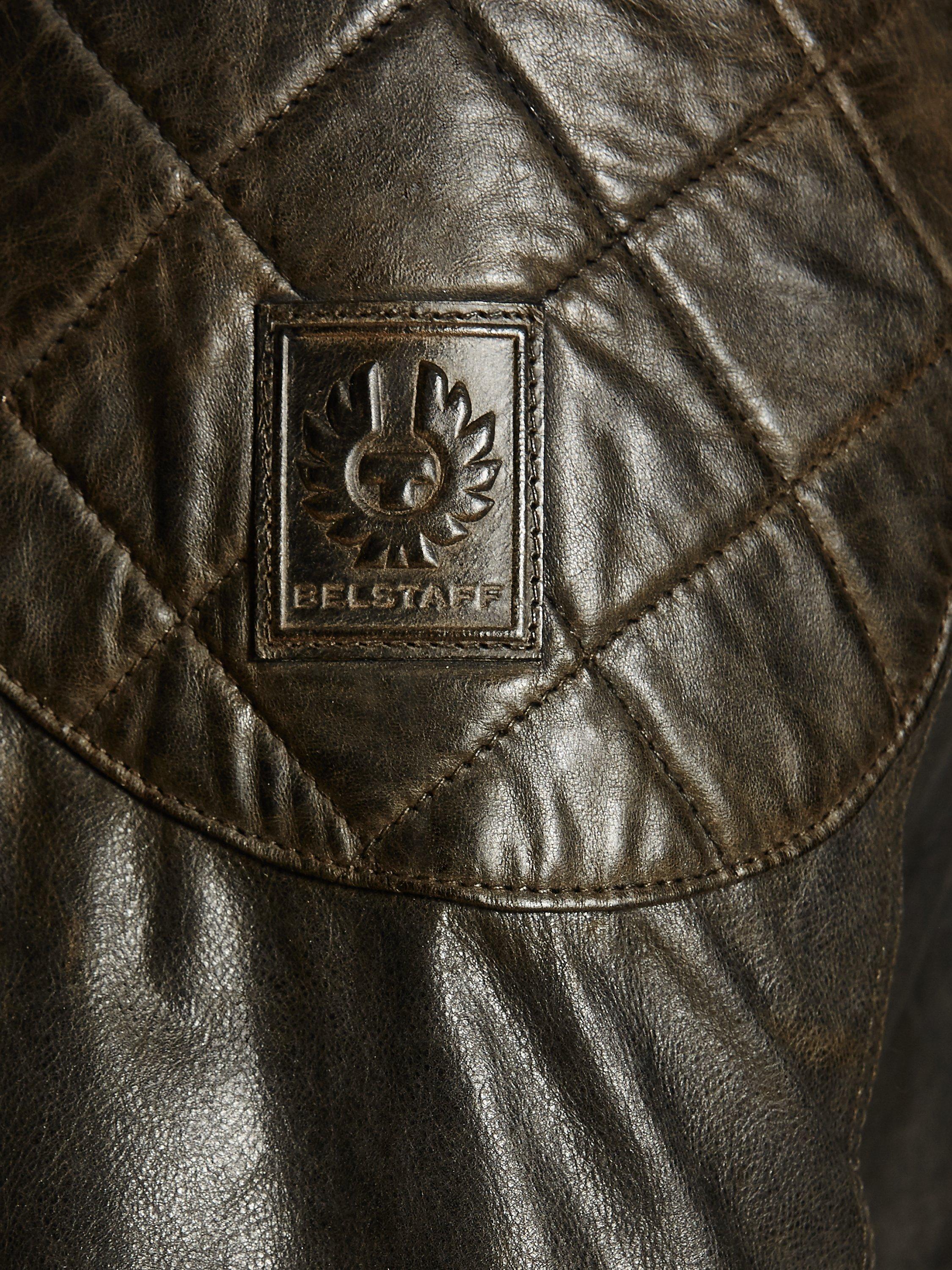 This iconic jacket is more lightweight than Belstaff's usual offerings and is crafted from pure hand-waxed leather. It also boasts striking diamond quilting to the upper sleeves and elbows, a popper fastening to the collar, cuff zips, and buckles to the hips to ensure a snug fit.