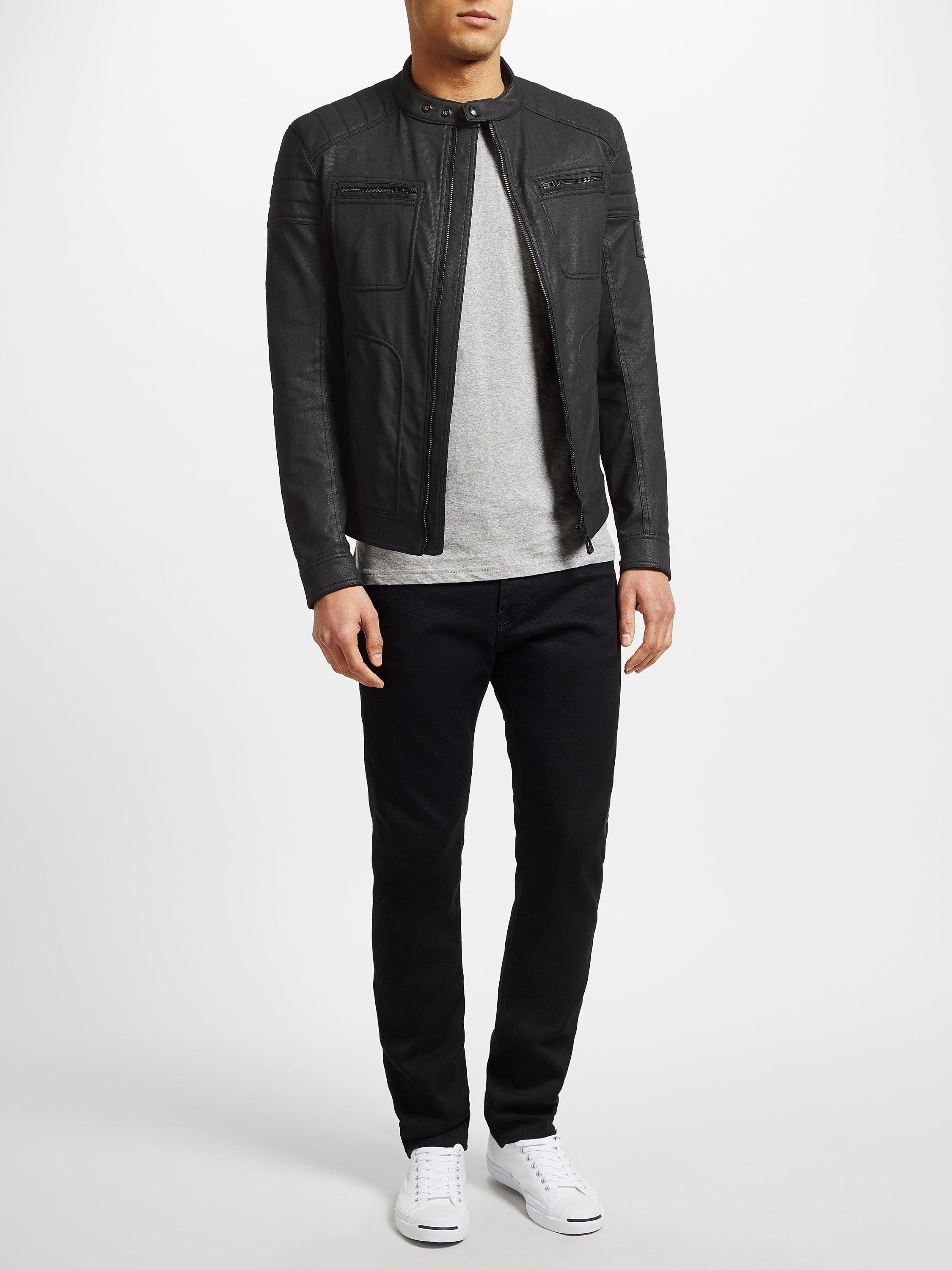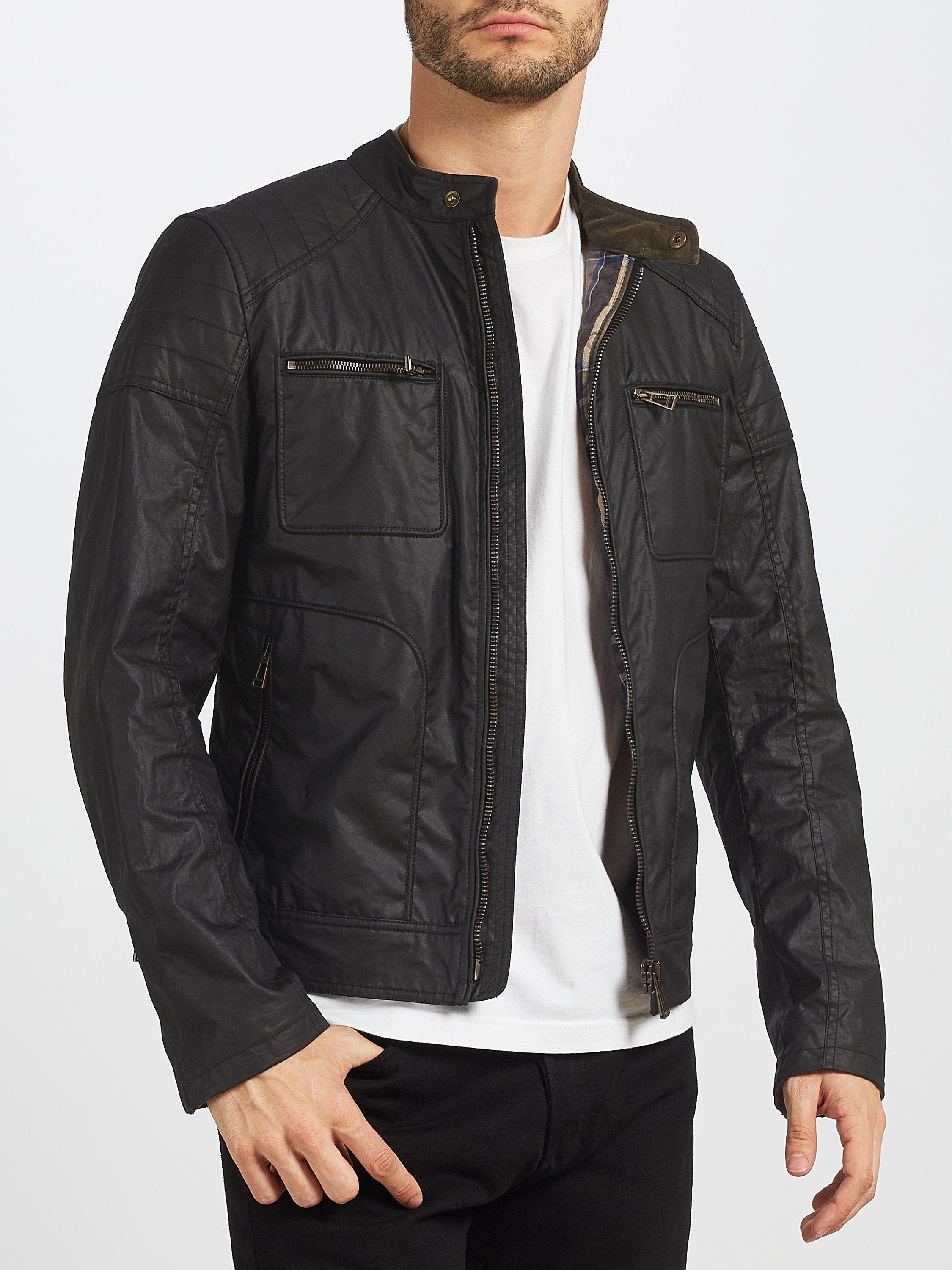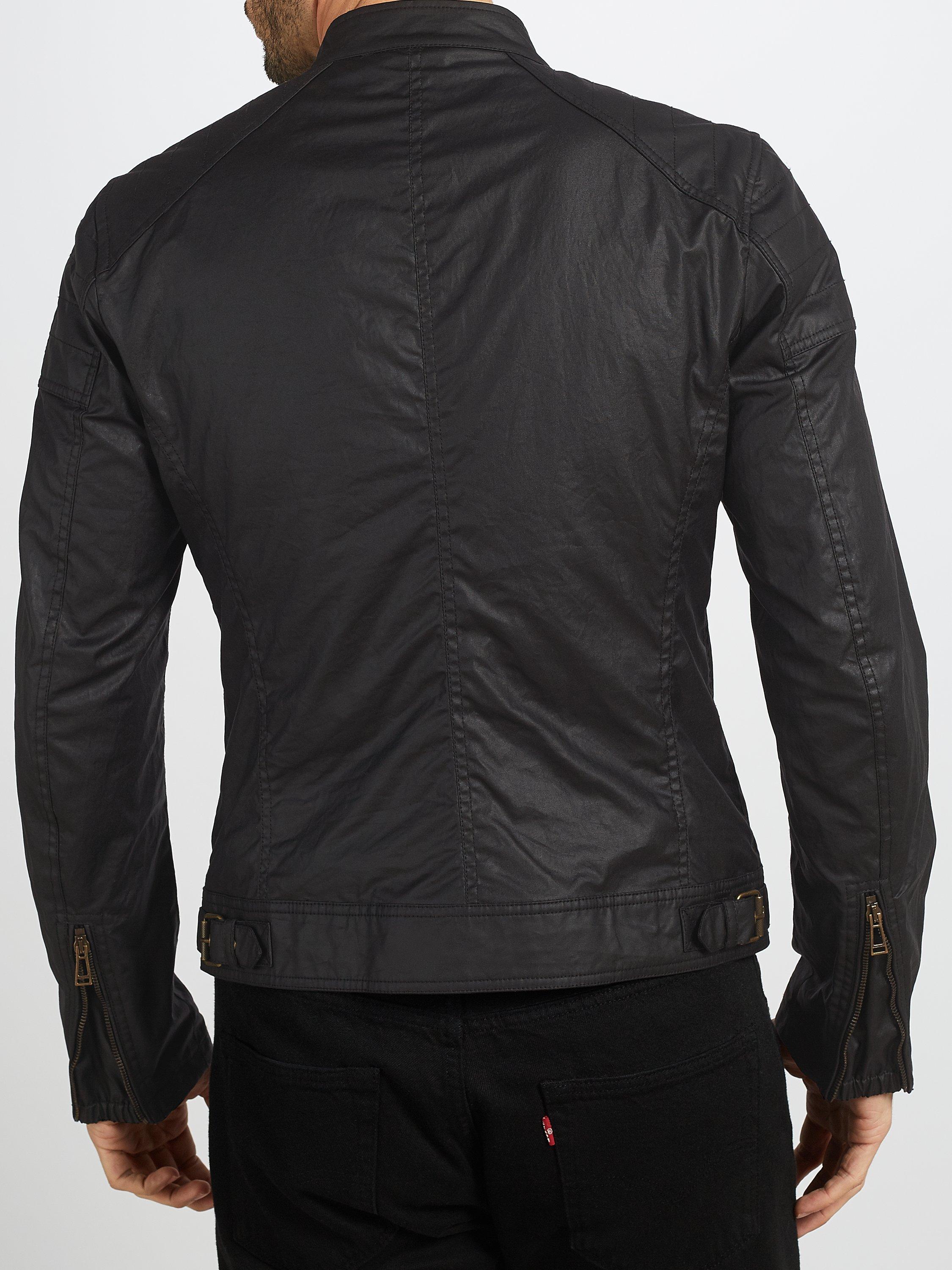 Crafted from cotton jersey with a rubber-like finish, this Weybridge jacket from Belstaff offers a more lightweight alternative to leather.