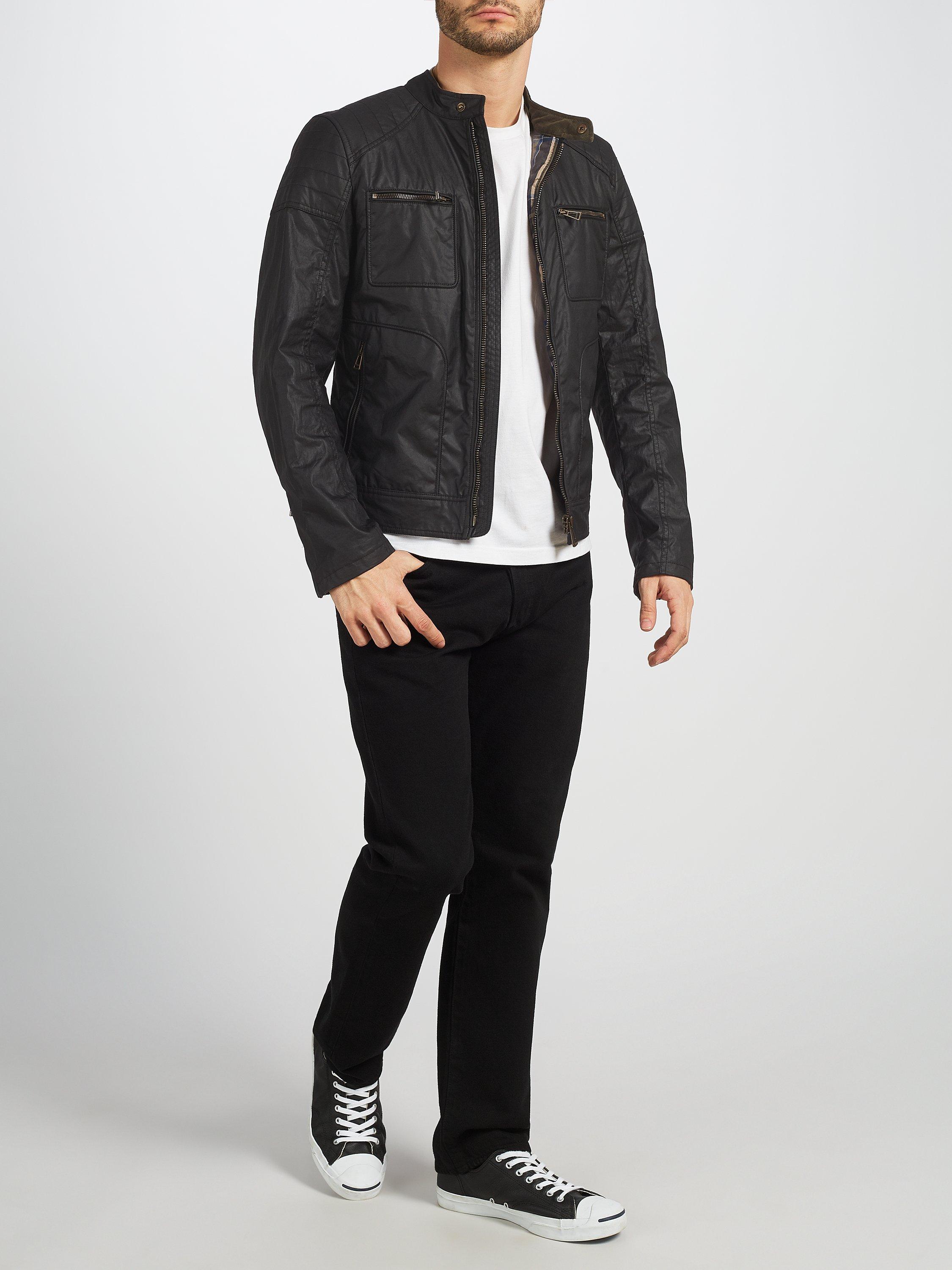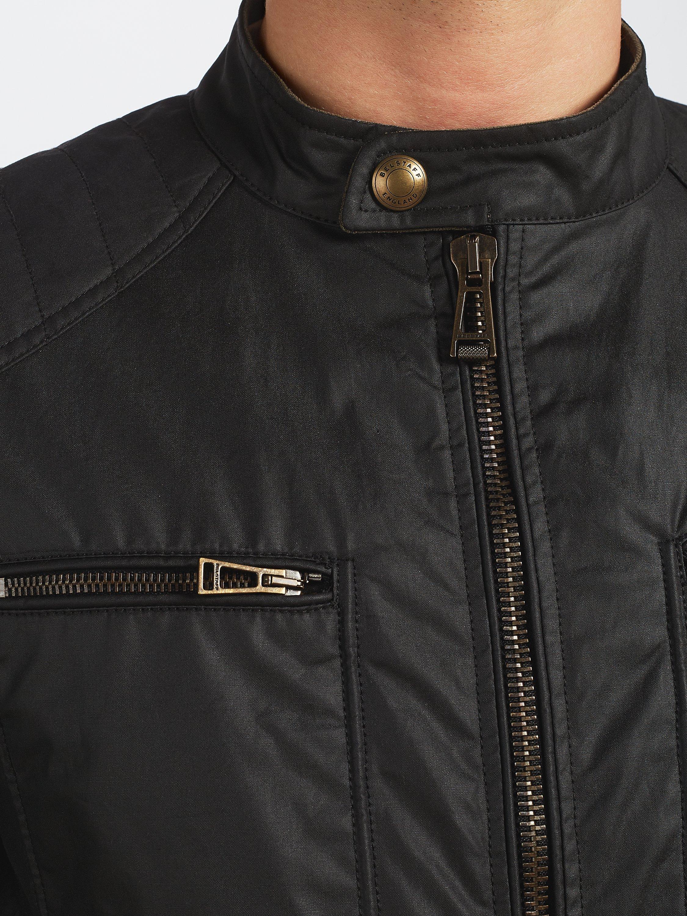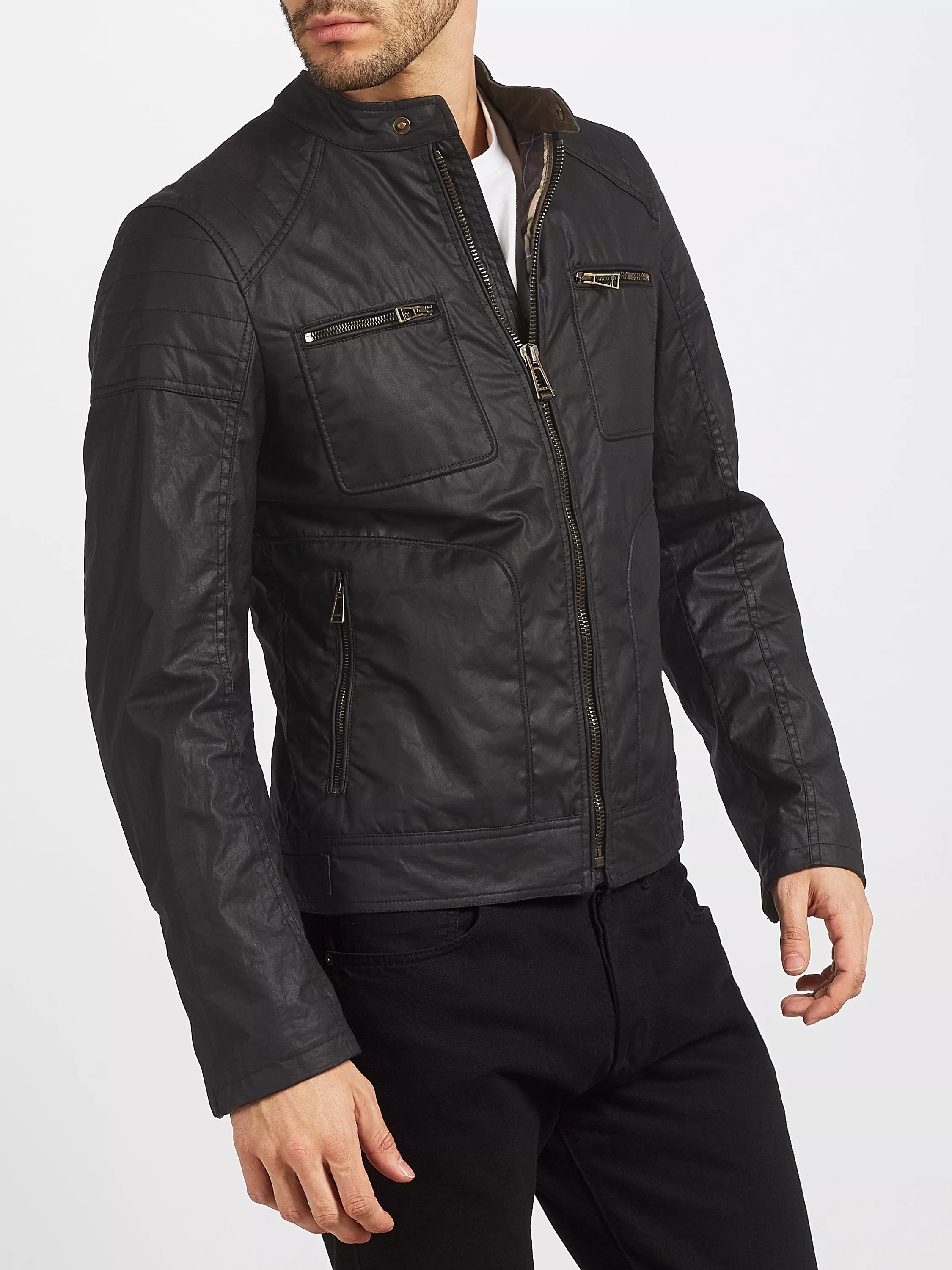 Crafted from cotton jersey with a rubber-like finish, this Weybridge jacket from Belstaff offers a more lightweight alternative to leather.
