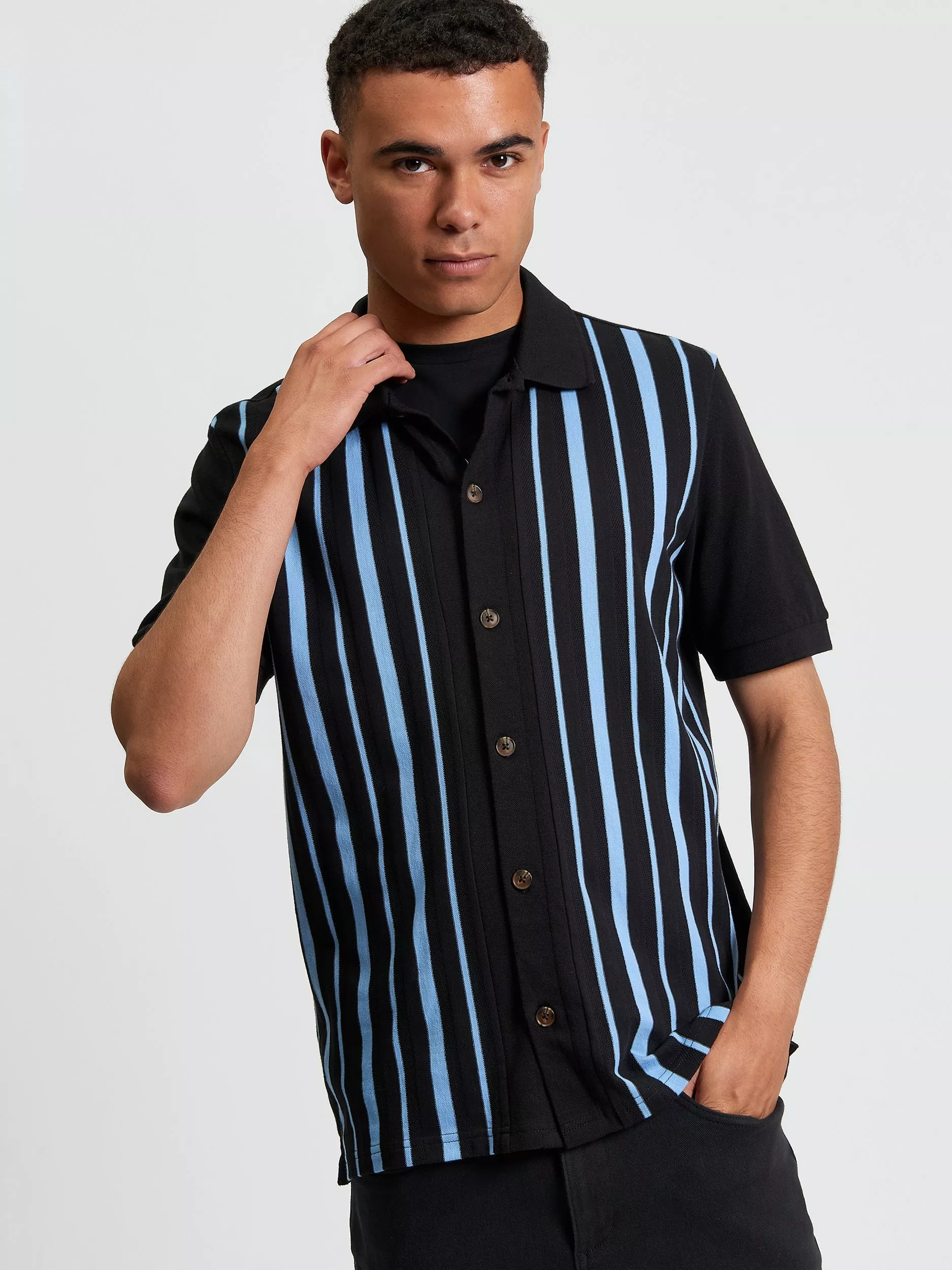 This relaxed, short-sleeved polo shirt is crafted from 100% cotton pique and features a stripe design with subtle textured details. It's finished with a branded woven Ben Sherman label on the side seam.