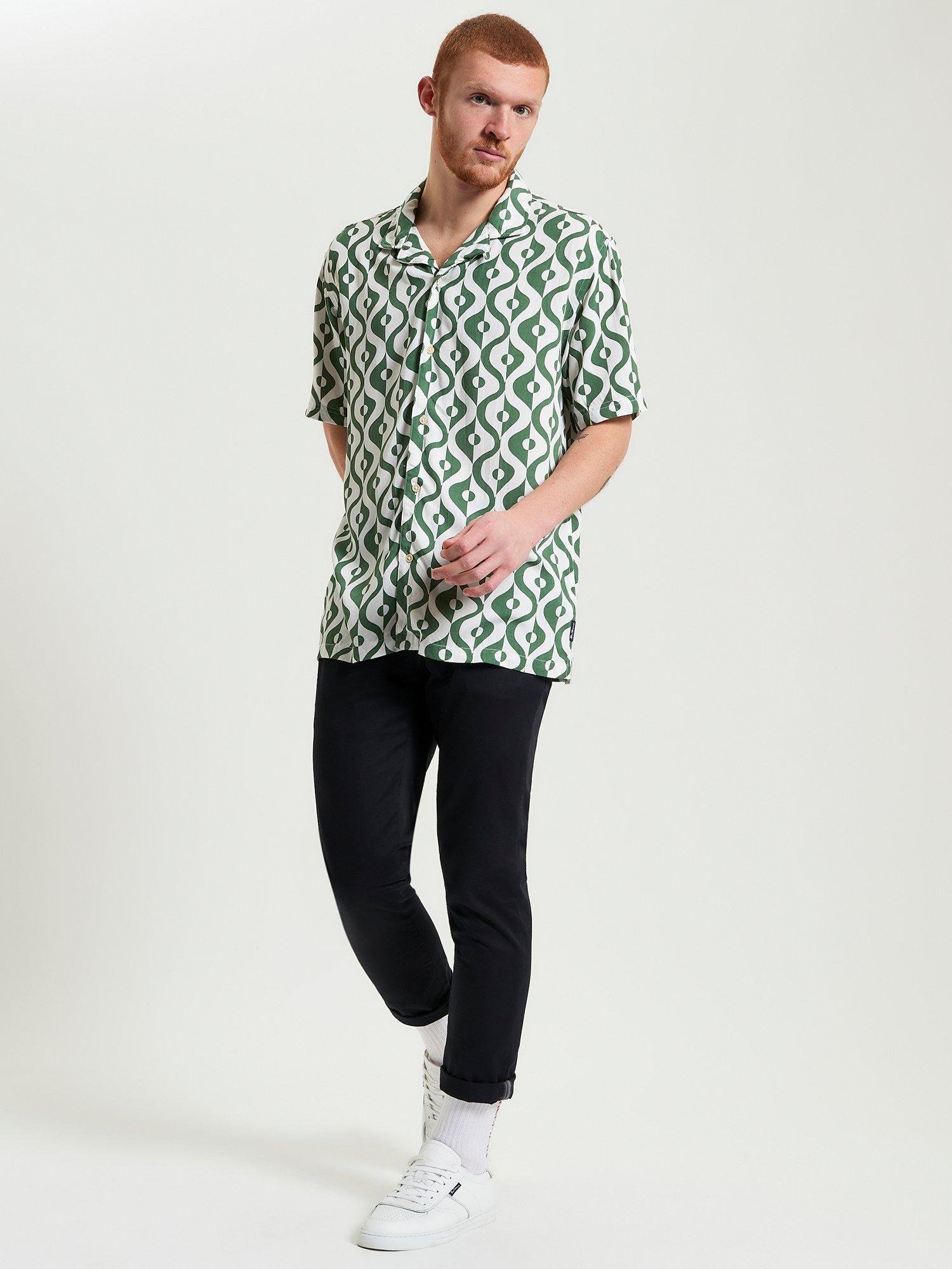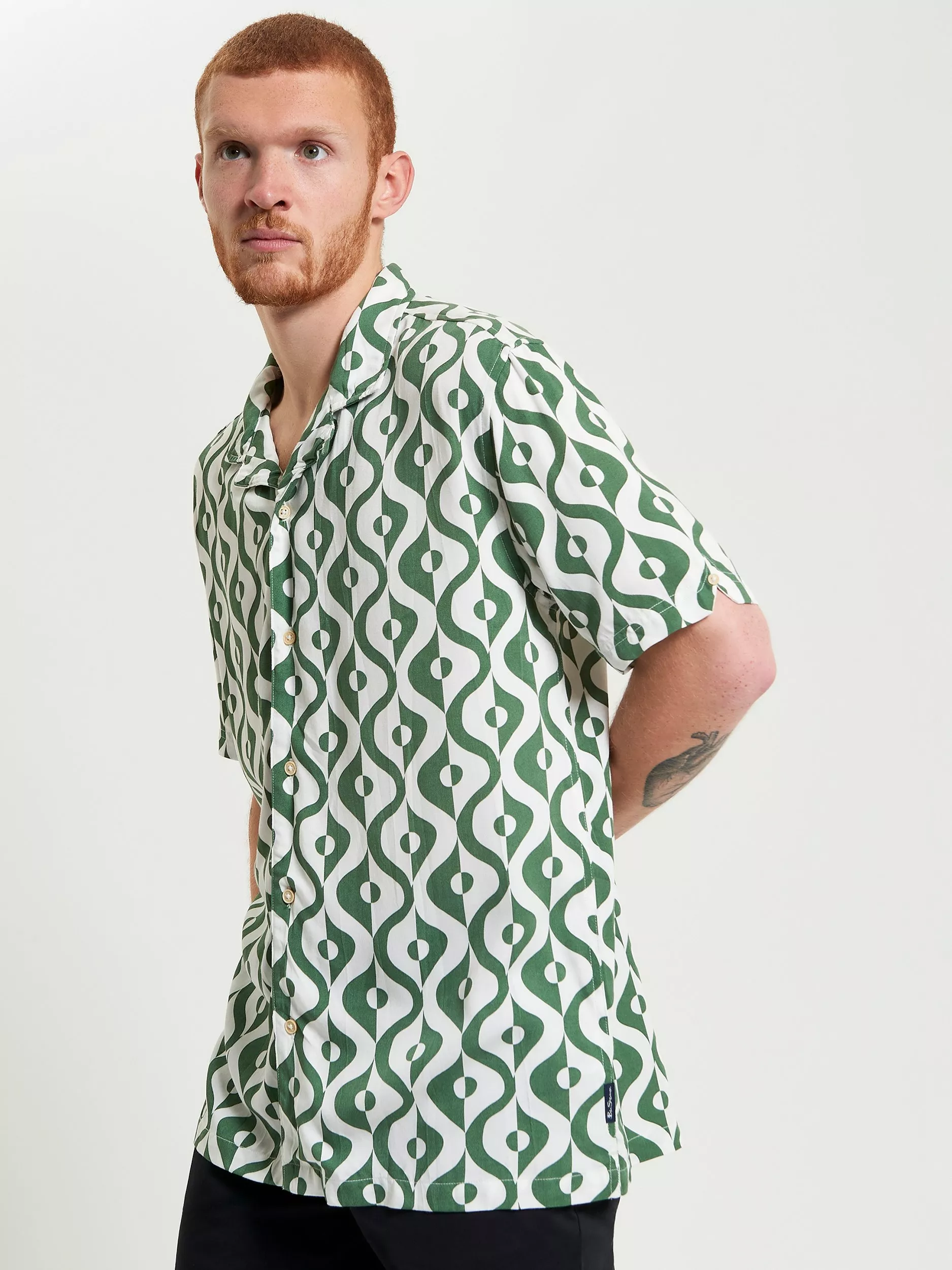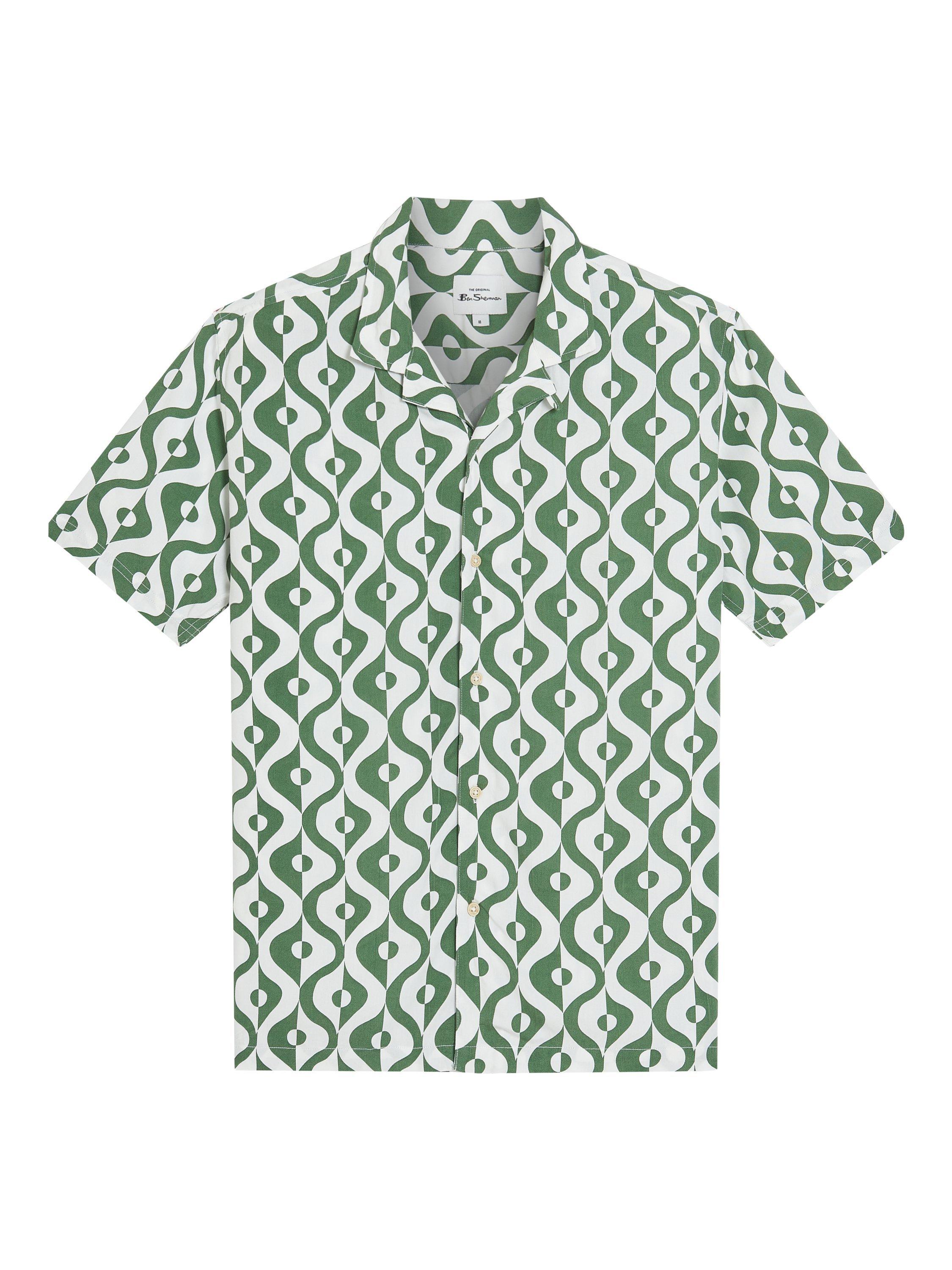 Made from 100% viscose, this short sleeve carnaby geo print shirt includes a revere collar and a B-branded woven label at the side seam. A relaxed fit featuring a straight hem.