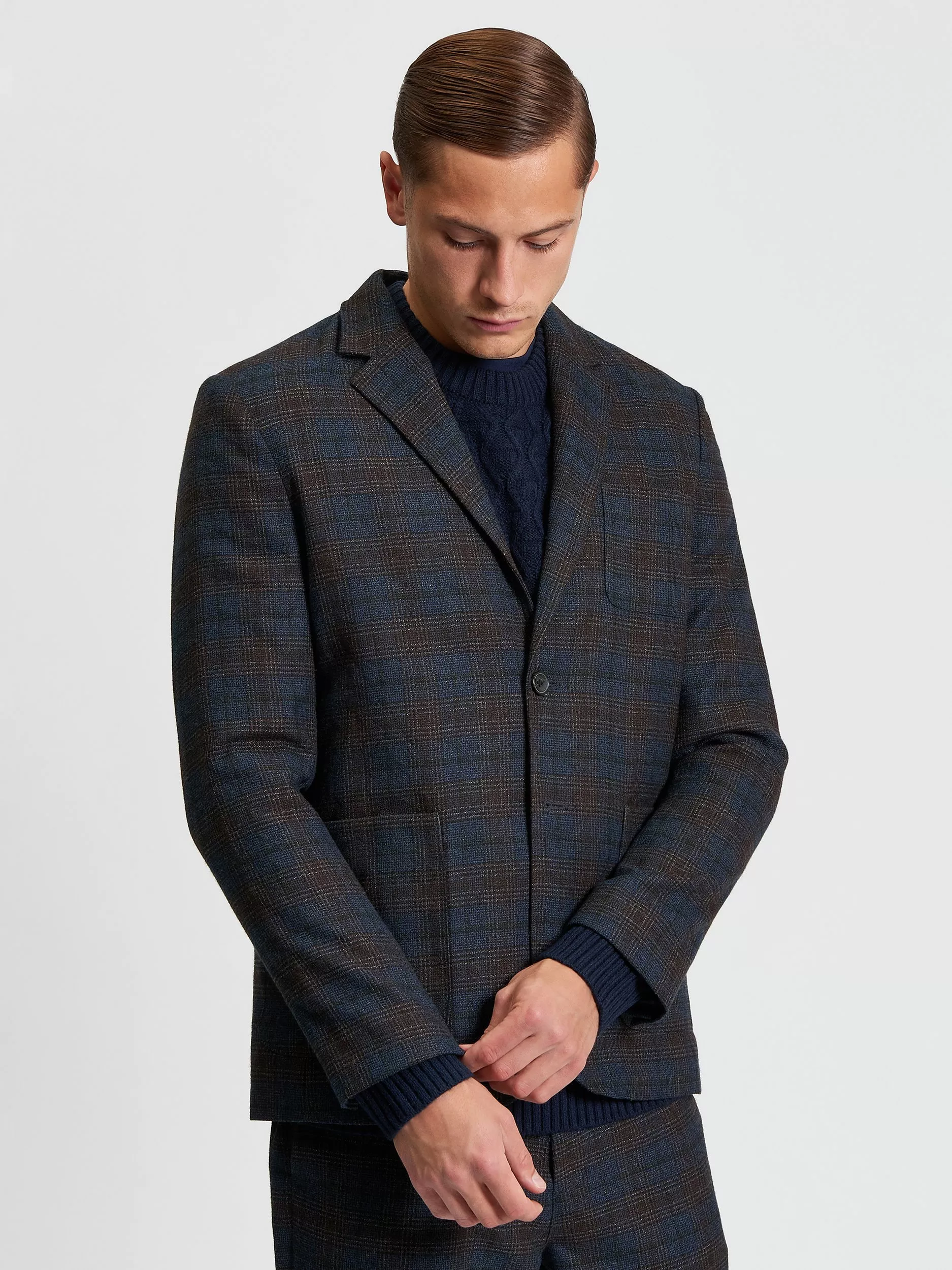 Made from a polyester viscose blend, this Check Blazer features three external pockets and a button fastening. Completed with a central back vent, button cuffs and two internal welt pockets.