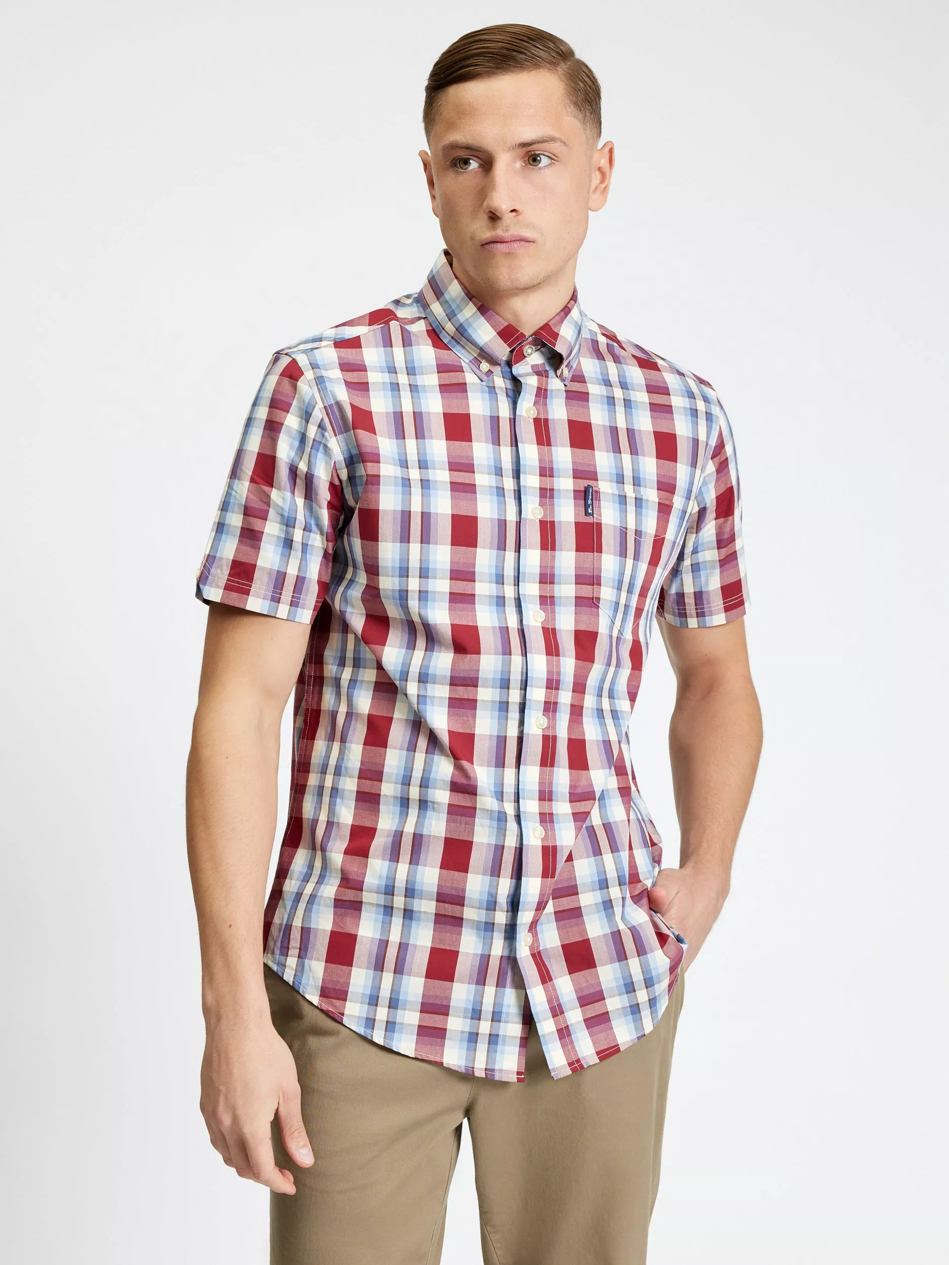 A short-sleeved cotton shirt by Ben Sherman taking influence from classic tailoring with its check pattern and regular fit.