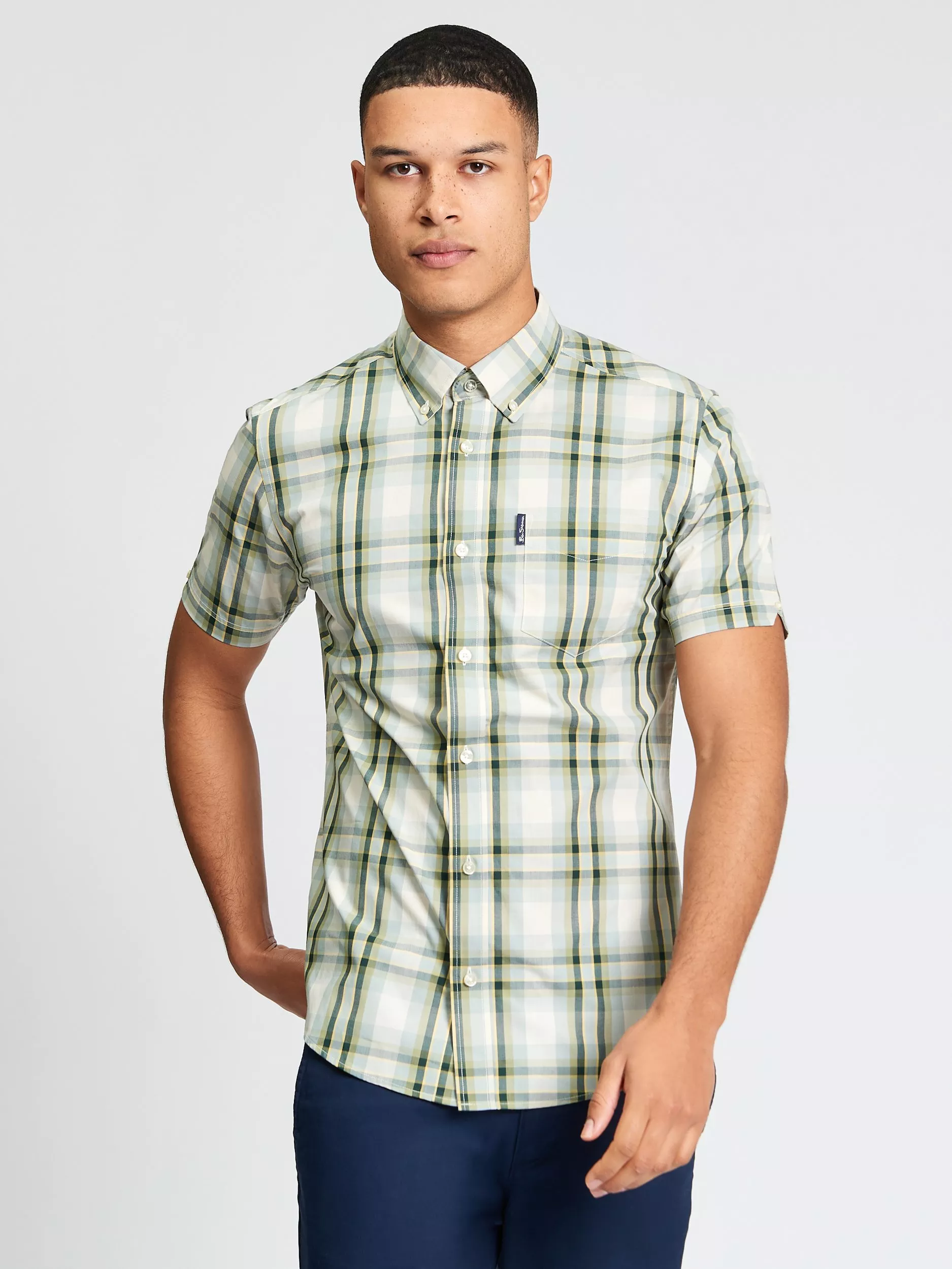 A short-sleeved cotton shirt by Ben Sherman taking influence from classic tailoring with its check pattern and regular fit.