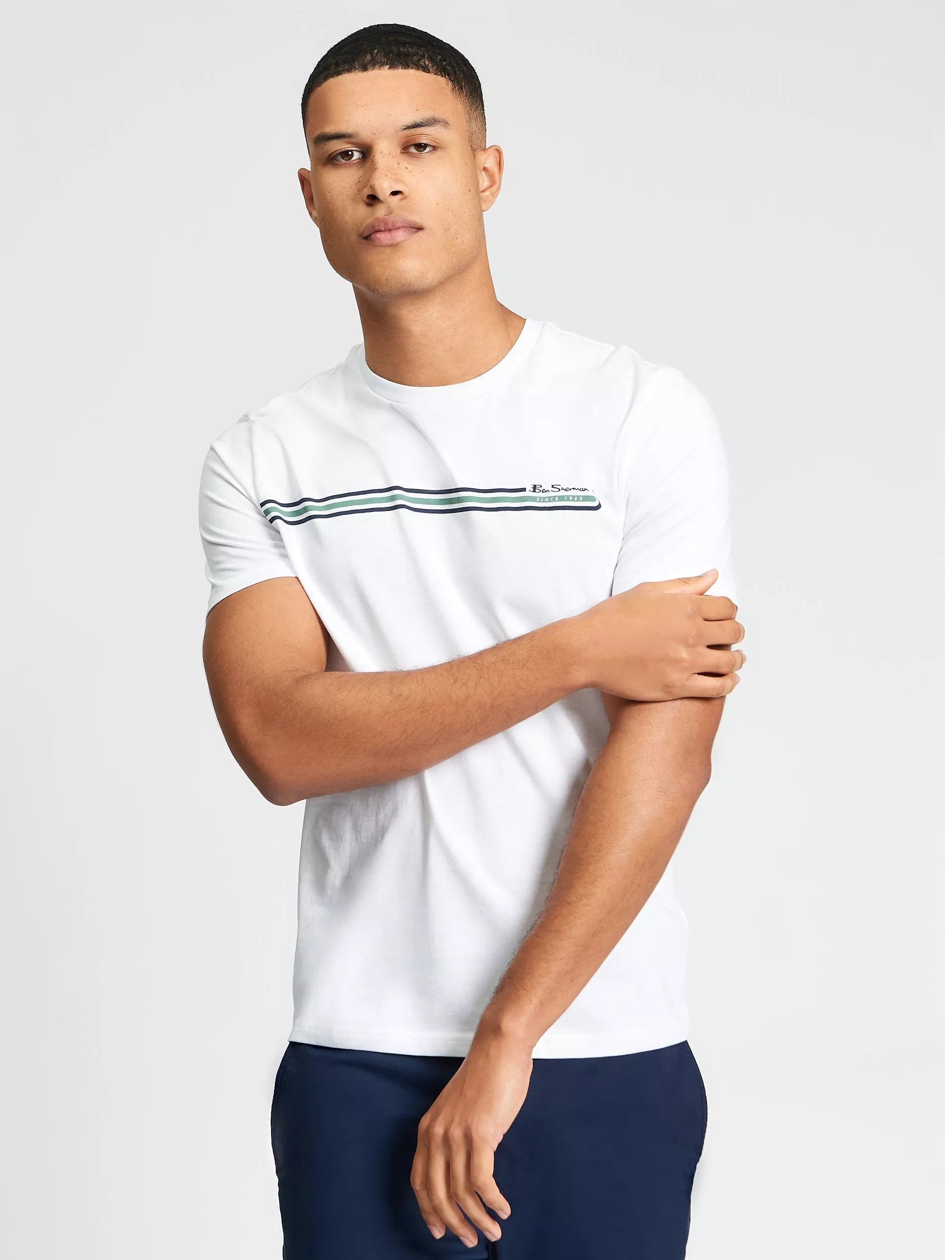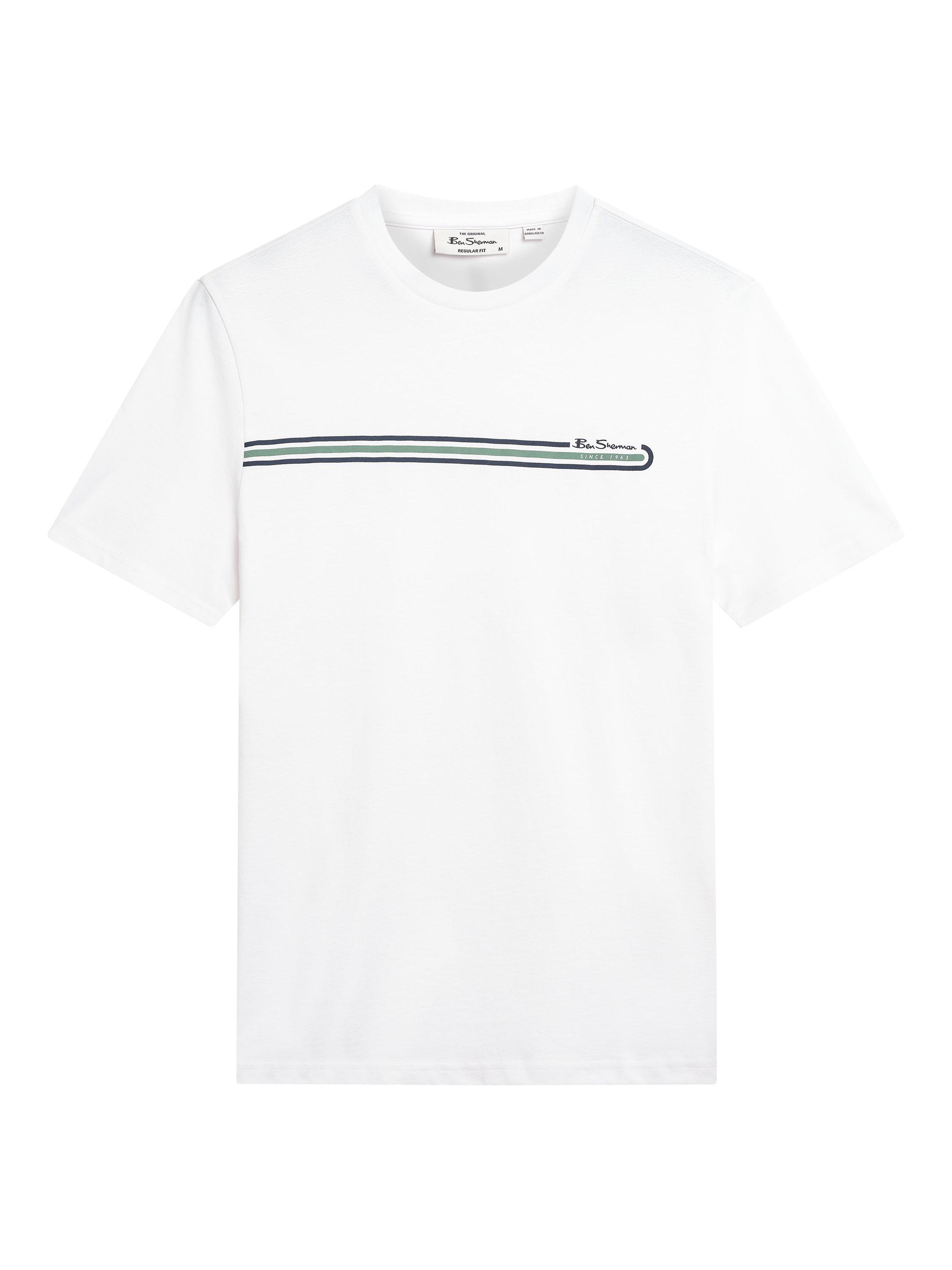 A regular fit short sleeve t-shirt featuring a printed stripe design across the chest. Made from 100% cotton, this t-shirt is completed with a Ben Sherman branded woven label on the side seam.