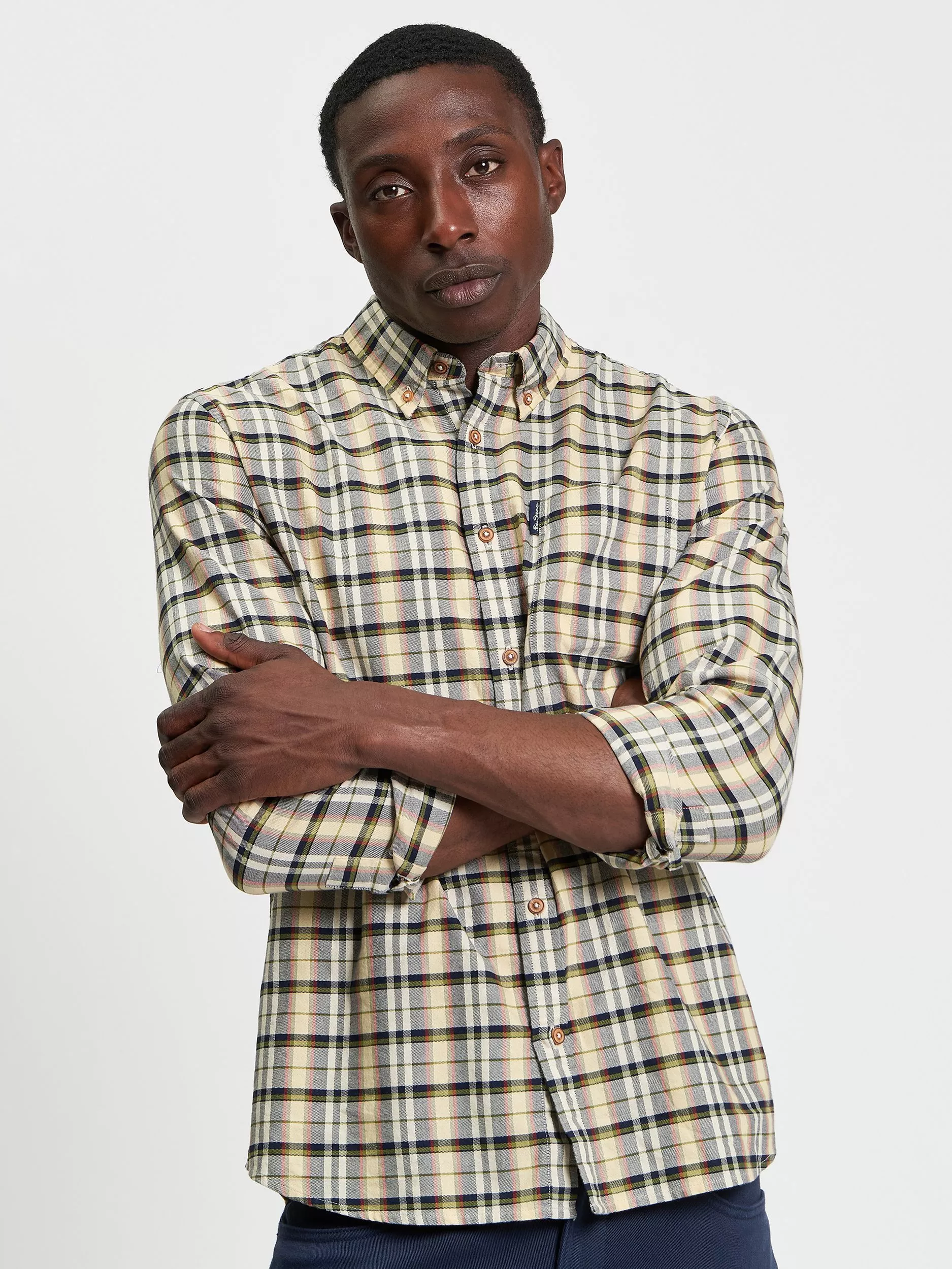 Made from 100% cotton, this long sleeve multicoloured oxford check shirt includes a two finger button down collar and a Ben Sherman branded woven label at the chest pocket. A classic fit featuring a curved hem.