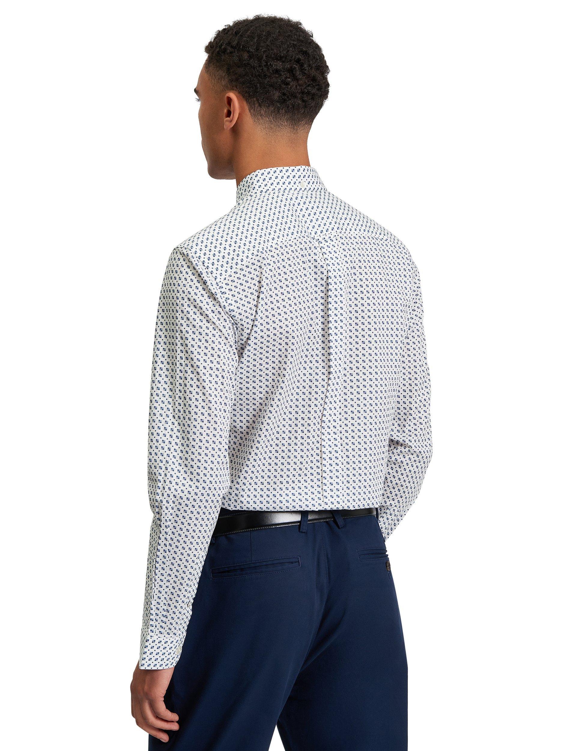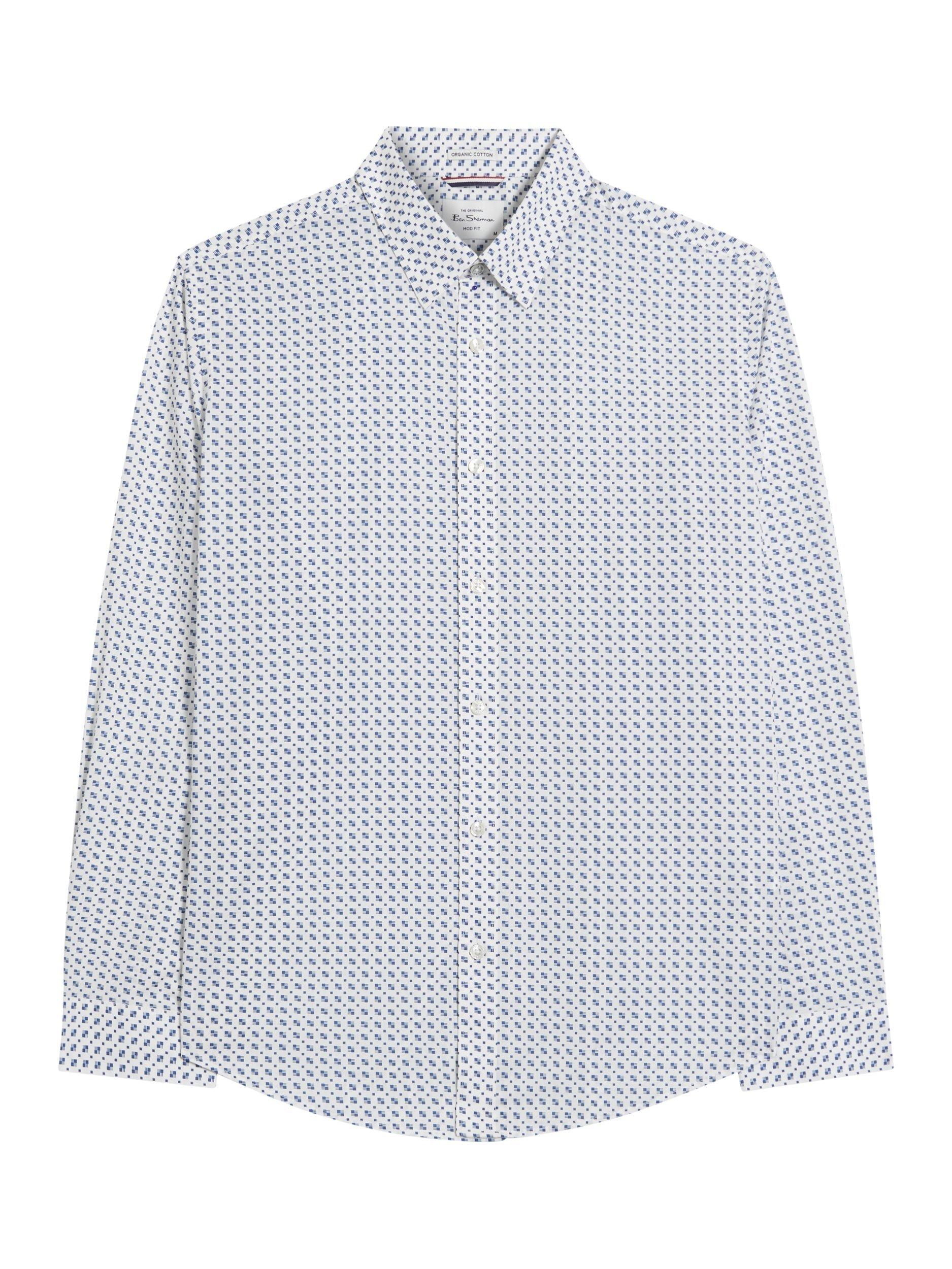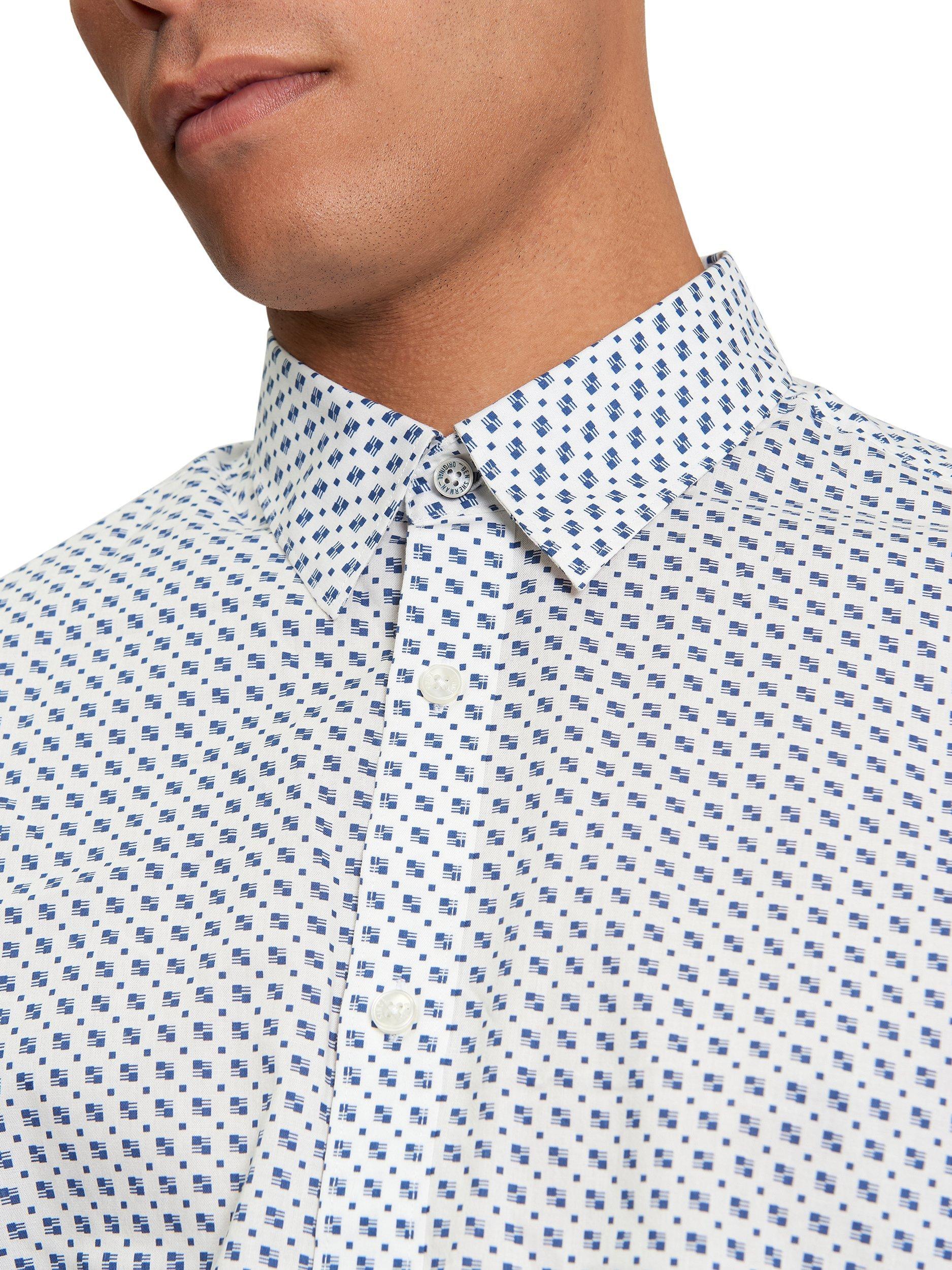 A regular fit shirt design with a mono block print. Featuring a curved hem, classic point concealed button down collar and a Ben Sherman branded woven label on the side seam.