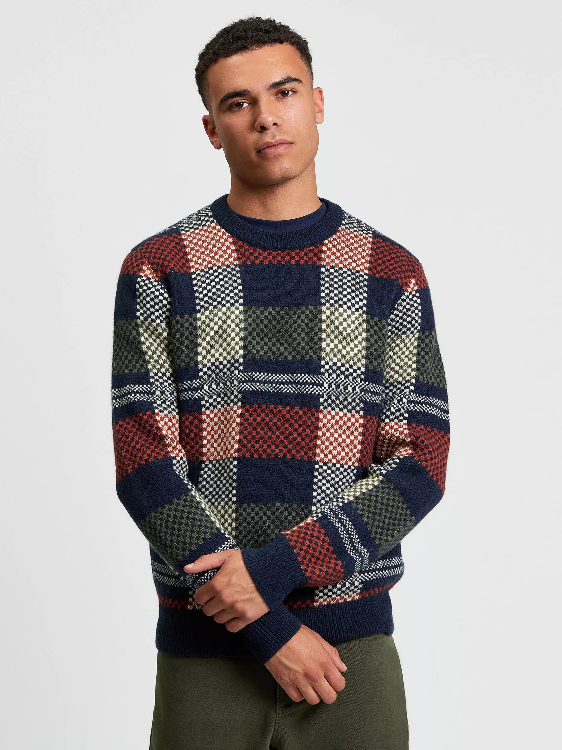 Made from a wool blend, this regular fit jacquard check crew features a Ben Sherman branded woven label on the side seam.