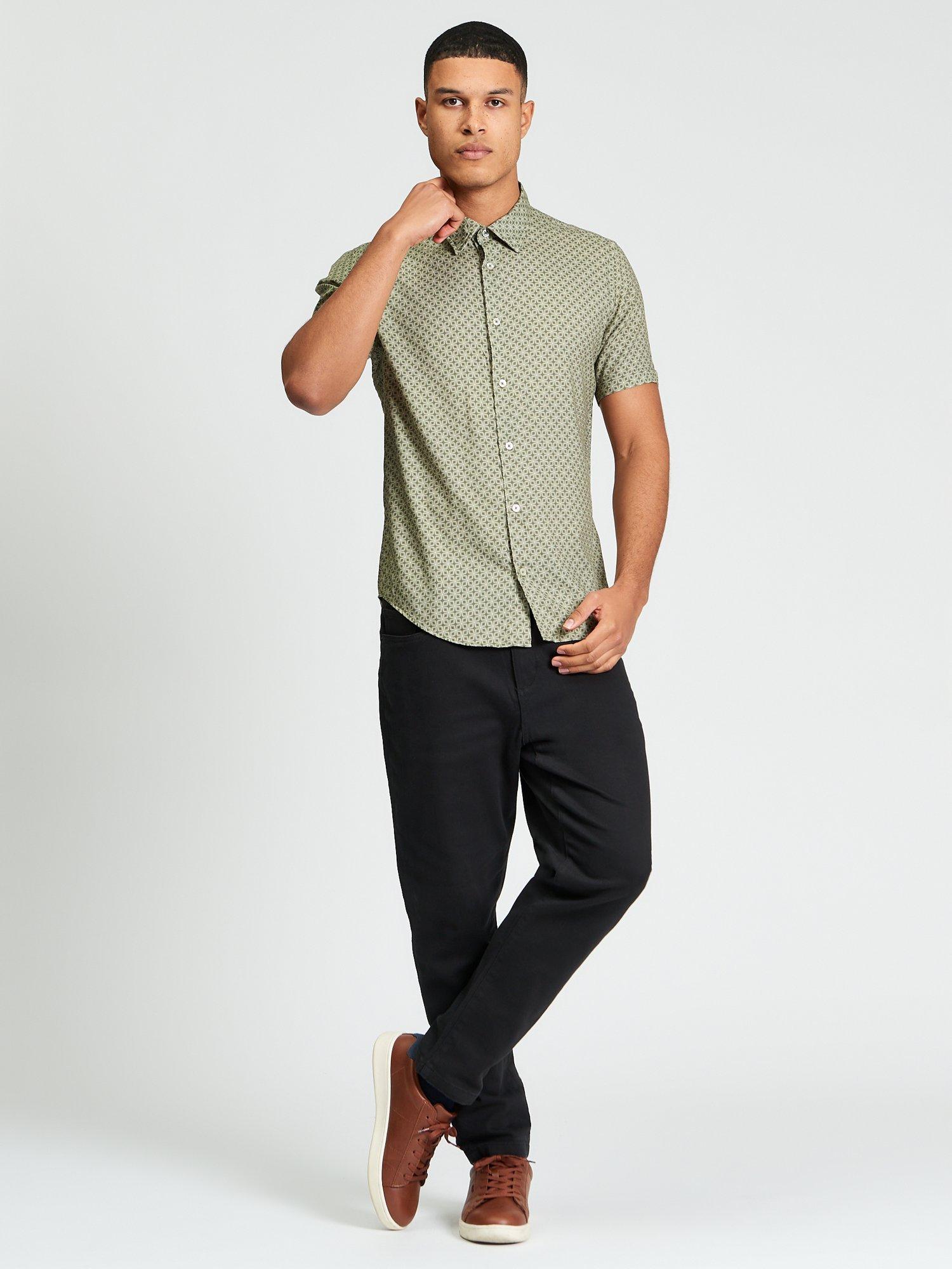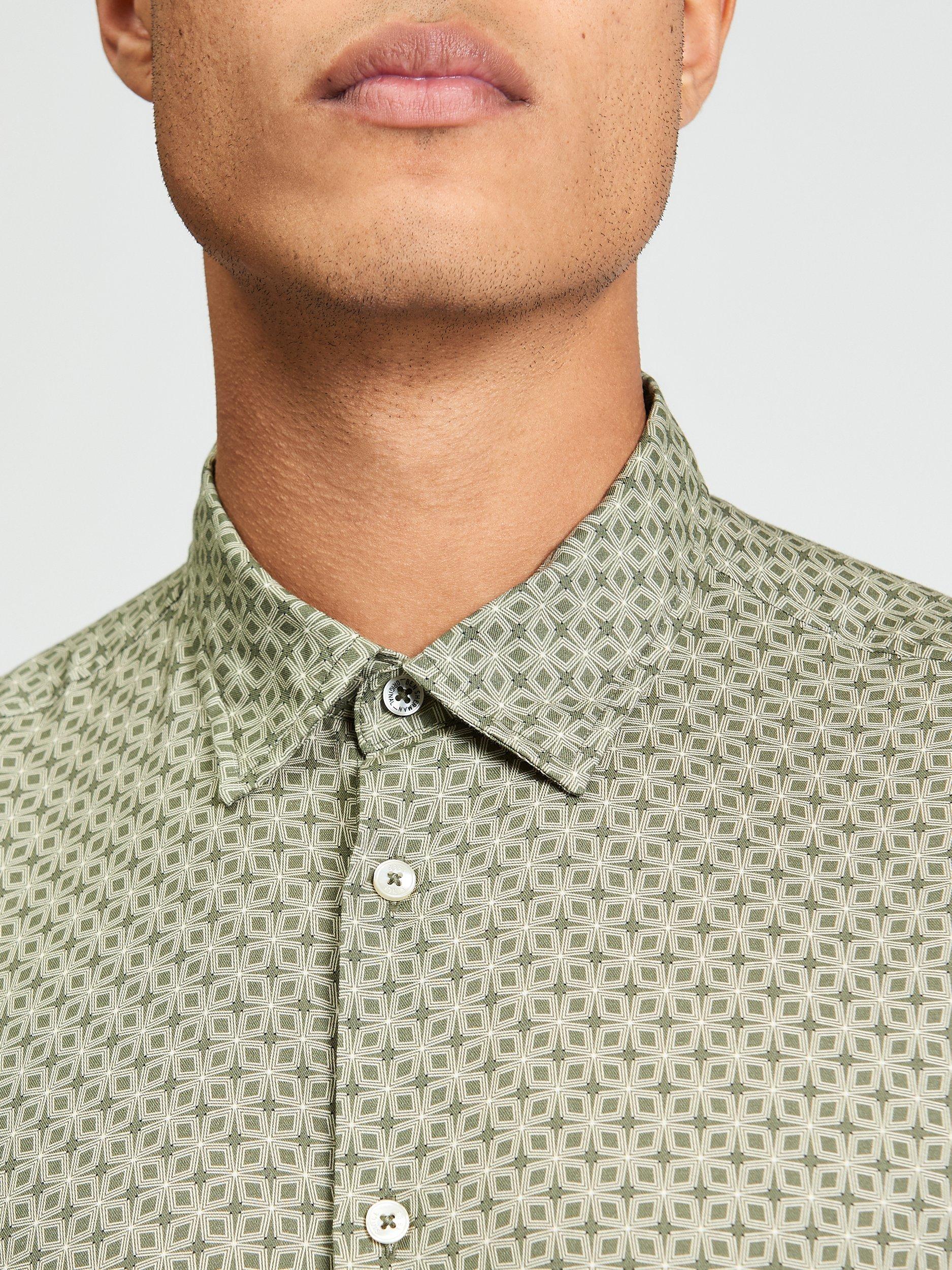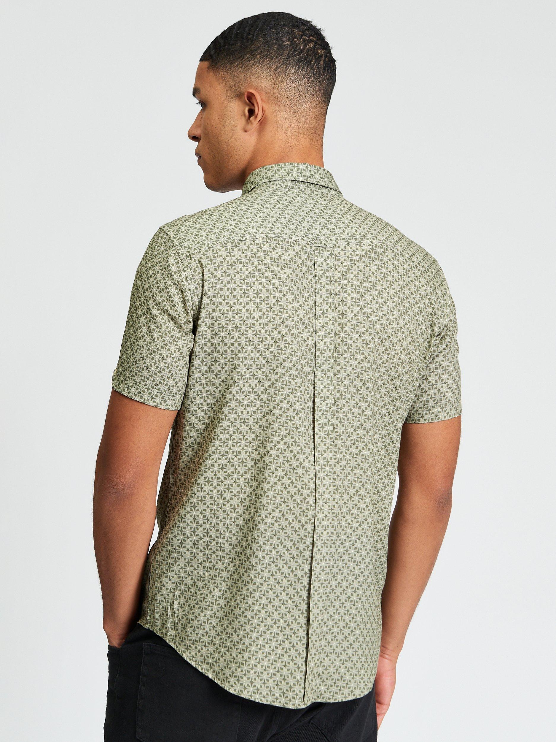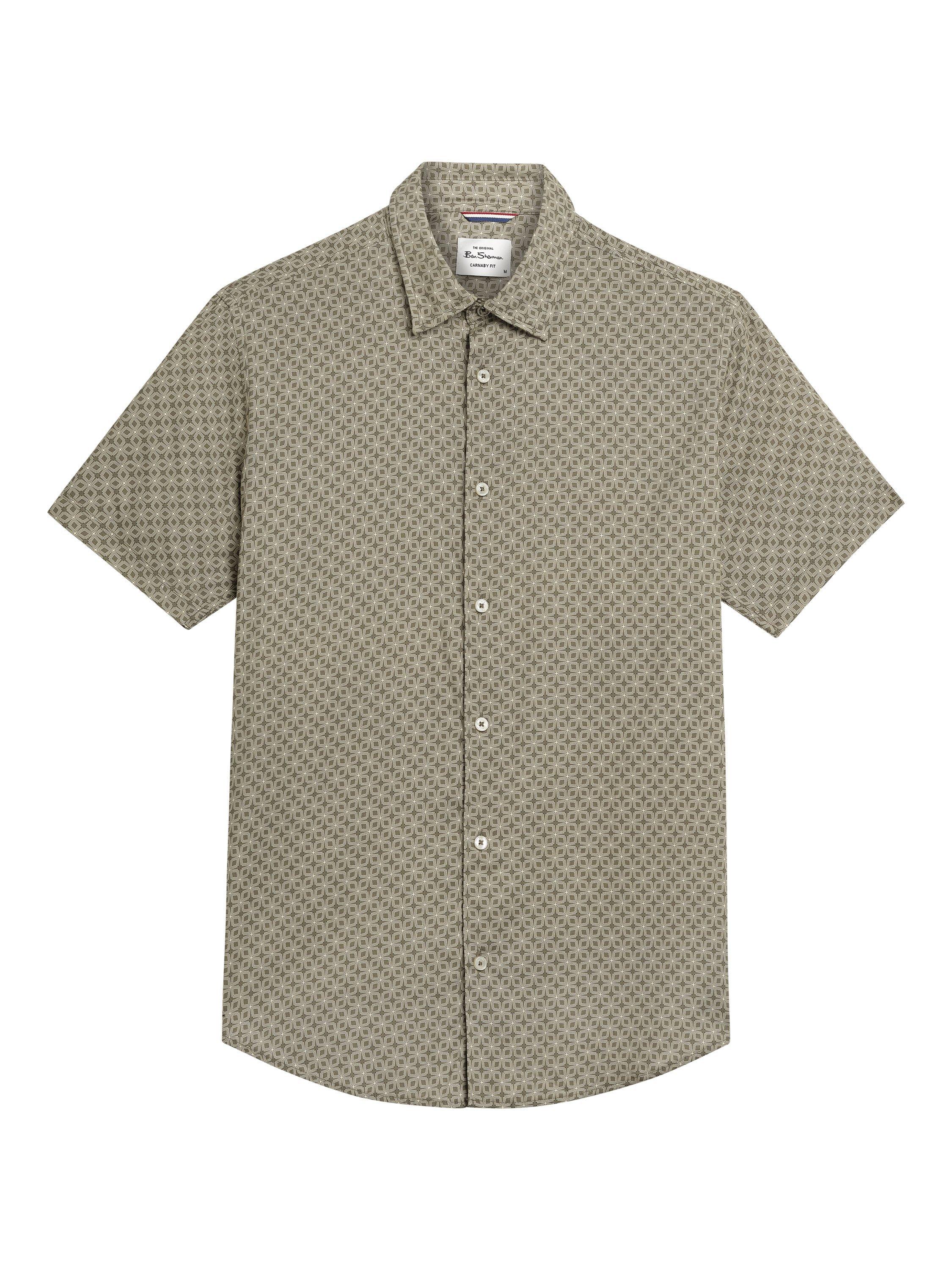 This short sleeve linear geometric print shirt features a curved hem and casual point collar. Made from a cotton blend, this shirt is completed with a 'Ben Sherman' branded woven label on the side seam.