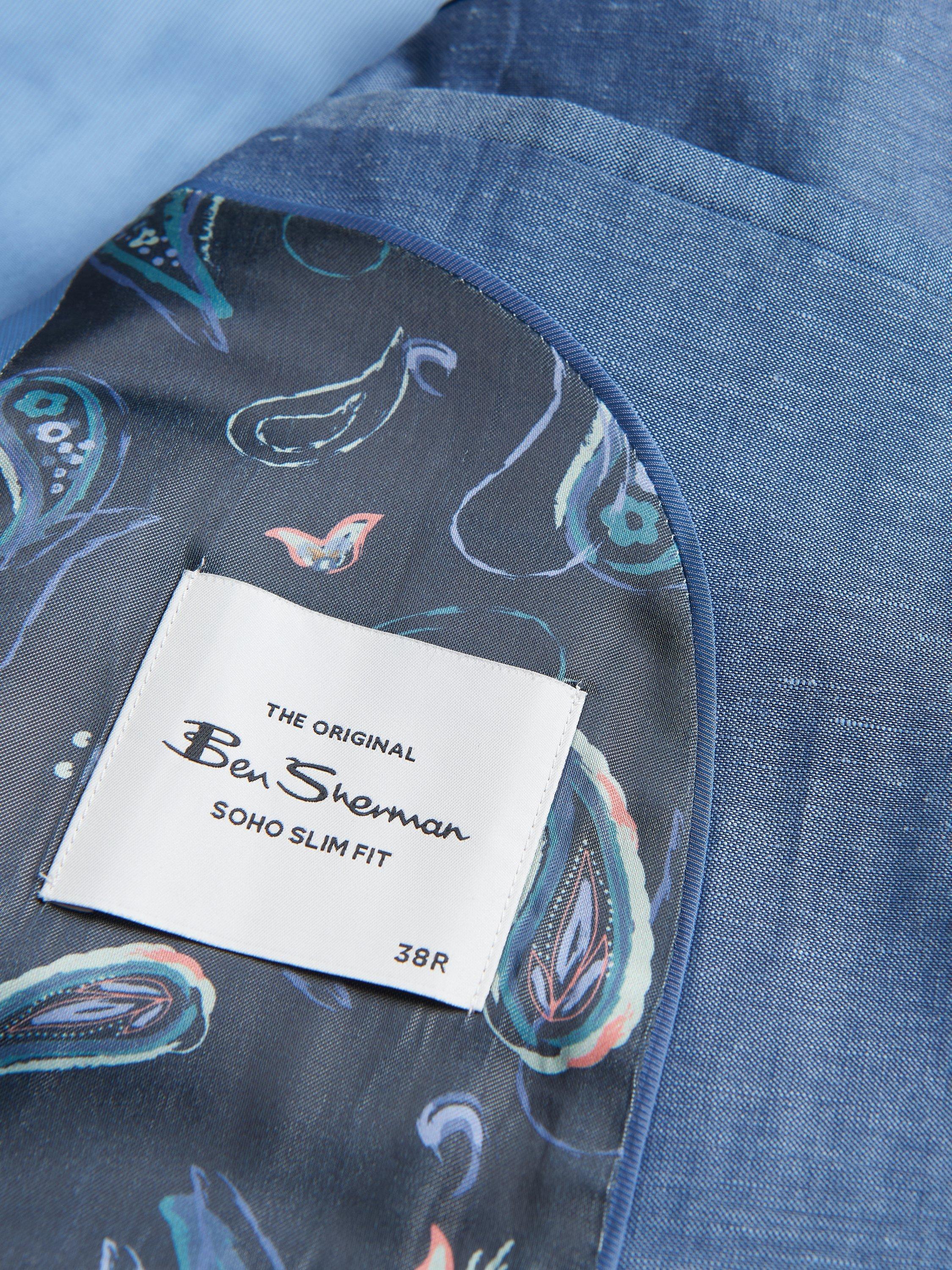The Ben Sherman linen rich blazer, complete with a paisley and a plain lining. Details include working cuff buttons and a contrast Melton under collar. This style is branded with a Ben Sherman mod tape and a target lapel pin for the final finish. Pair with our matching linen rich trouser for a complete look.