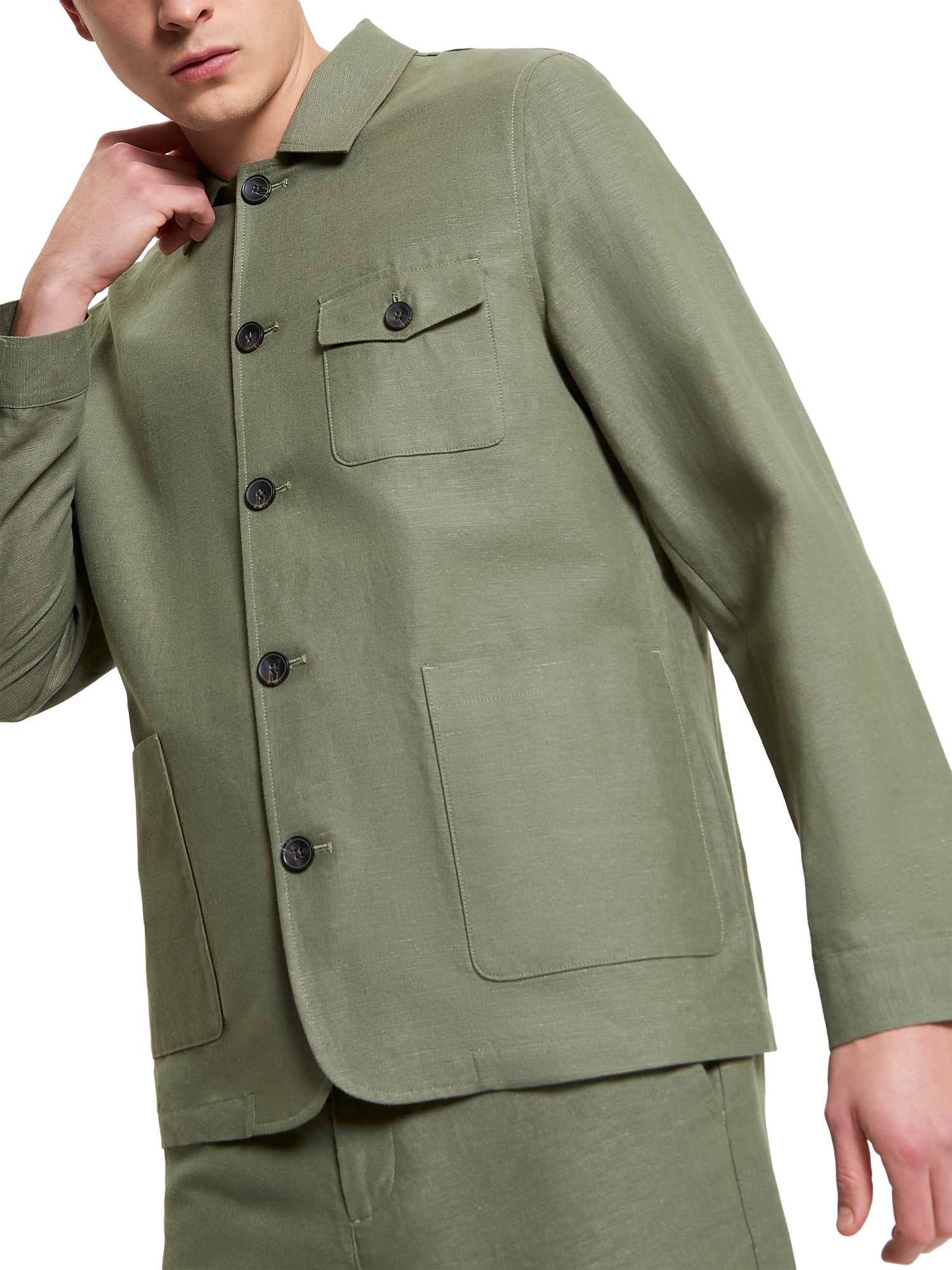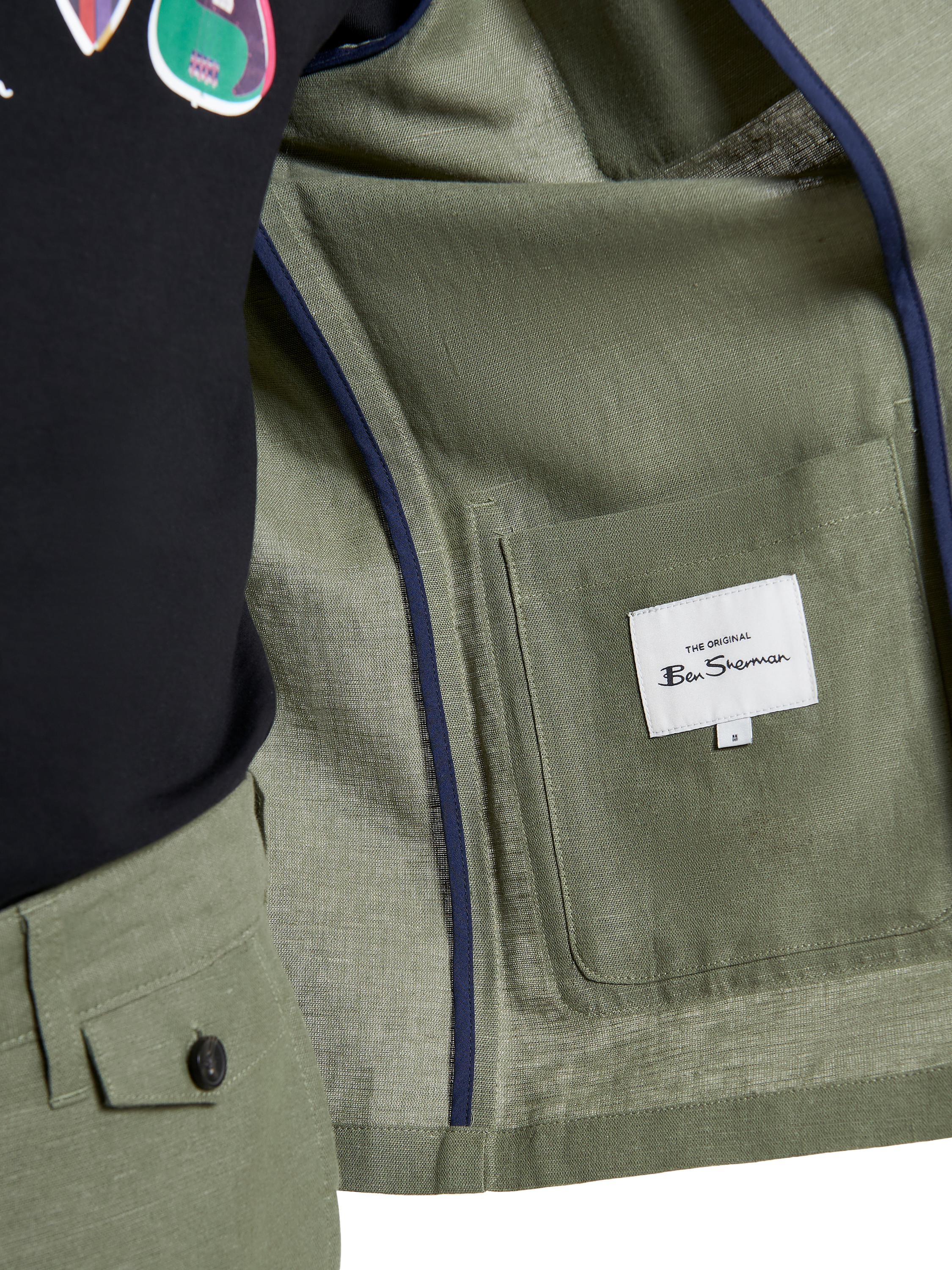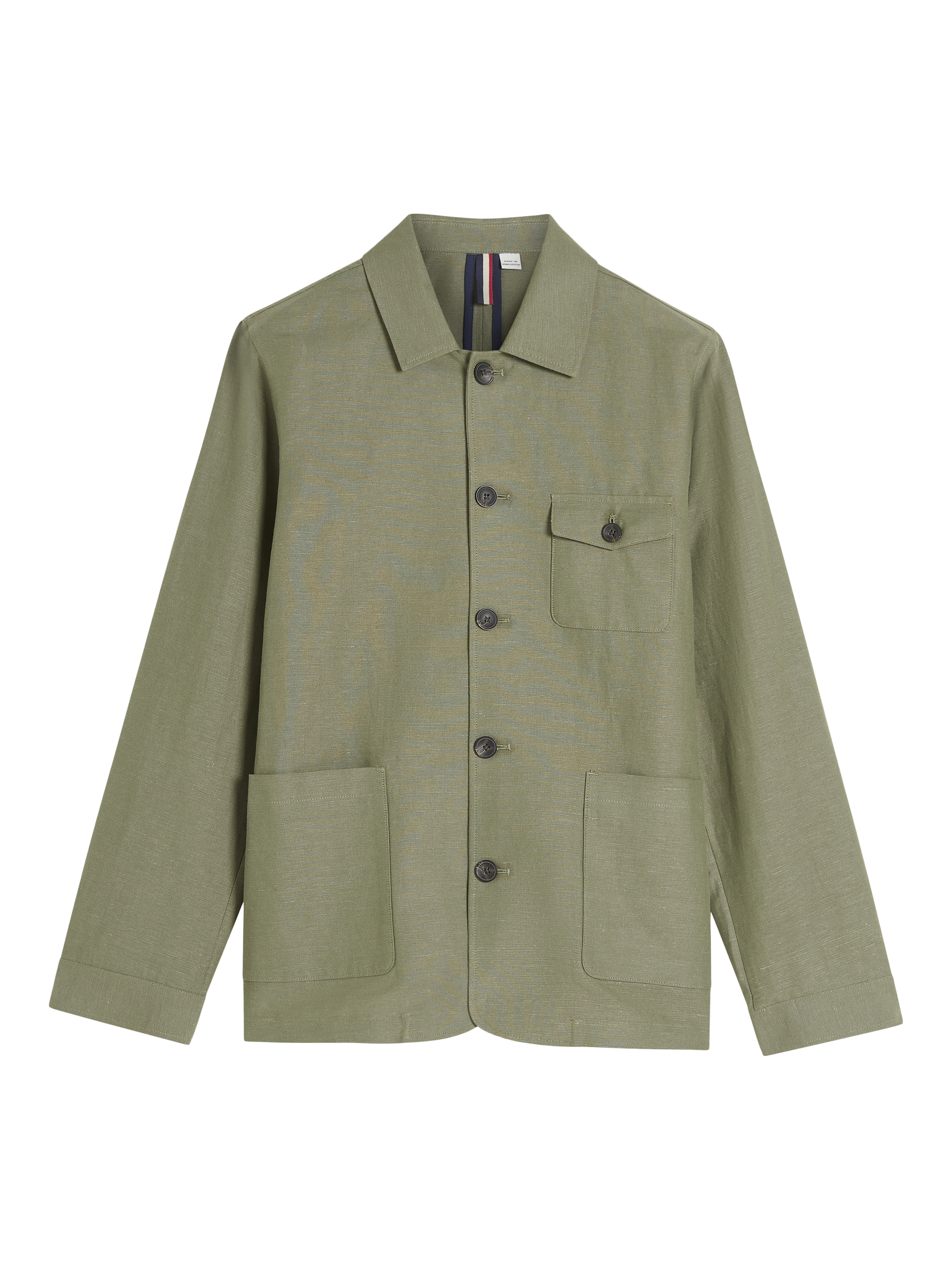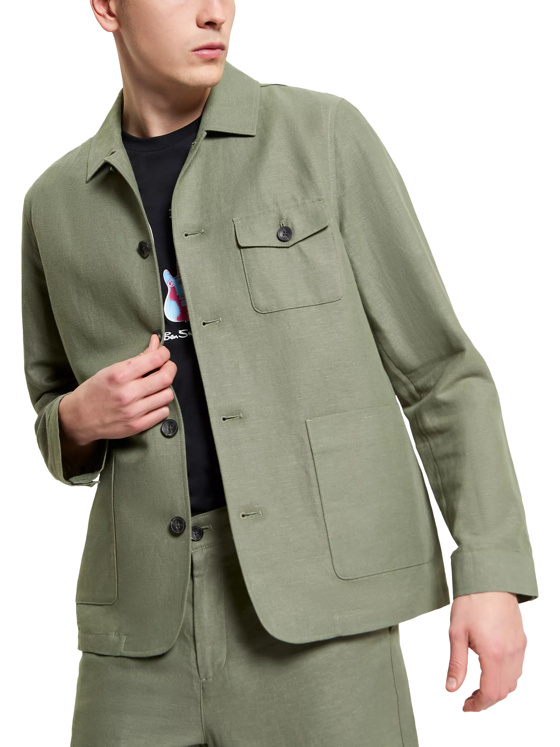 This linen chore jacket from style maestro Ben Sherman is an ideal lighter choice for the lighter season. It's unlined, with contrast internal bound seams. It features a collar point and button through placket, and adds three external patch pockets, plus a Ben Sherman flag label.