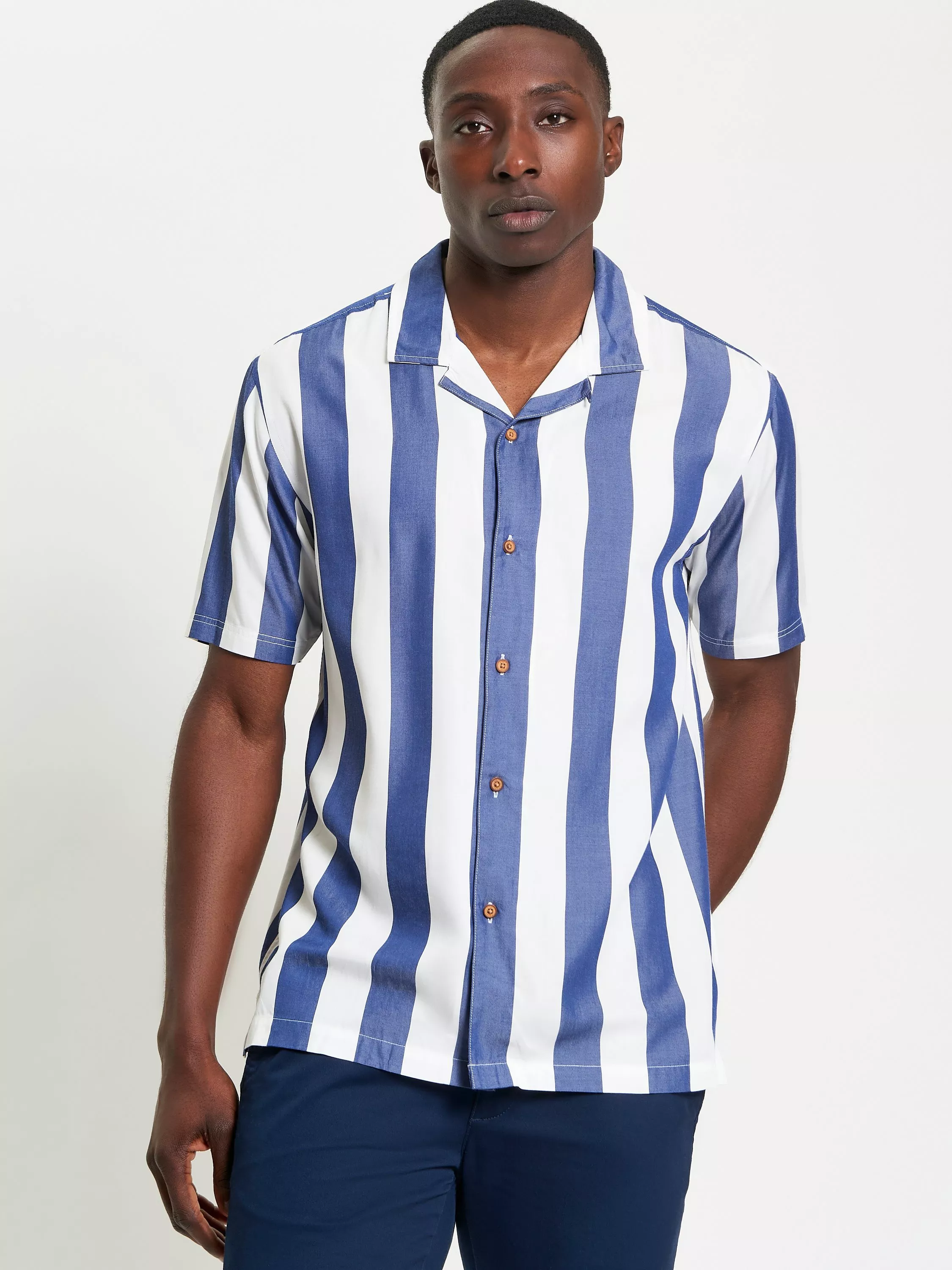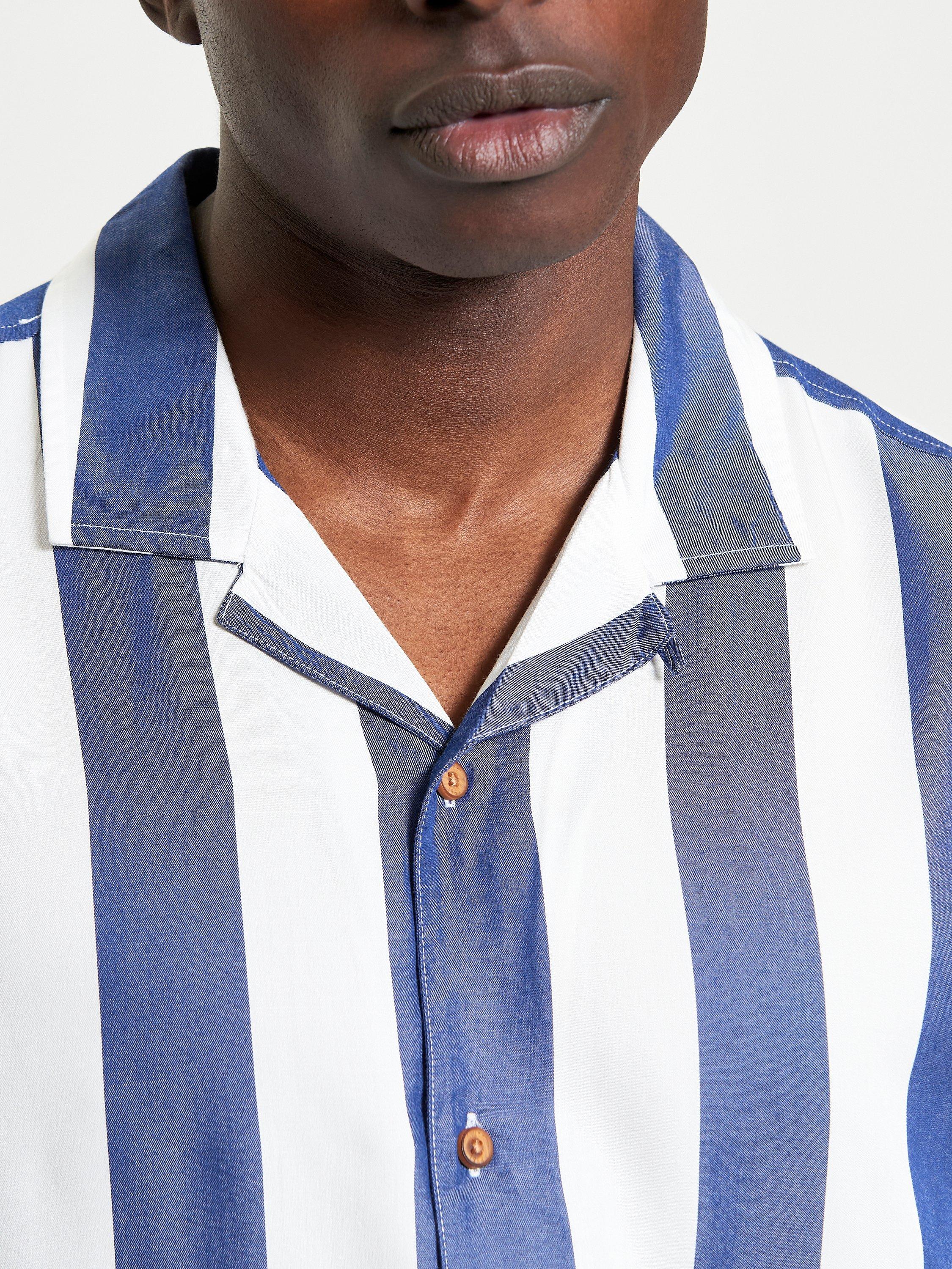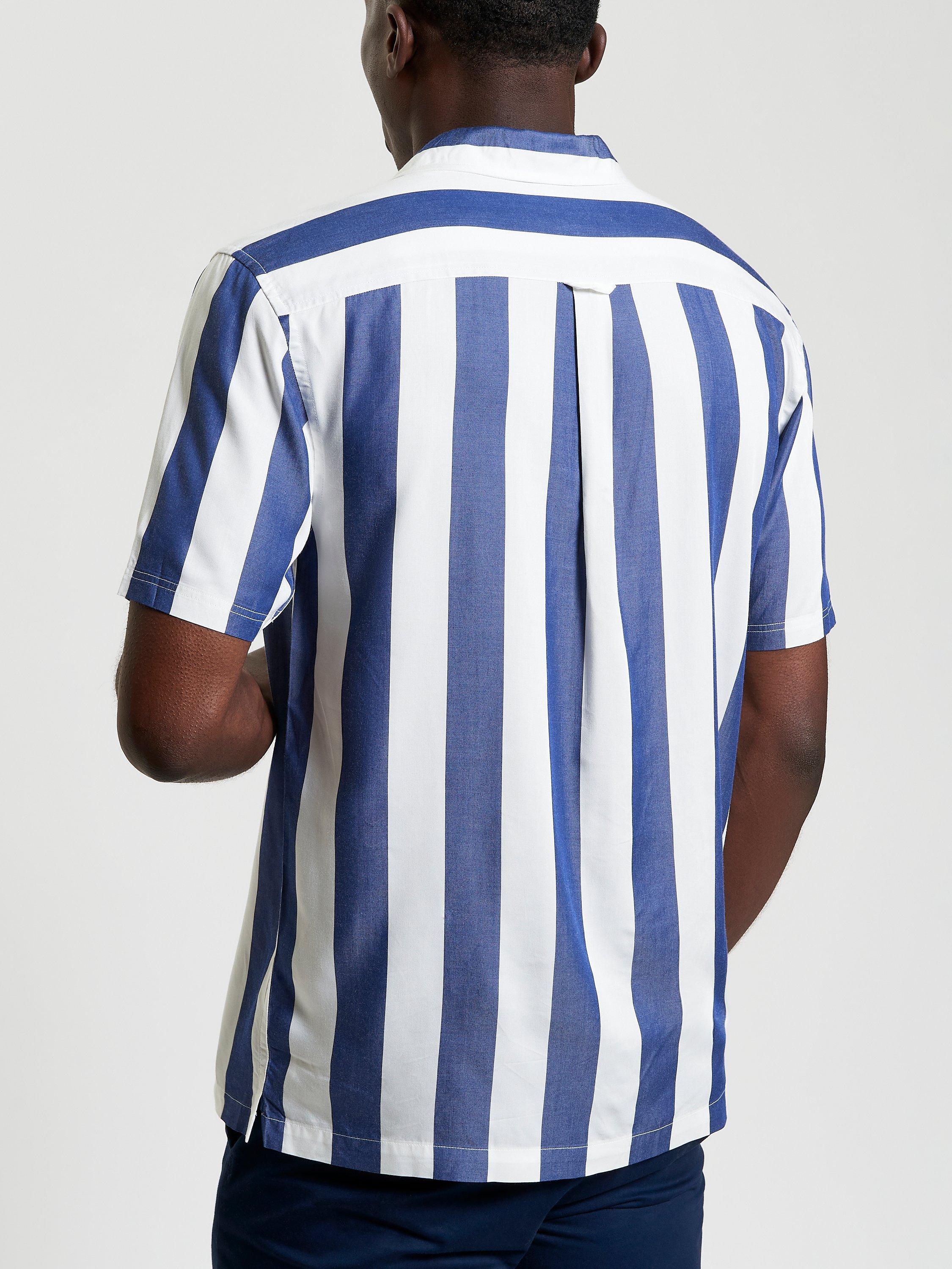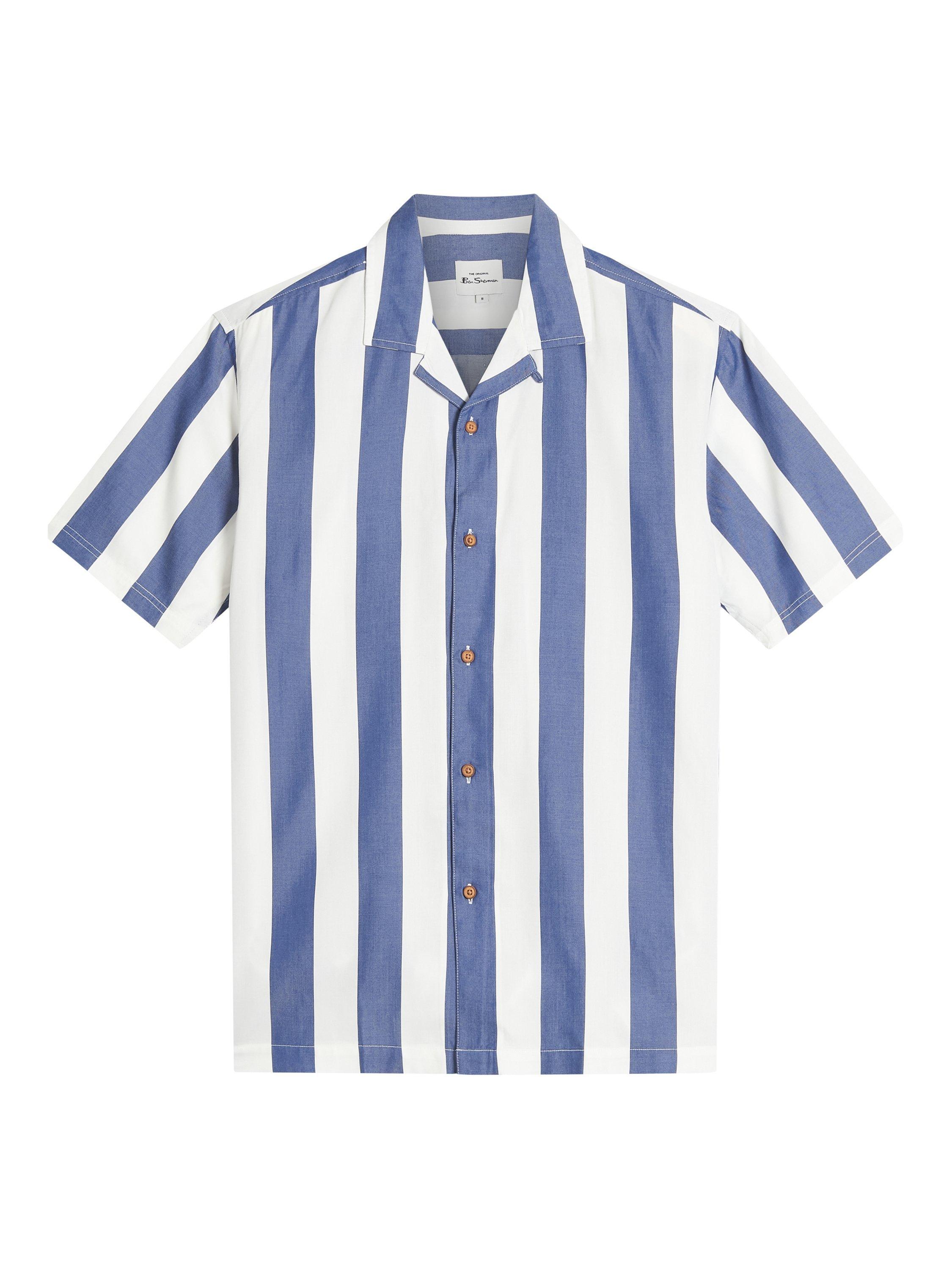 Made from 100% viscose, this short-sleeved stripe shirt includes a revere collar and a Ben Sherman branded woven label at the side seam. A relaxed fit featuring a straight hem.