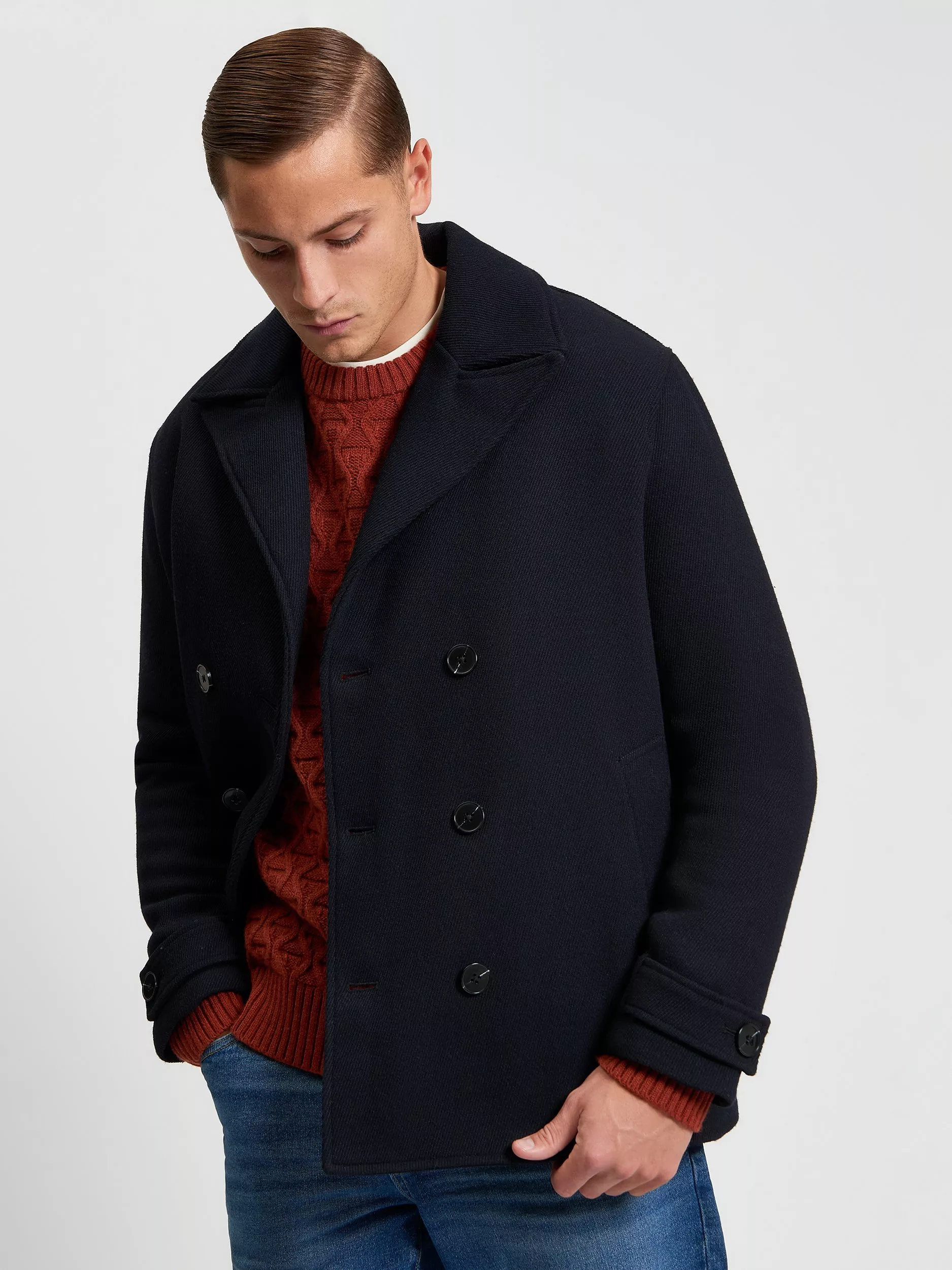 Made from a wool blend this Peacoat features two external pockets, button fastenings and a Ben Sherman branded woven label on the left pocket.