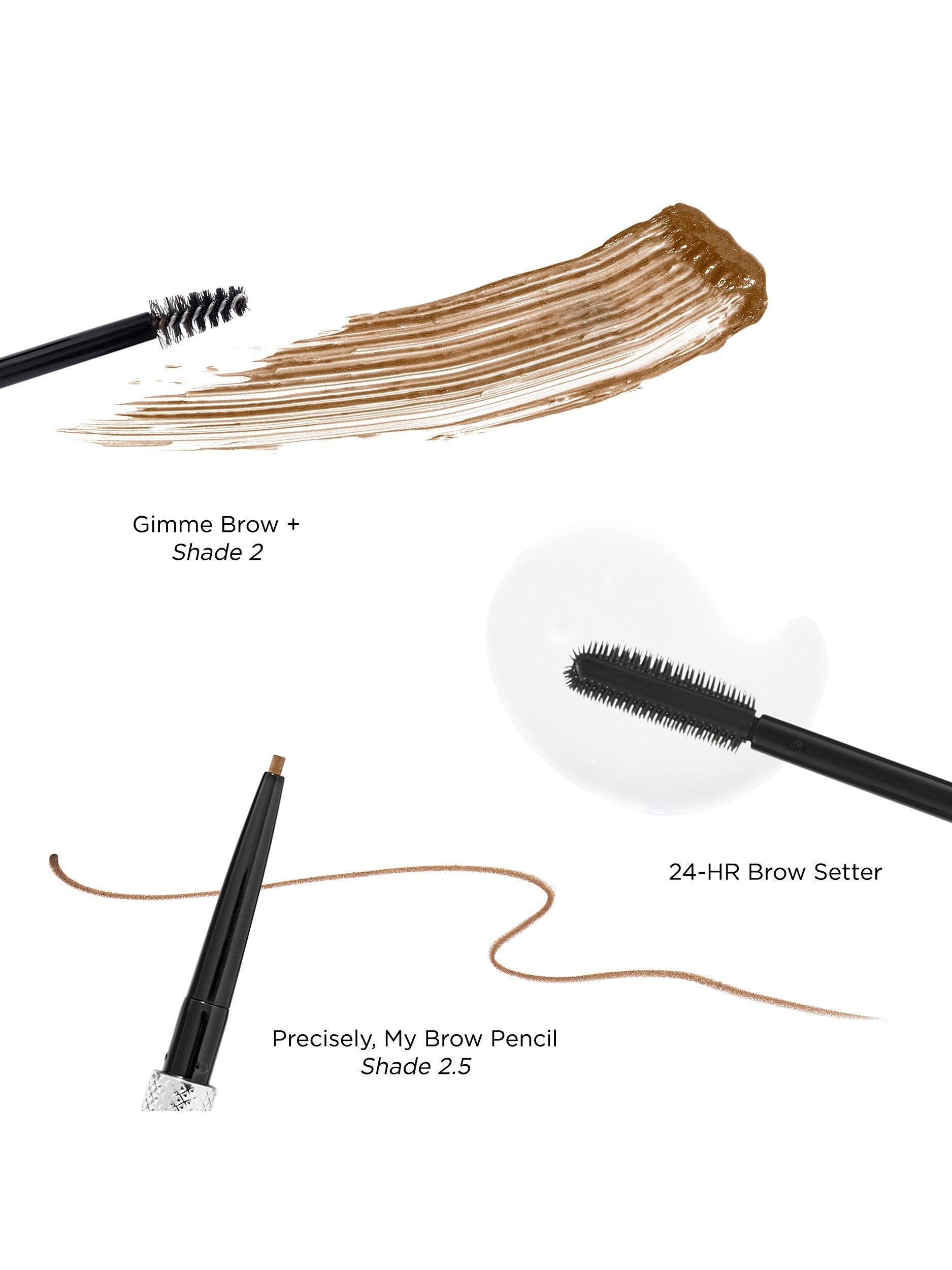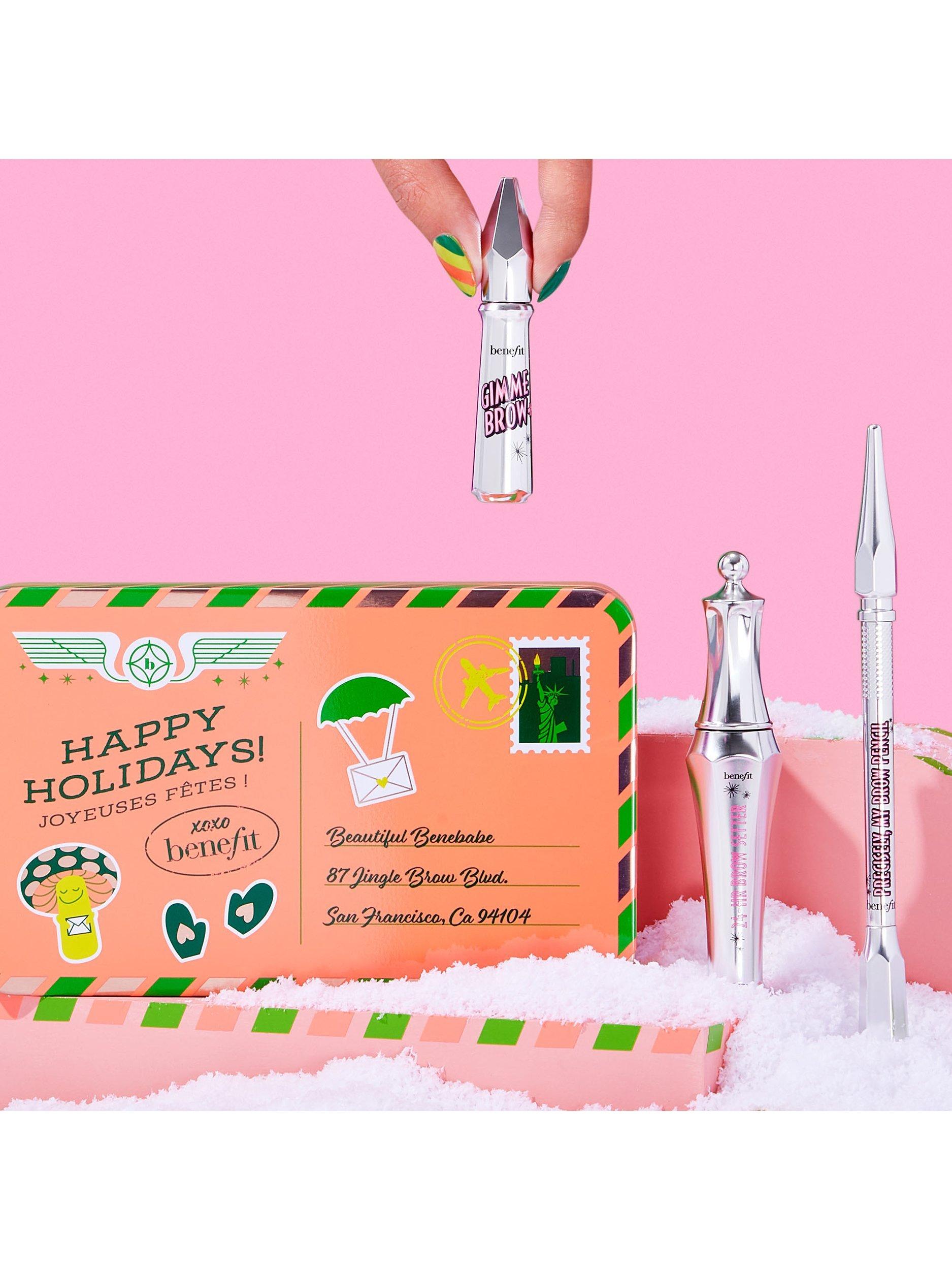 Have the best brows at the holiday soiree! Draw natural-looking, hair-like strokes that last 12 hours* with Precisely, My Brow Pencil, pump up the brow volume with Gimme Brow+ and set a sculpted brow look that lasts with 24-HR Brow Setter. Comes in a reusable keepsake tin with special holiday stickers inside!