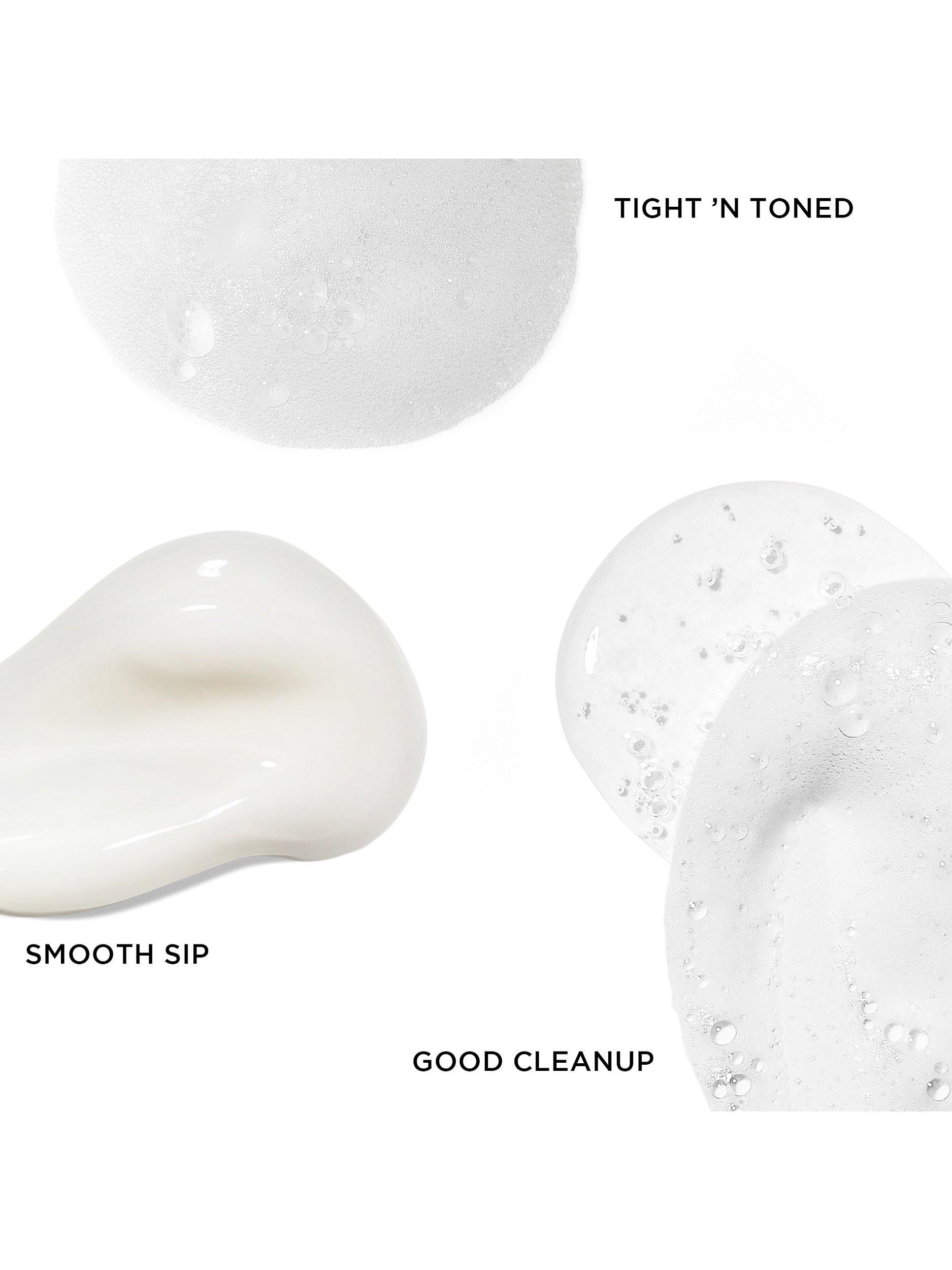 Ready for a routine that does more for pores? (We’re gonna assume you said yes.) Time to put your pores first with this essential 3-step set... your skin will thank you. Visibly rinse away dirt and oil with Good Cleanup pore-purifying foaming cleanser. Apply Tight ’n Toned toning foam with your fingertips (yes, you can ditch the cotton rounds!) to gently exfoliate and visibly tighten pores. Then, glide on Smooth Sip moisturiser, and let your skin drink it in to visibly improve texture. Bonus: comes with a free sample of Deep Retreat pore-clearing clay mask!
