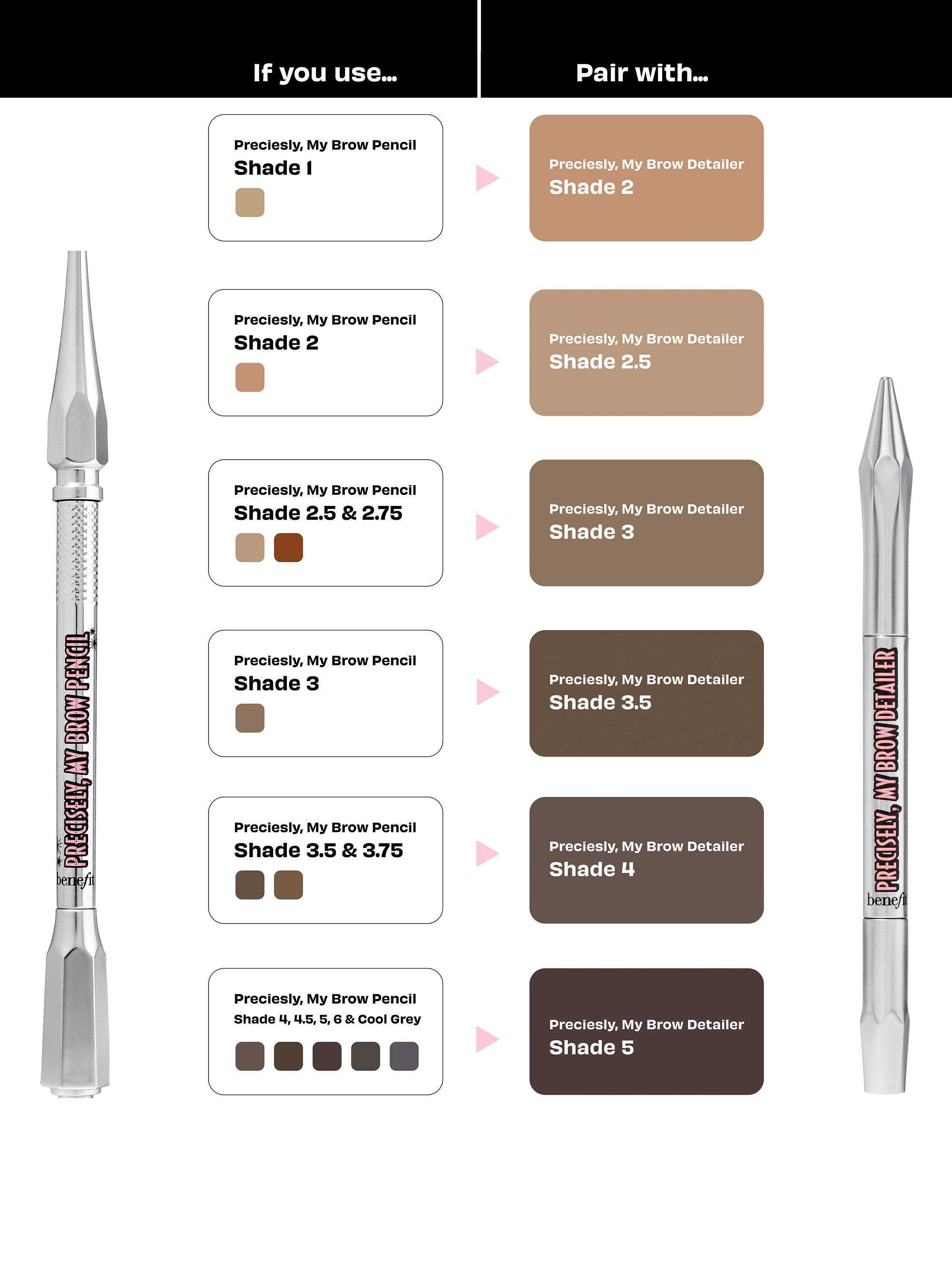 Obsessed with brows? Same. Detail-oriented perfectionists unite because this brow pencil is exactly what you’ve been looking for. With a teeny-tiny 0.8mm tip, Precisely, My Brow Detailer draws on itty-bitty, clean-crisp lines for a polished look. The firm, precise tip with a creamy-smooth texture glides onto brows for comfortable, controlled application. Plus, it’s natural-looking, buildable and blendable.