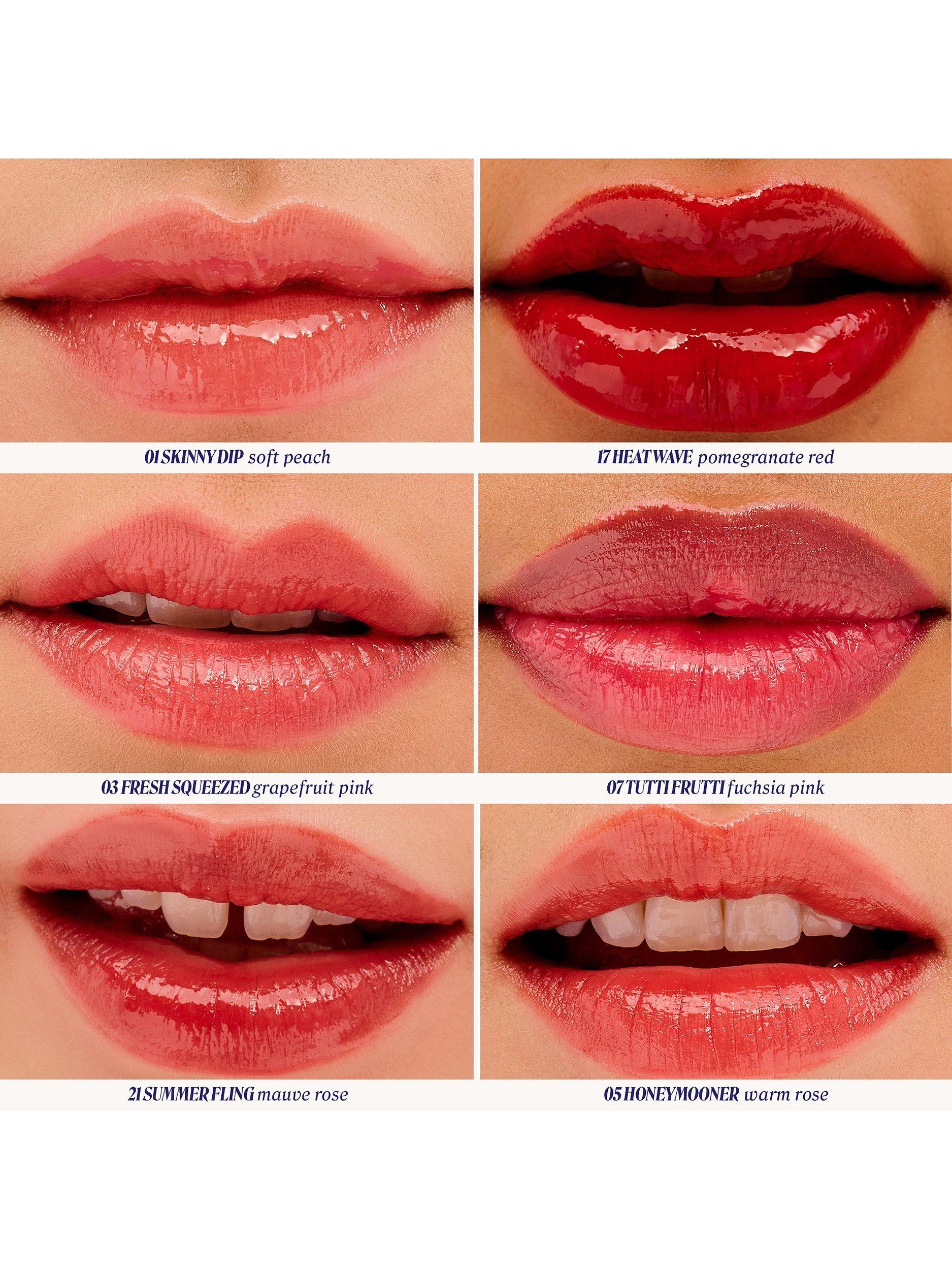 - Dewy finish for shiny, juicy lips