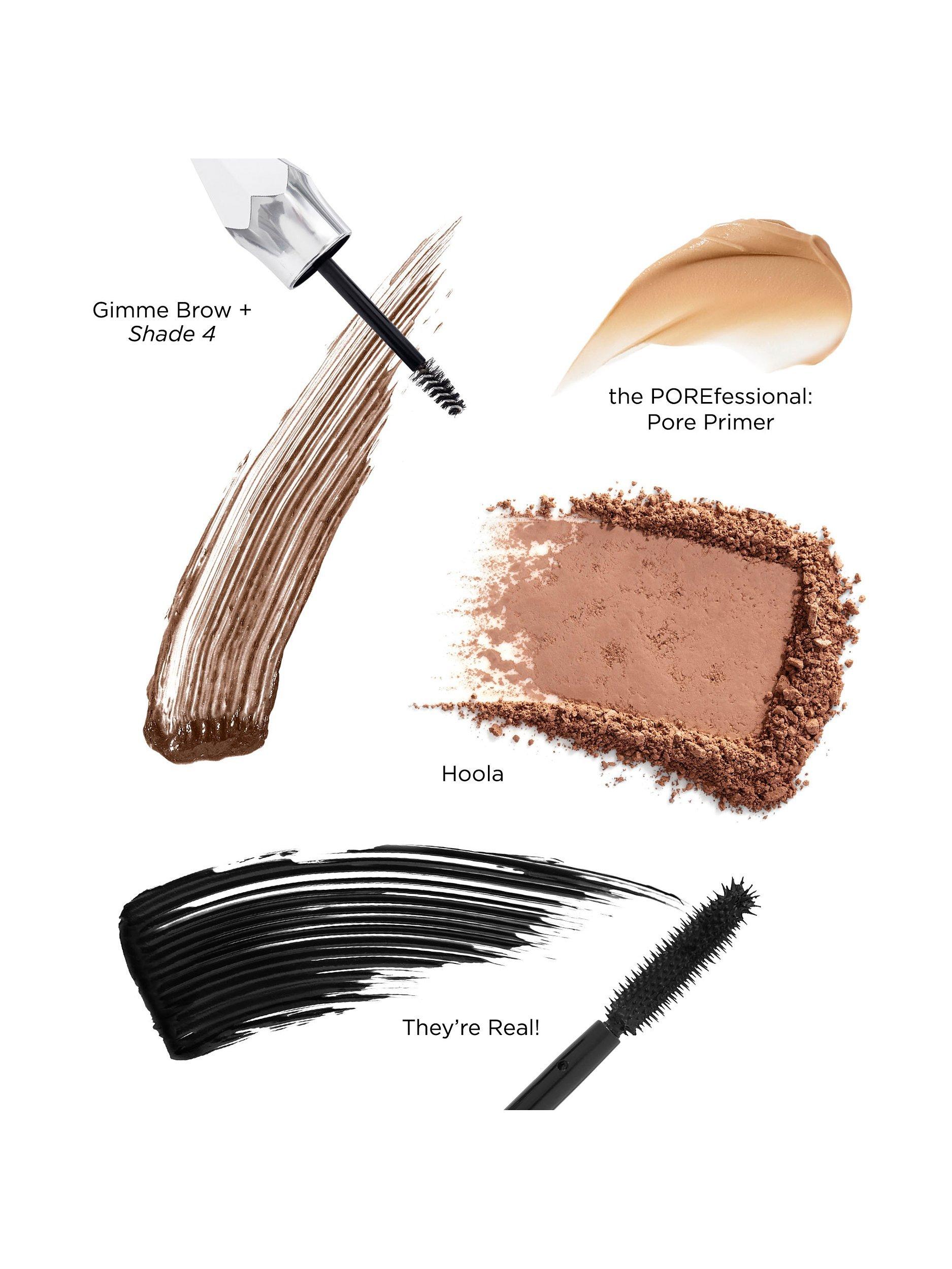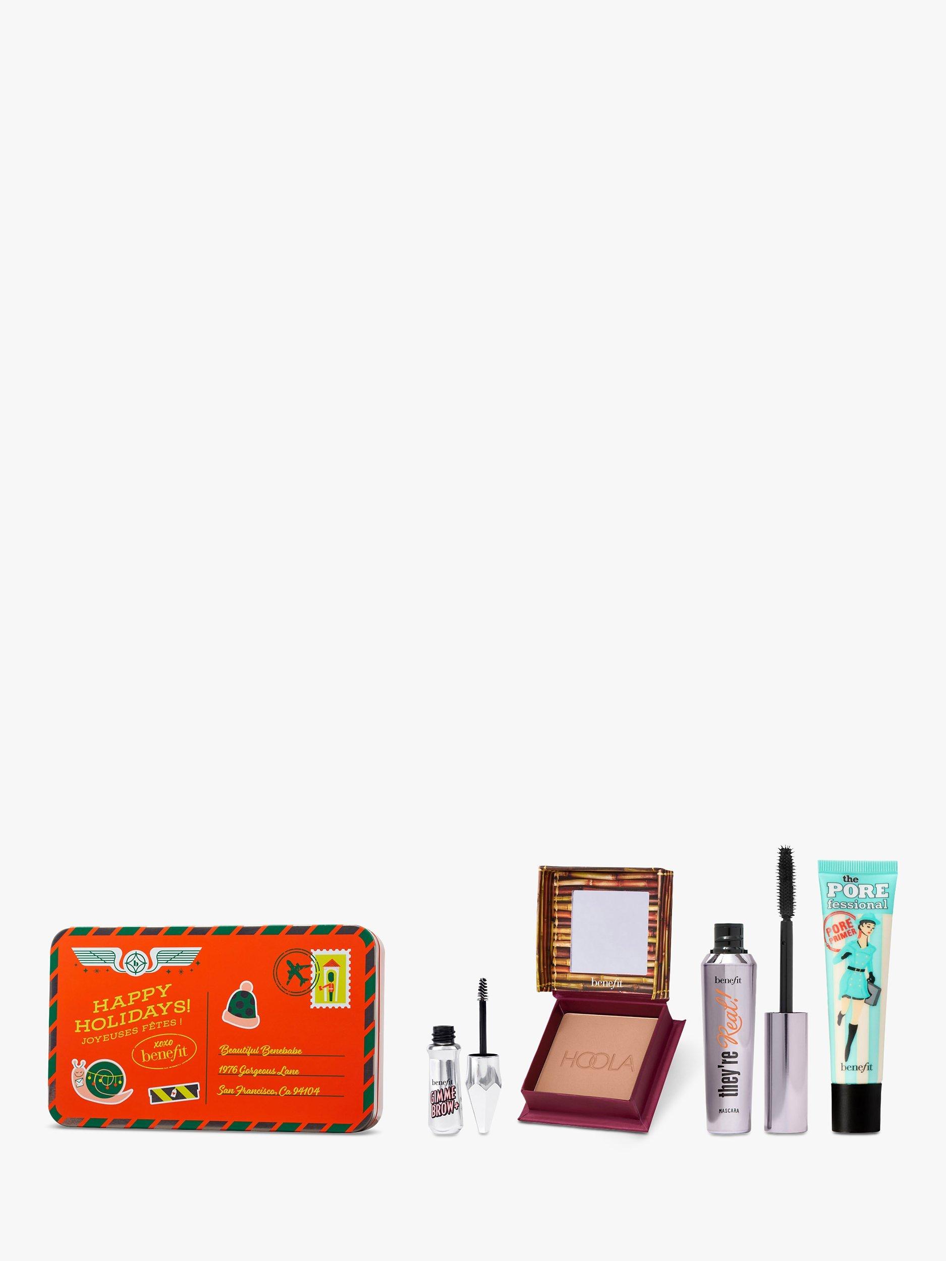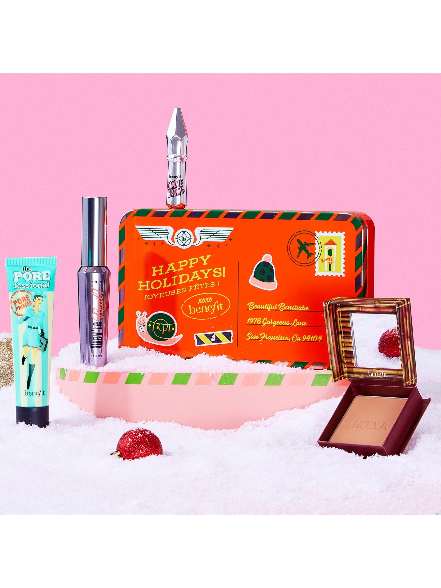 Glam it up all holiday long! Get smoother-than-smooth skin with our #1 pore primer The POREfessional, a beautiful, natural-looking matte bronze with award-winning Hoola, lengthened lashes with They’re Real! mascara and volumised brows with Gimme Brow+ gel. Comes in a reusable keepsake tin with special holiday stickers inside!