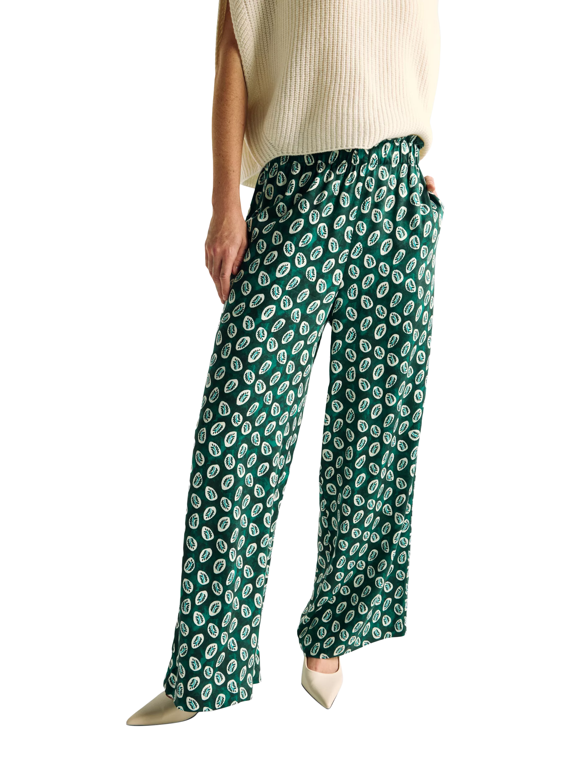 Regular fit trousers from Benetton. This style is cut to sit mid rise with an elasticated waist with an abstract print and hems that hit just at the ankle.