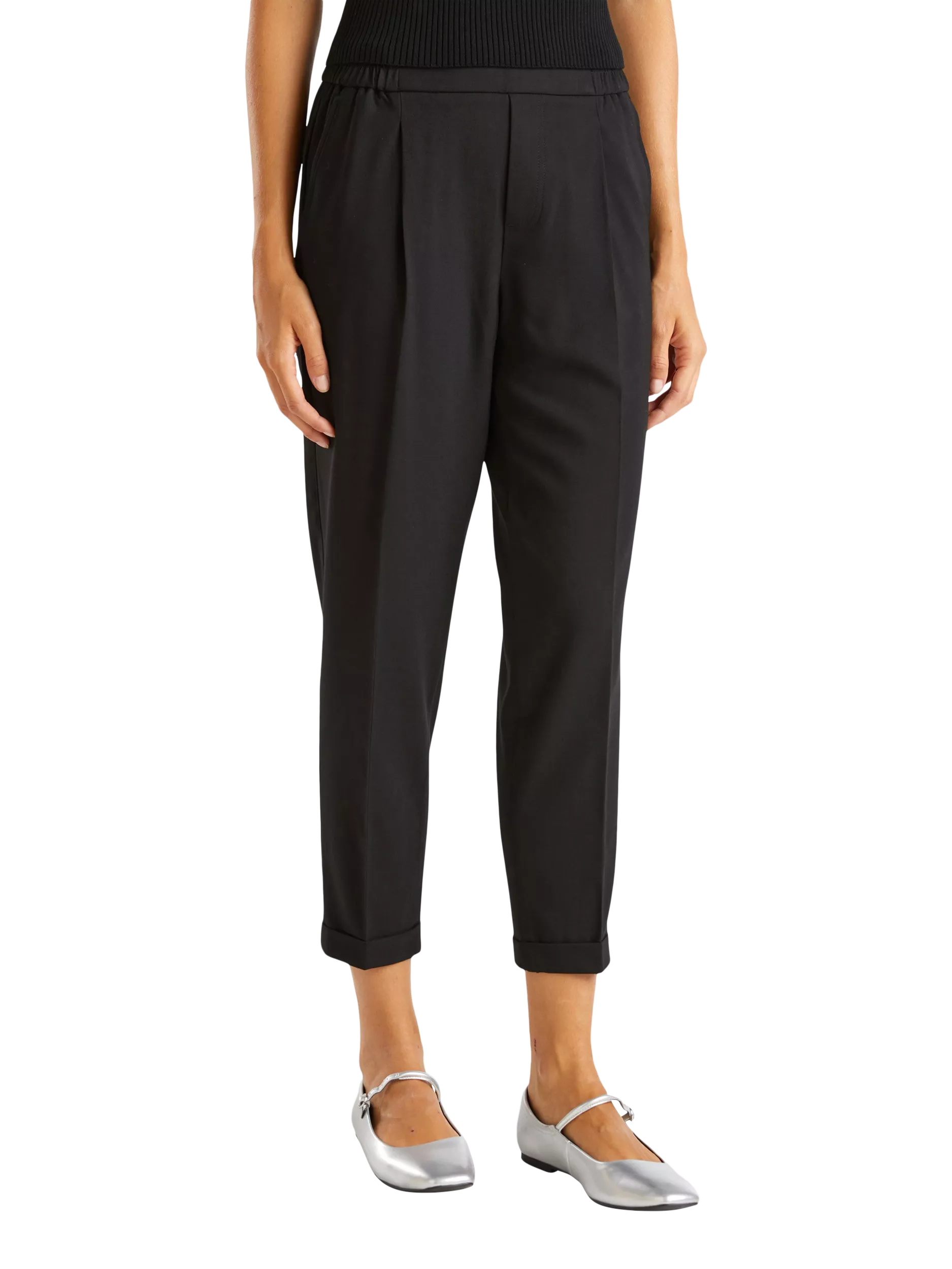 A pair of tailored capri trousers by Benetton. They sit mid rise with an elasticated waist and cropped hems.