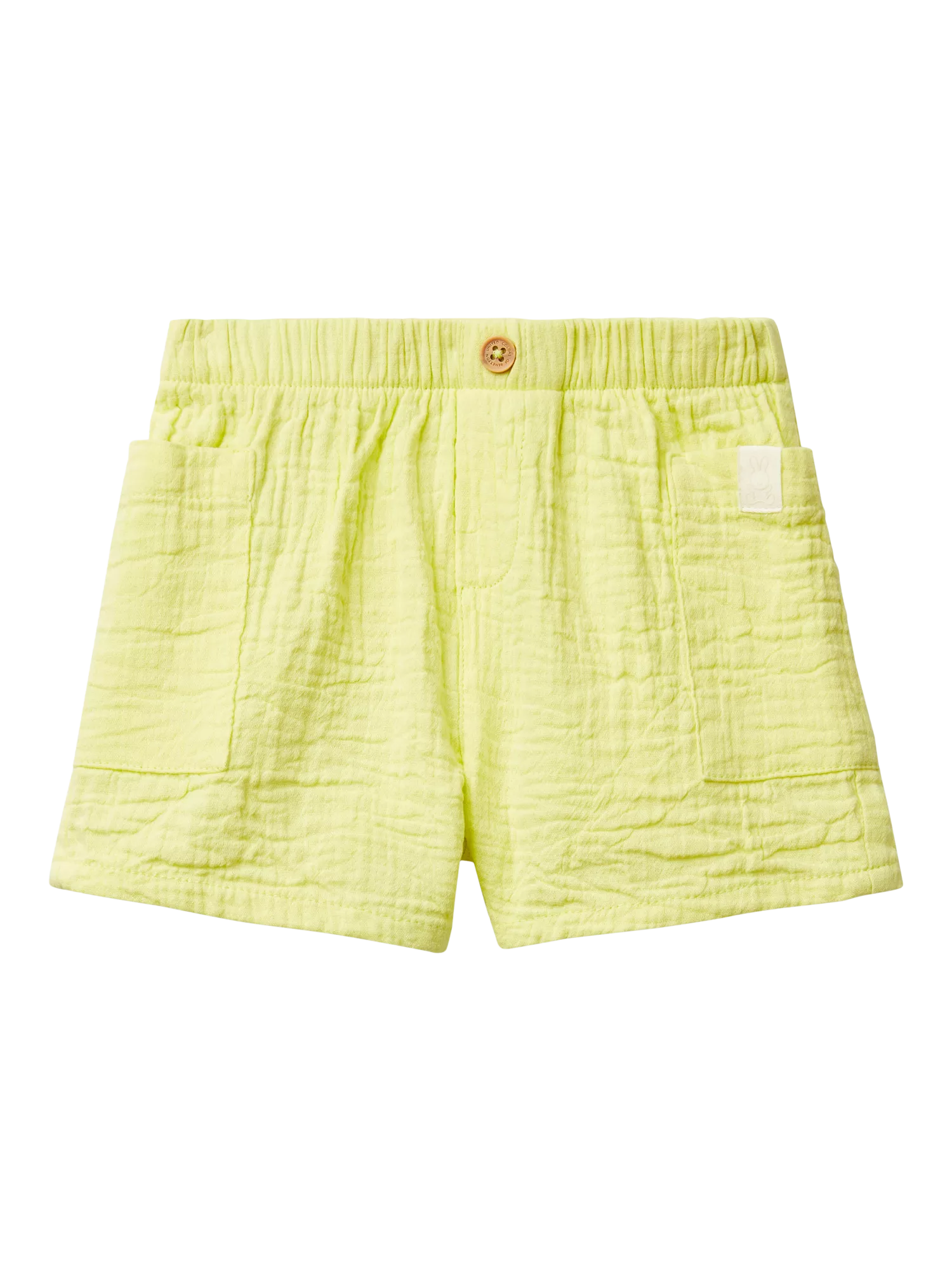 A pair of shorts for baby made from comfortably lightweight cotton muslin.