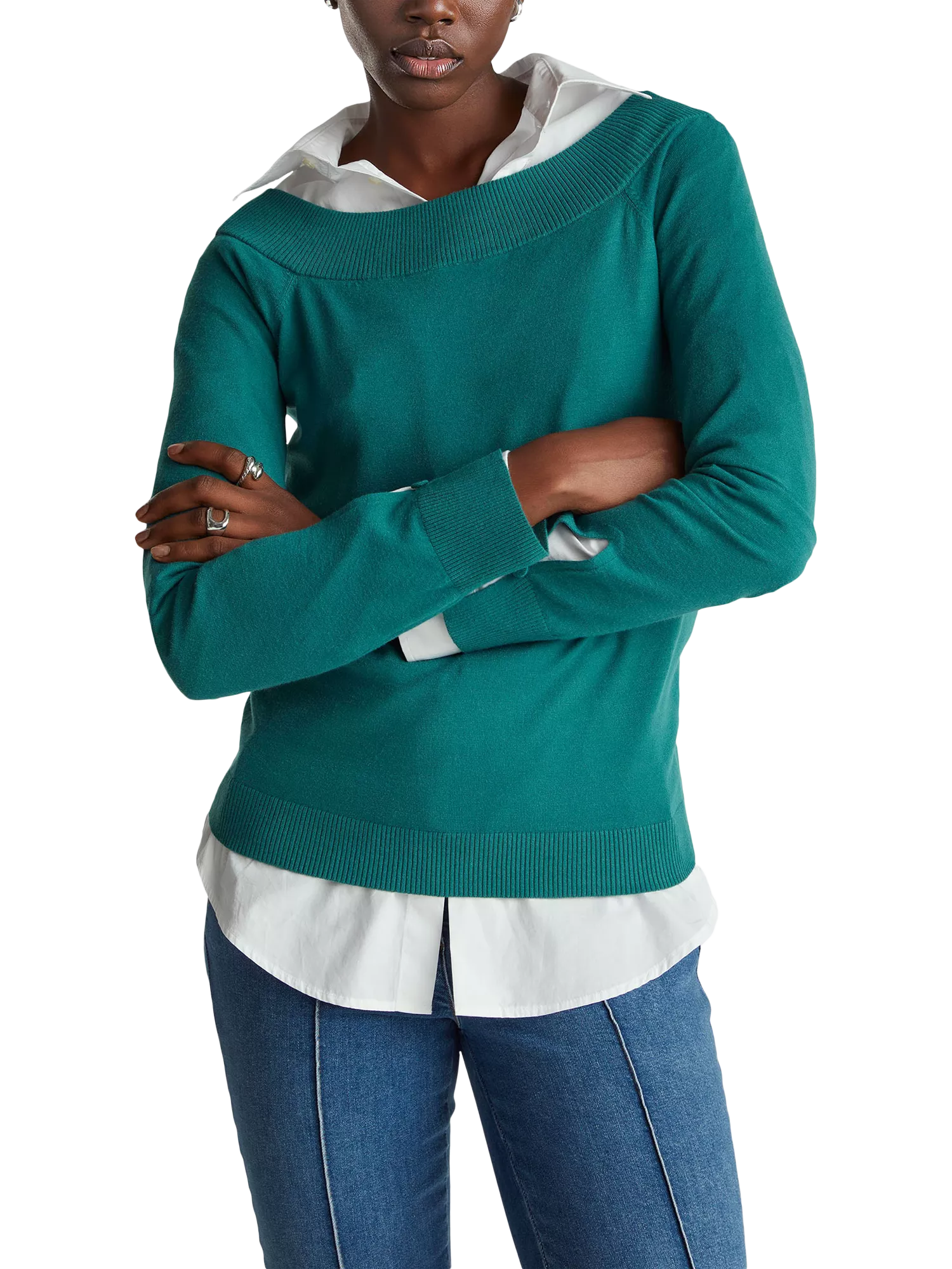 This fine knit jersey jumper brings comfort and style to your every day. The boat neck and long sleeves make it easy to layer, helping you tackle the day with confidence.