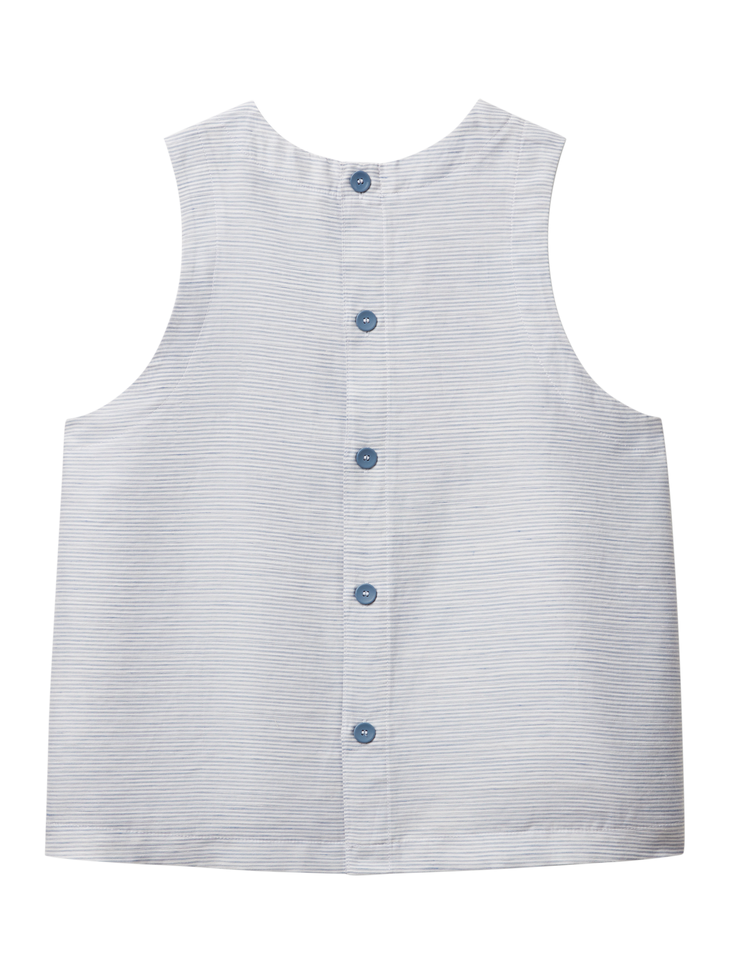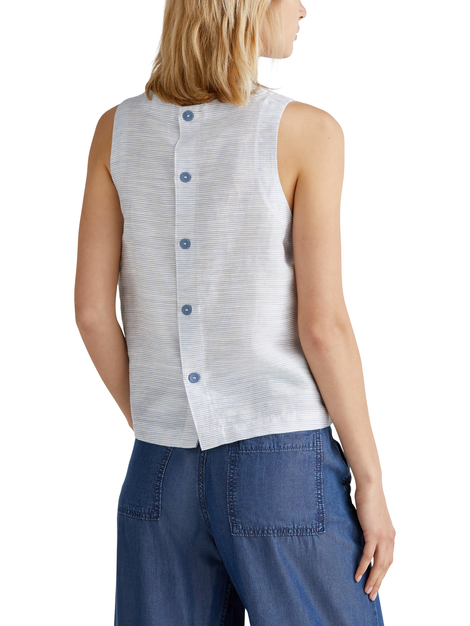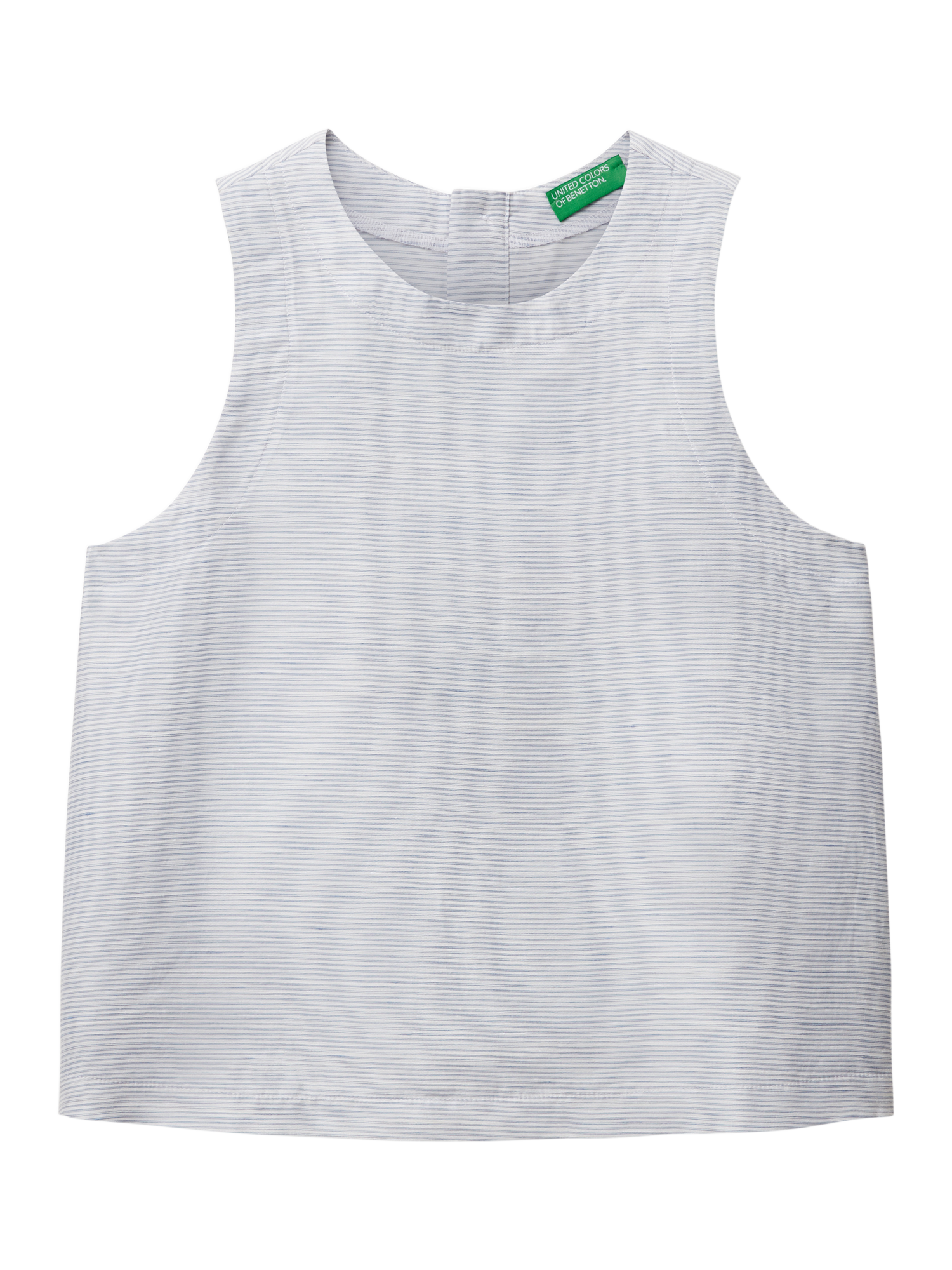 Stay cool and comfortable in this Benetton linen-blend blouse. Its sleeveless design and round neck make it perfect for sunny days, from brunches to park strolls. Soft, breathable fabric ensures ease, while a timeless cut and back buttons add a touch of charm to every moment.