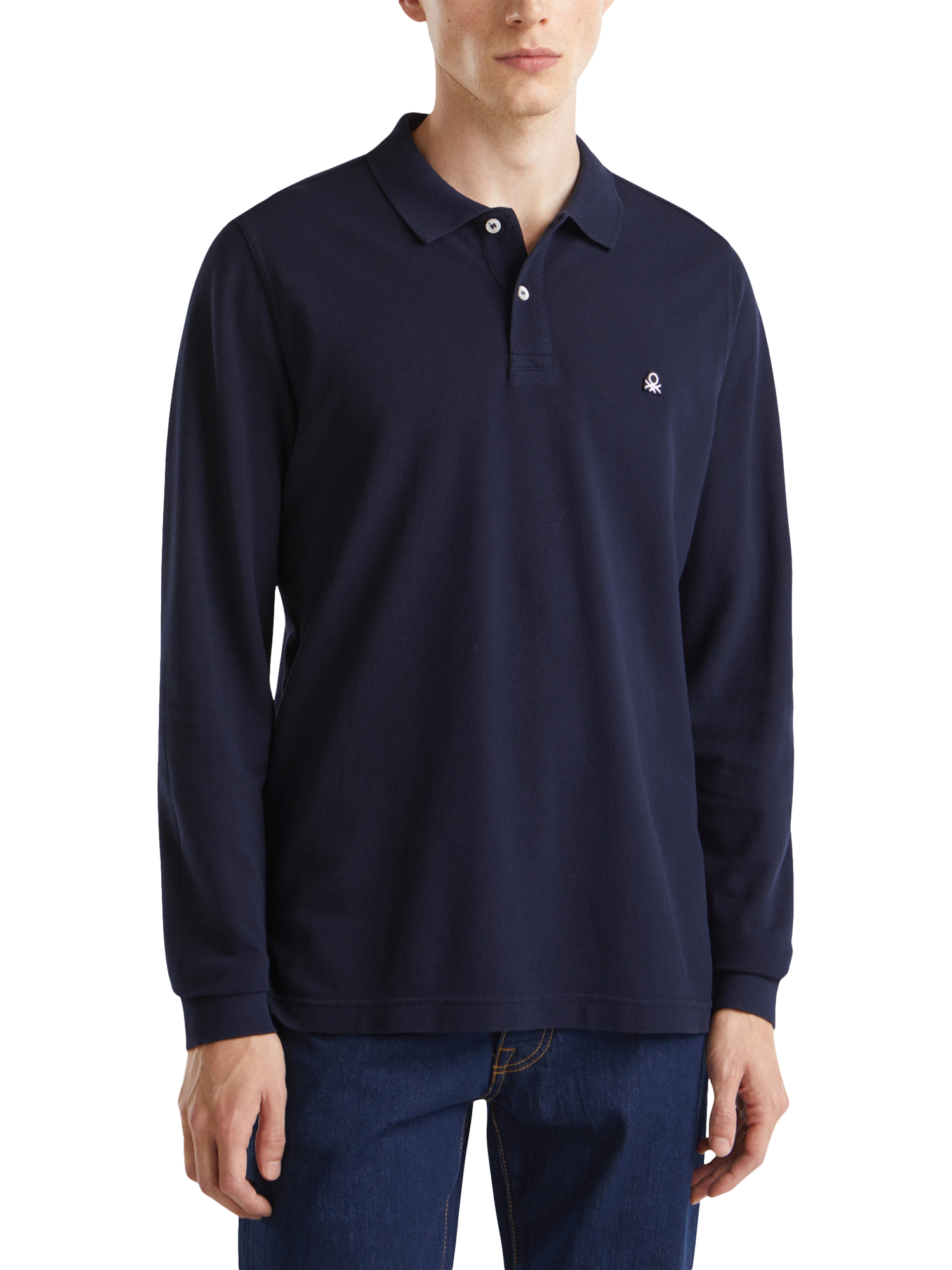 Long sleeve pure cotton classic polo. Collared with a two-button opening and side slits on the bottom. small logo applied at left breast. A true casual style icon.