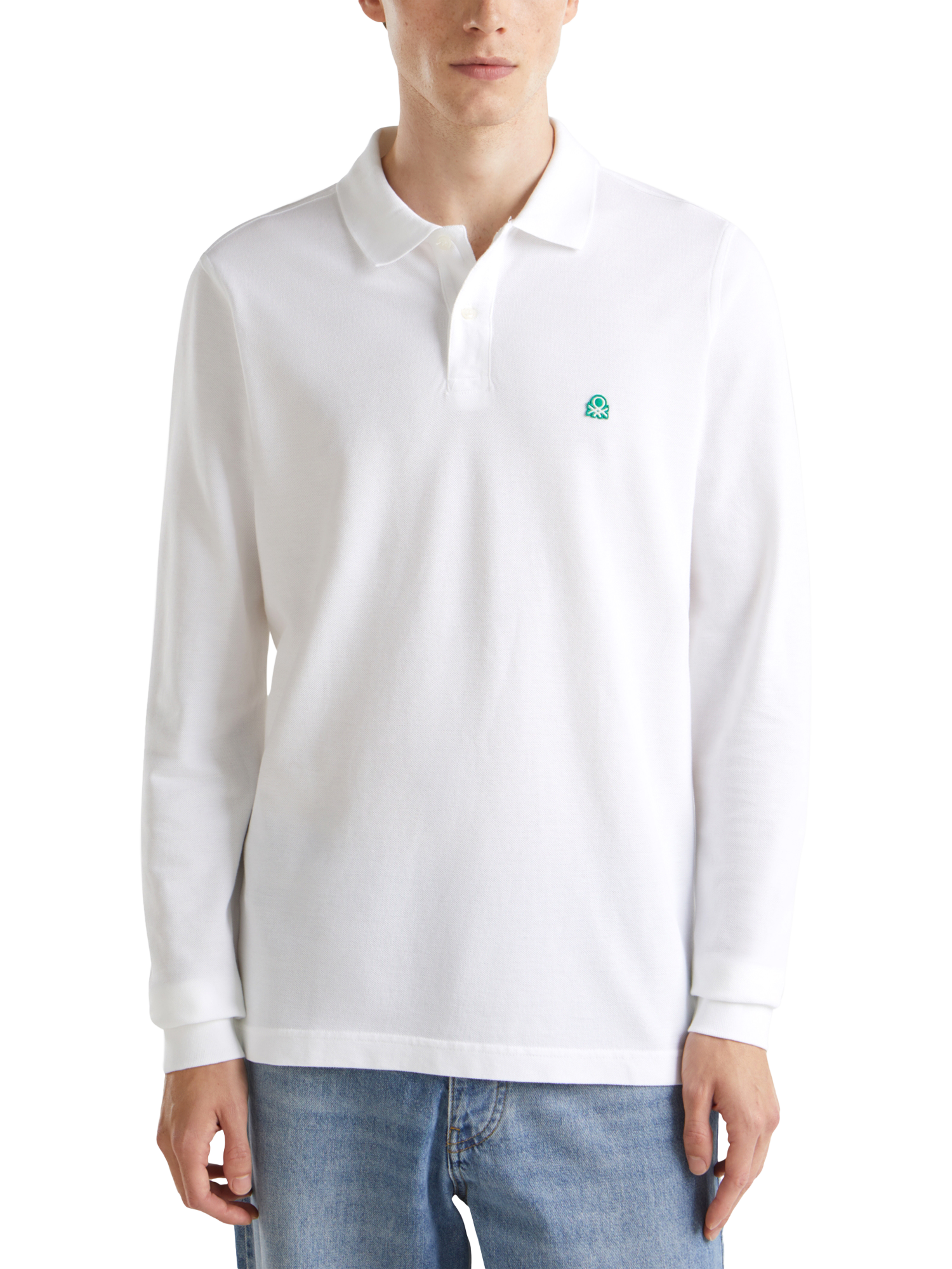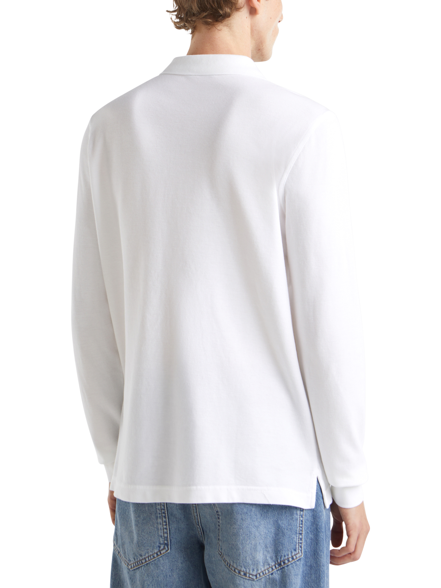 Long sleeve pure cotton classic polo. Collared with a two-button opening and side slits on the bottom. small logo applied at left breast. A true casual style icon.