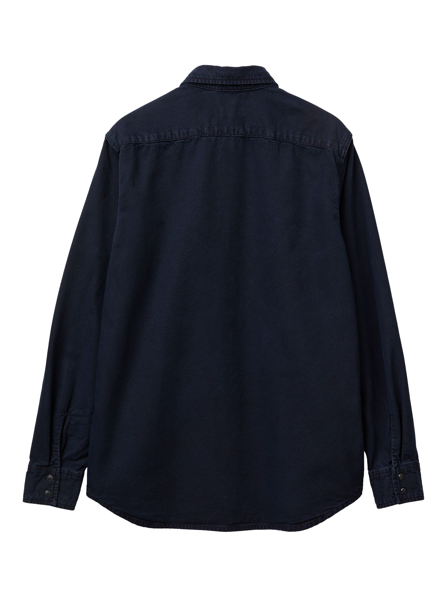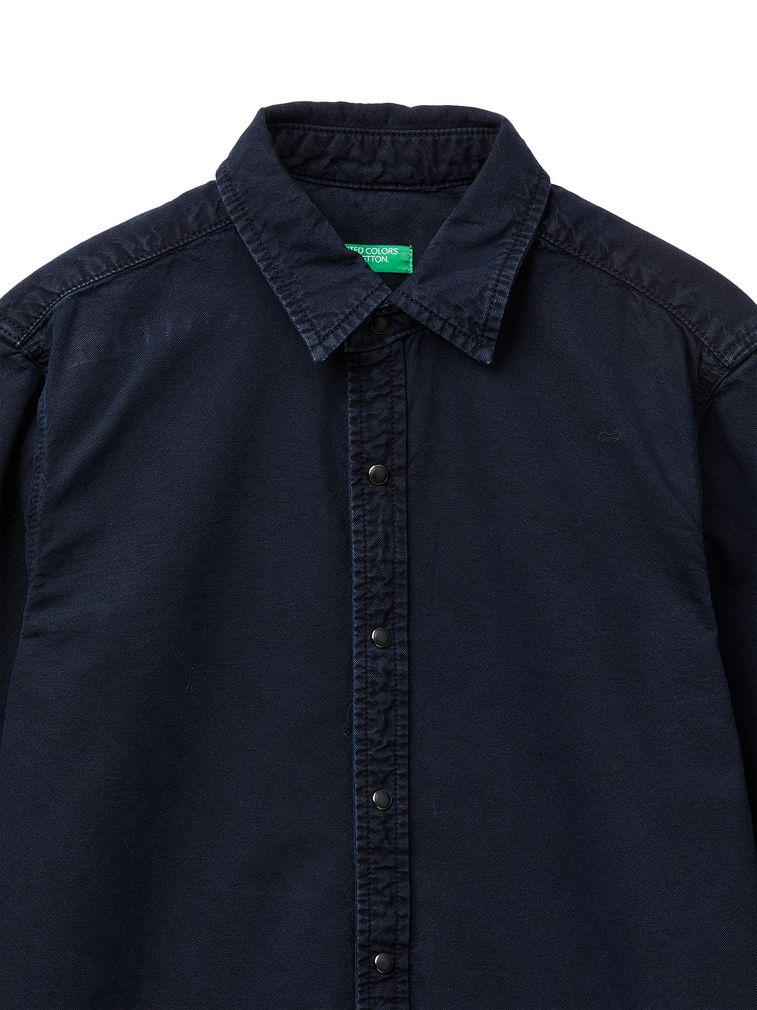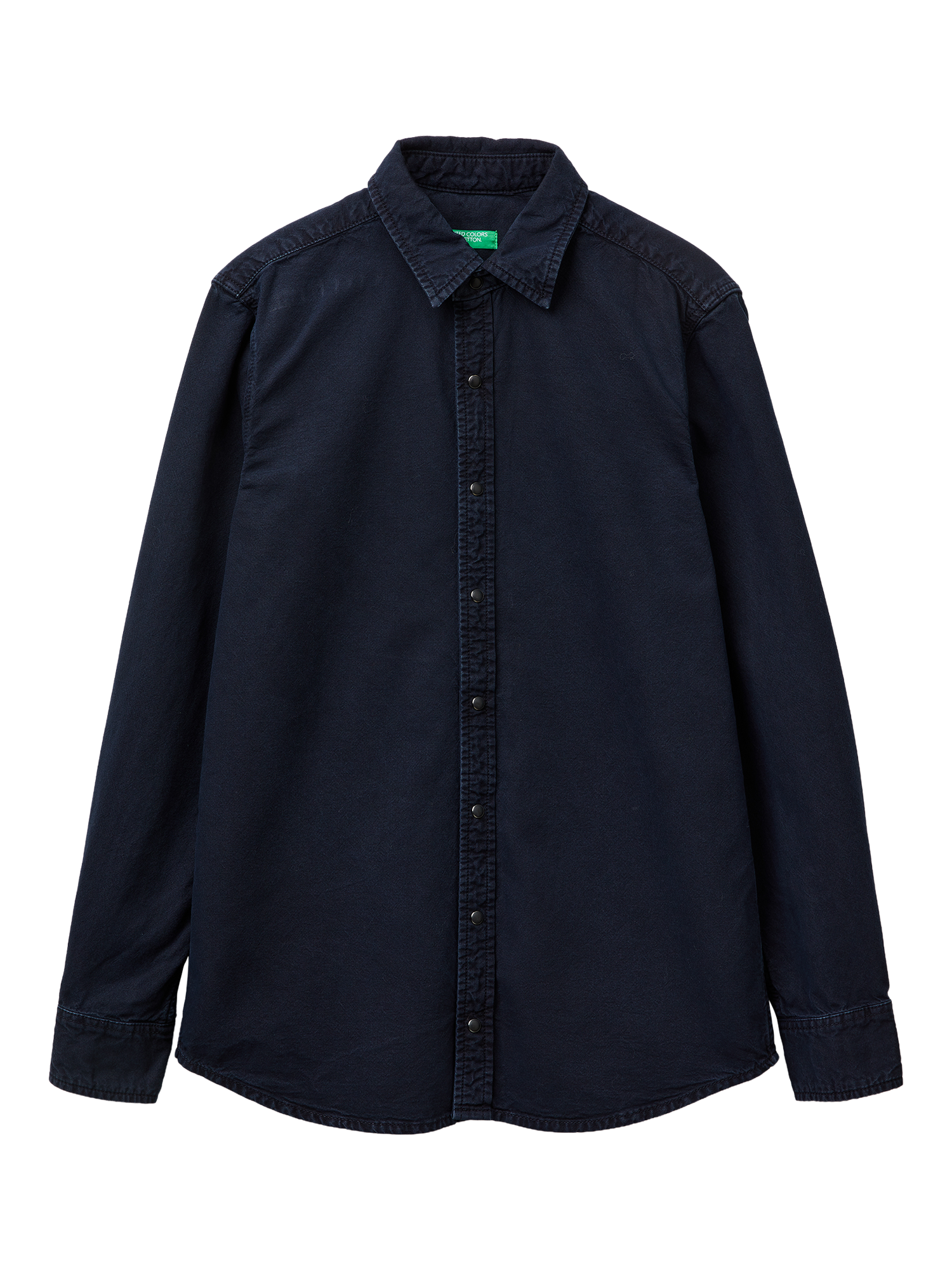 Embrace style with a regular fit, dyed long sleeve shirt. Featuring a classic collared neckline and adorned with dark mother-of-pearl snap buttons for an elegant touch.
