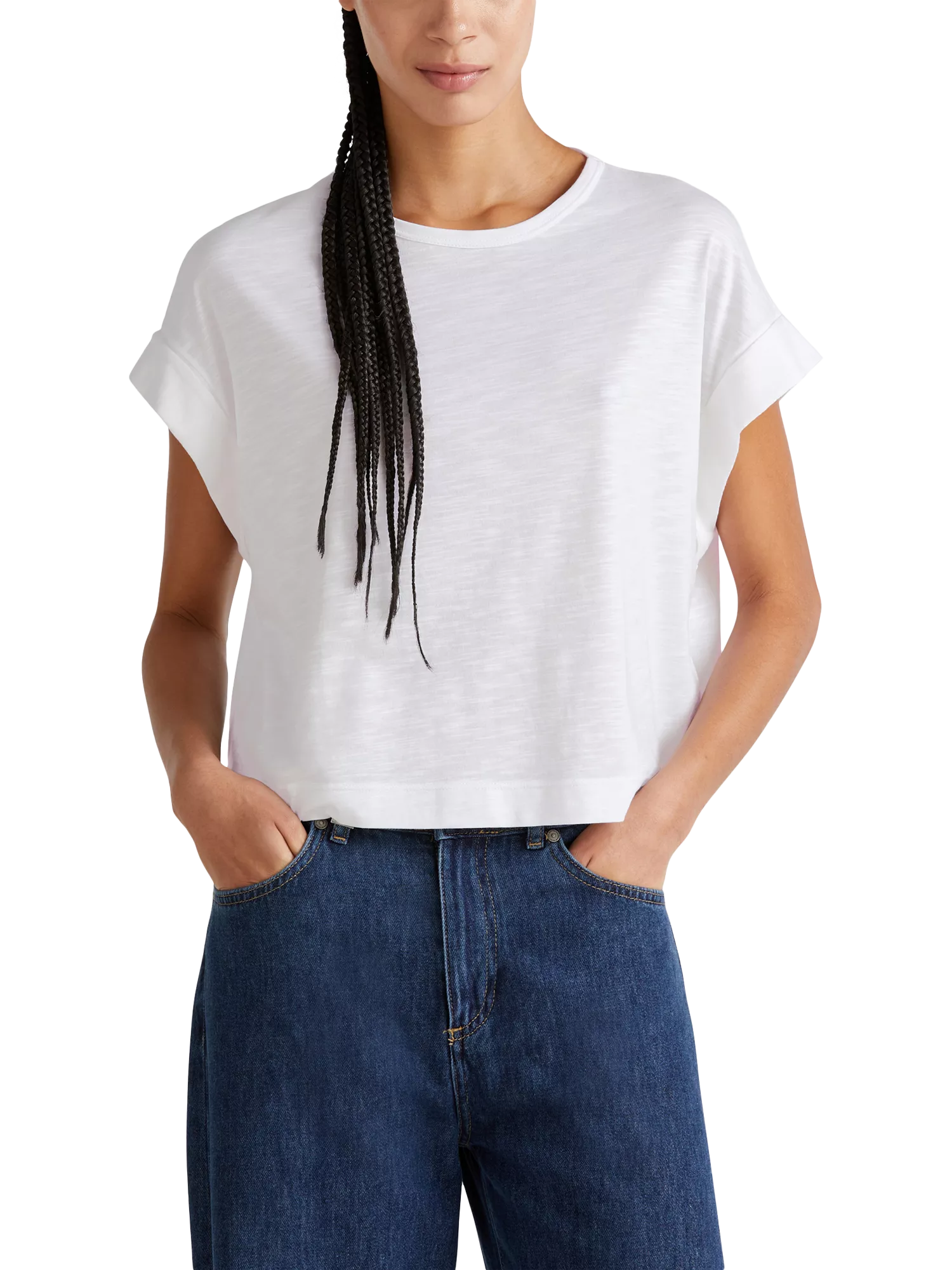 A solo piece or layering staple, this t-shirt by Benetton is plain for easy mixing and matching. With a classic crew neck and short sleeves, it is made from a soft cotton blend.