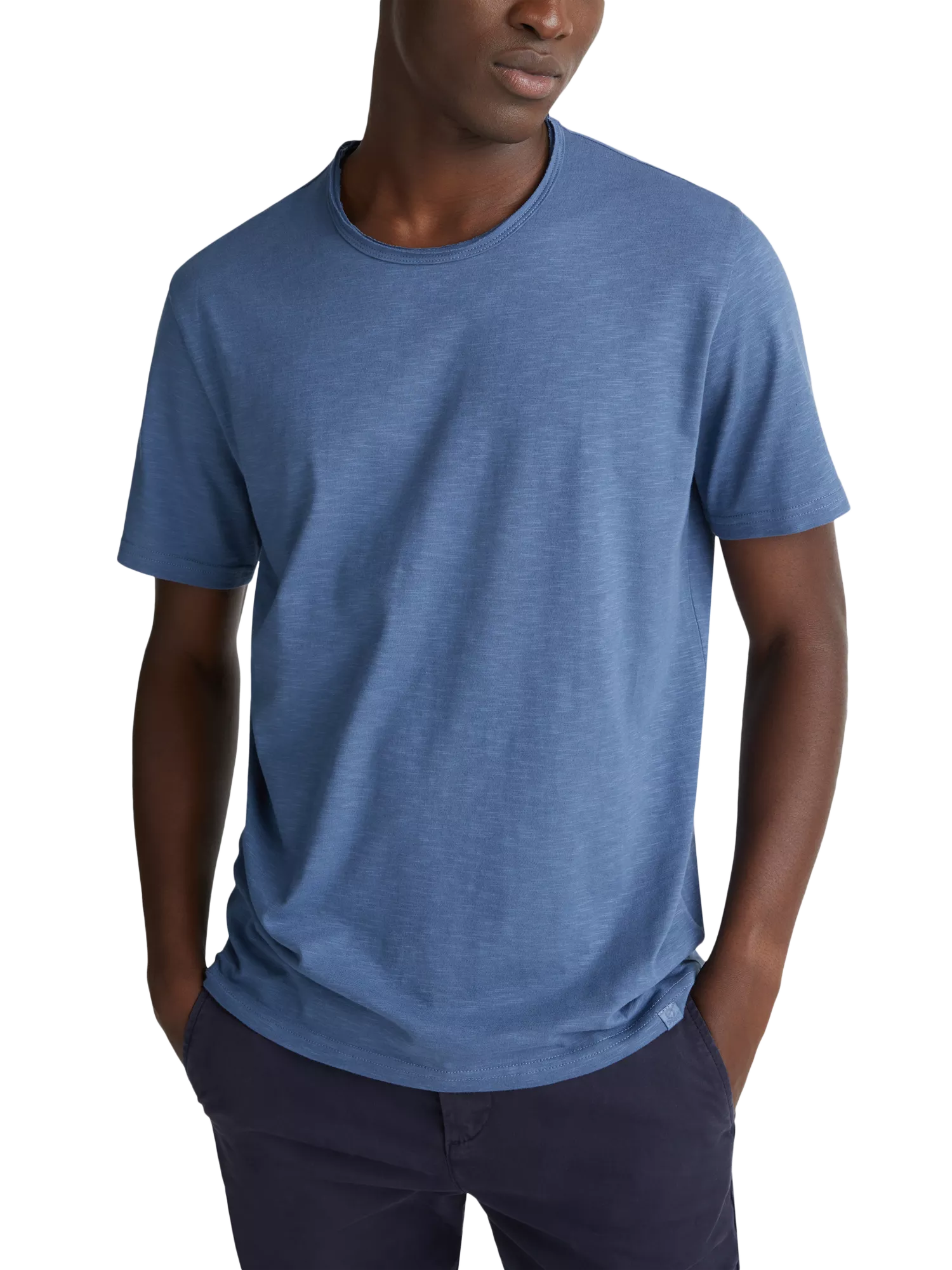 Combine soft comfort with a regular fit in this cotton slub T-shirt, carved with a crew neck and short sleeves.