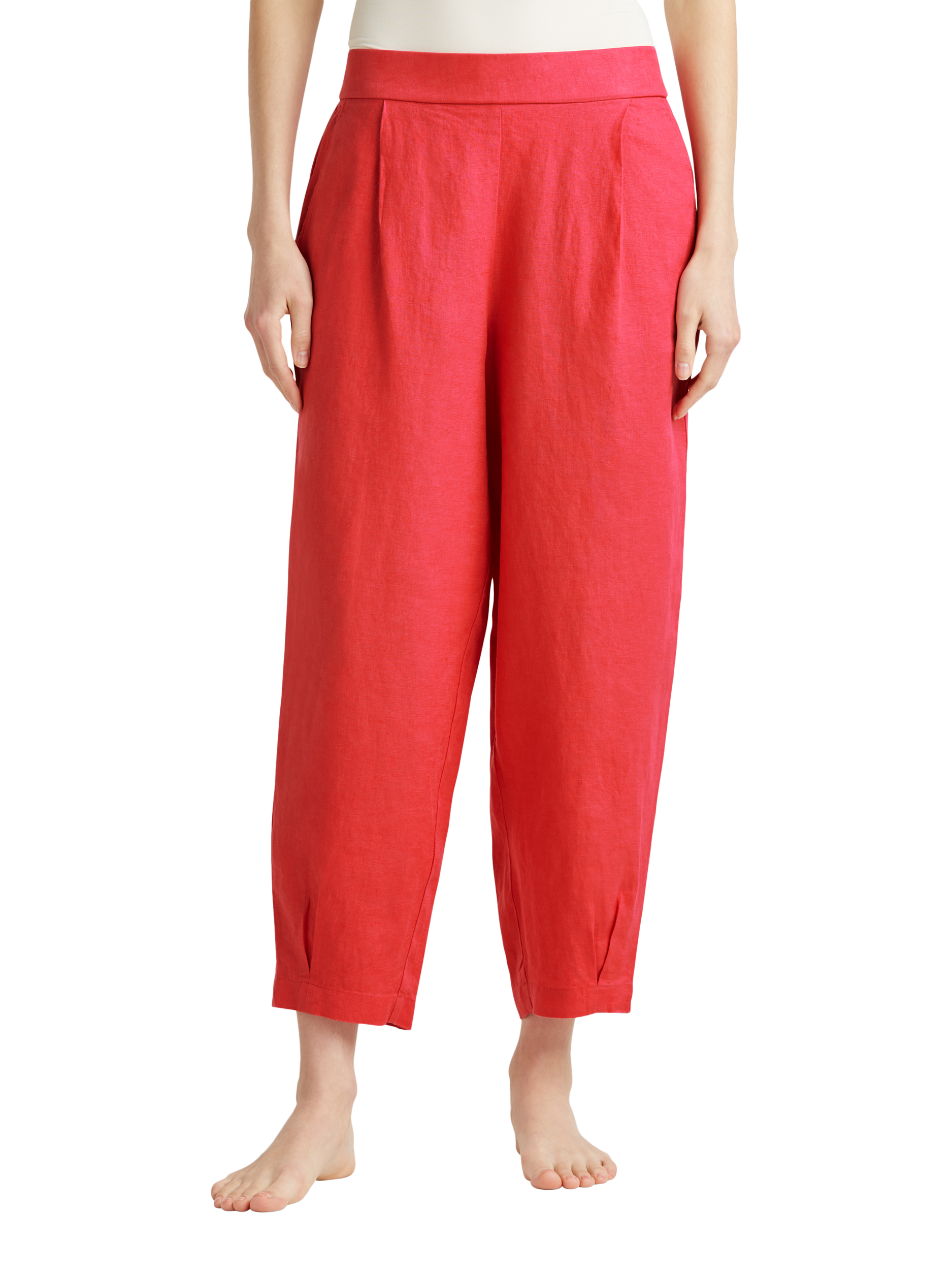 BenettonCropped Linen Trousers, Brick Red